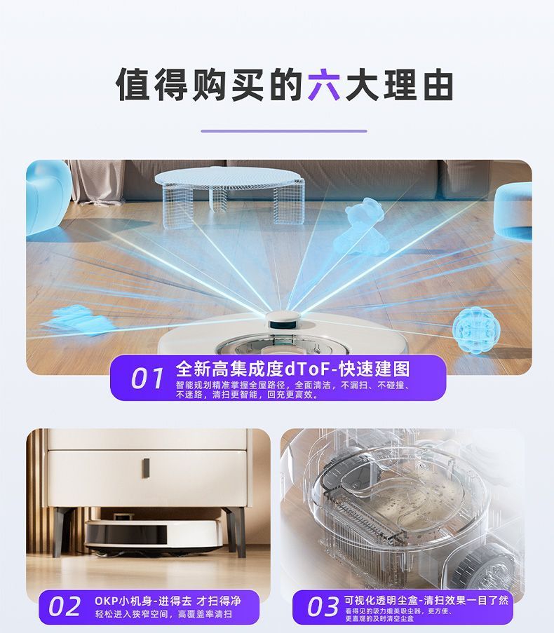 扫地机器人L7dToF智能导航超薄家用扫拖吸三合一体自动扫地