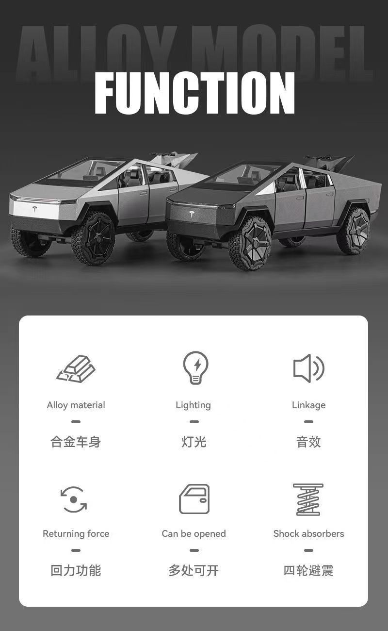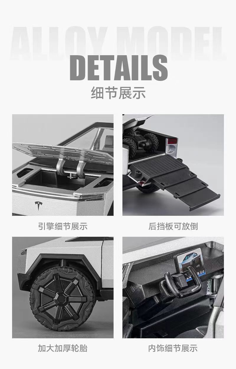 1:24特斯拉汽车模型CYBERTRUCK合金车模赛博皮卡摆件仿真玩具车