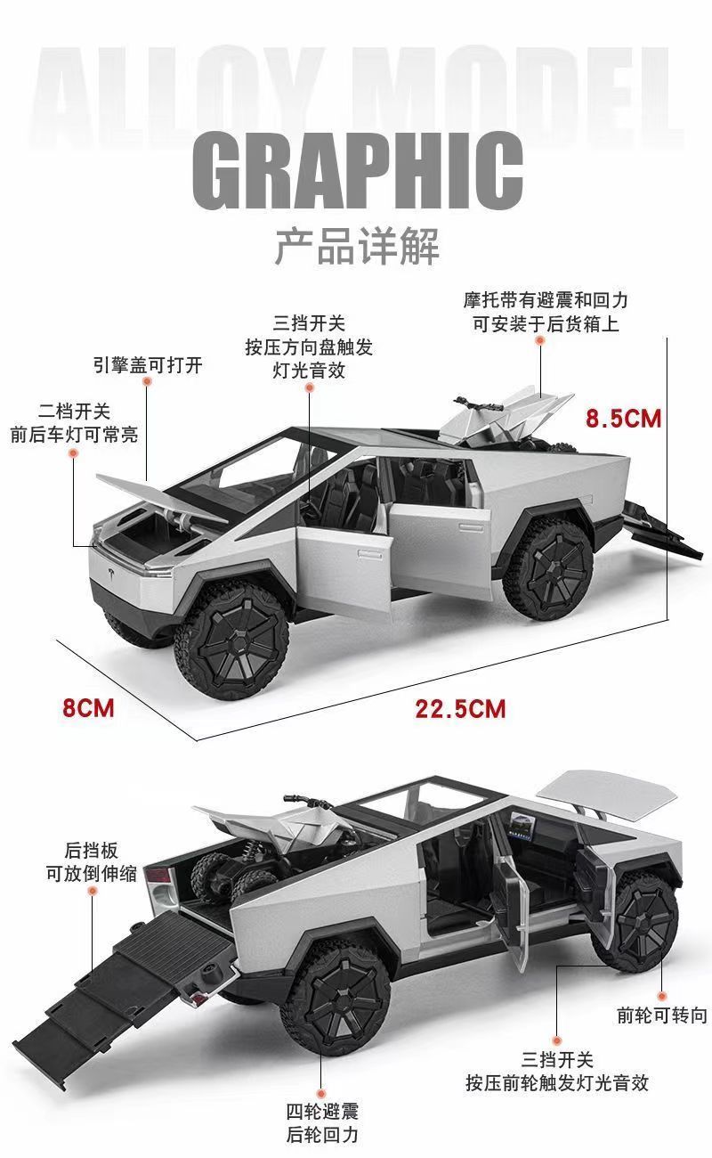 | small tesla pickup + full set of scenes + alloy car (silver(小特斯拉皮卡+全套场景+合金小车(银) | USD $10.07 | 999999 piece available |