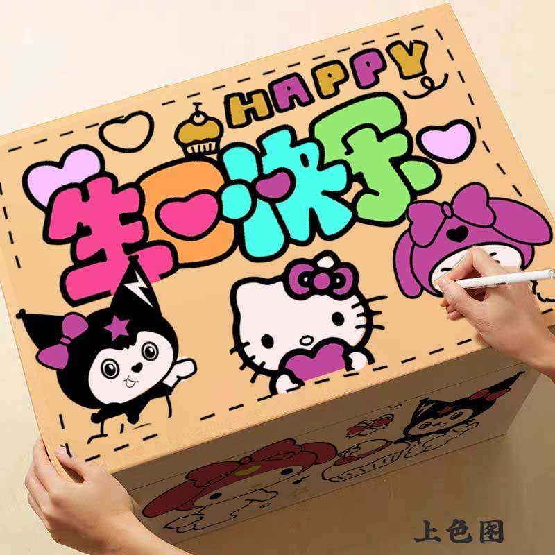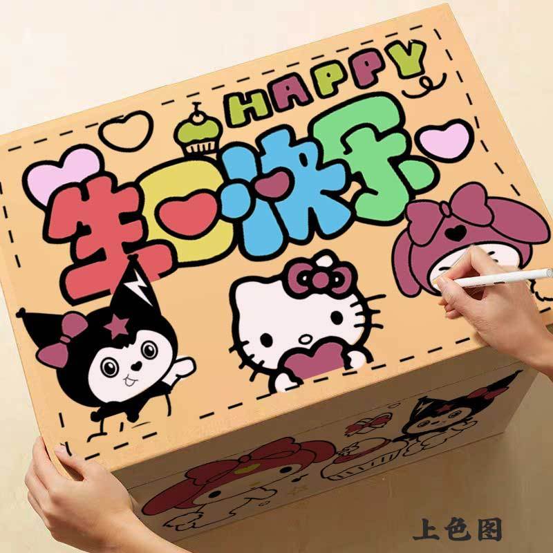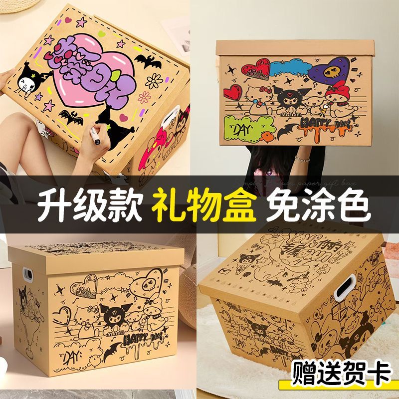 卡通涂鸦生日纸箱子礼物盒大号容量礼盒空盒子包装盒送男生礼品盒