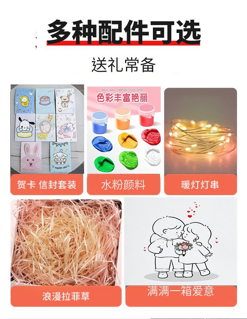 | gift box + led lighting chain + raffia + greeting card + gouache [send pen]](礼盒+LED灯串+拉菲草+贺卡+水粉【送笔】) | USD $5.98 | 999999 piece available |