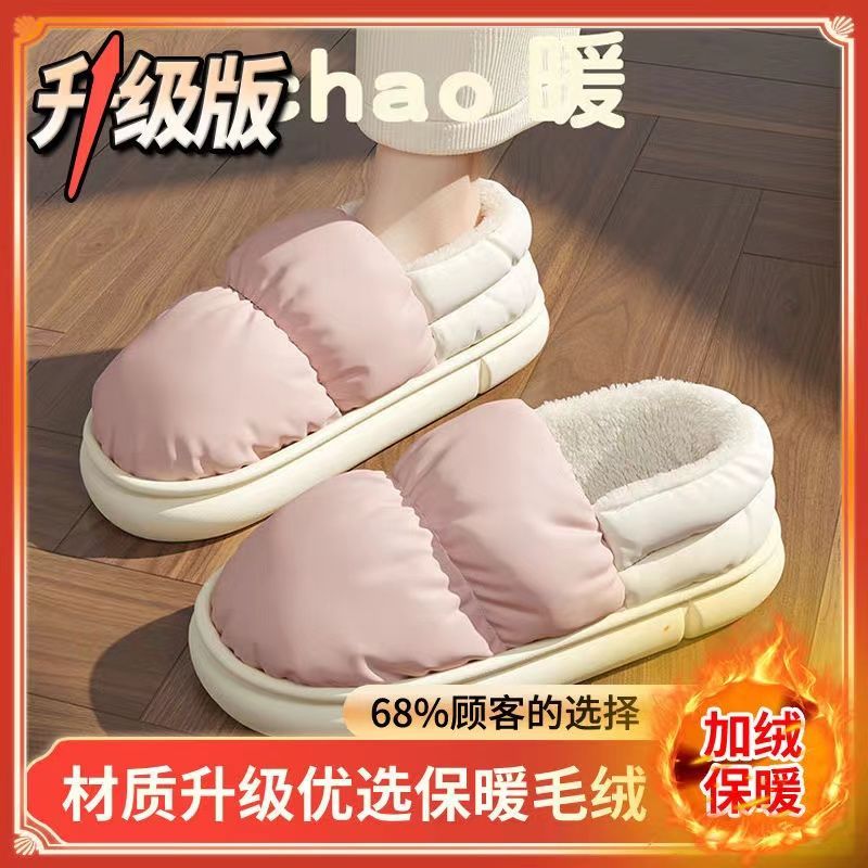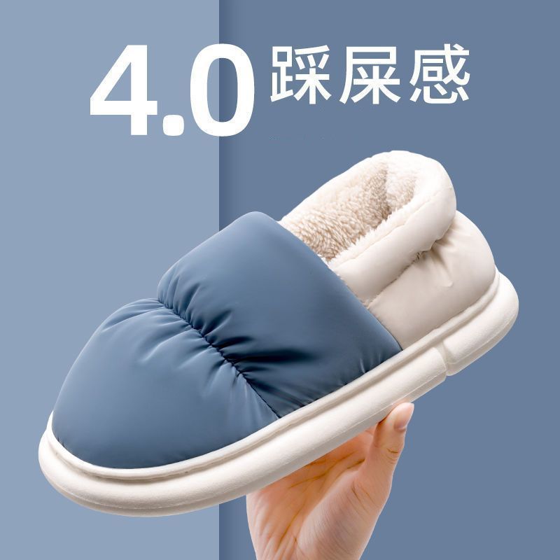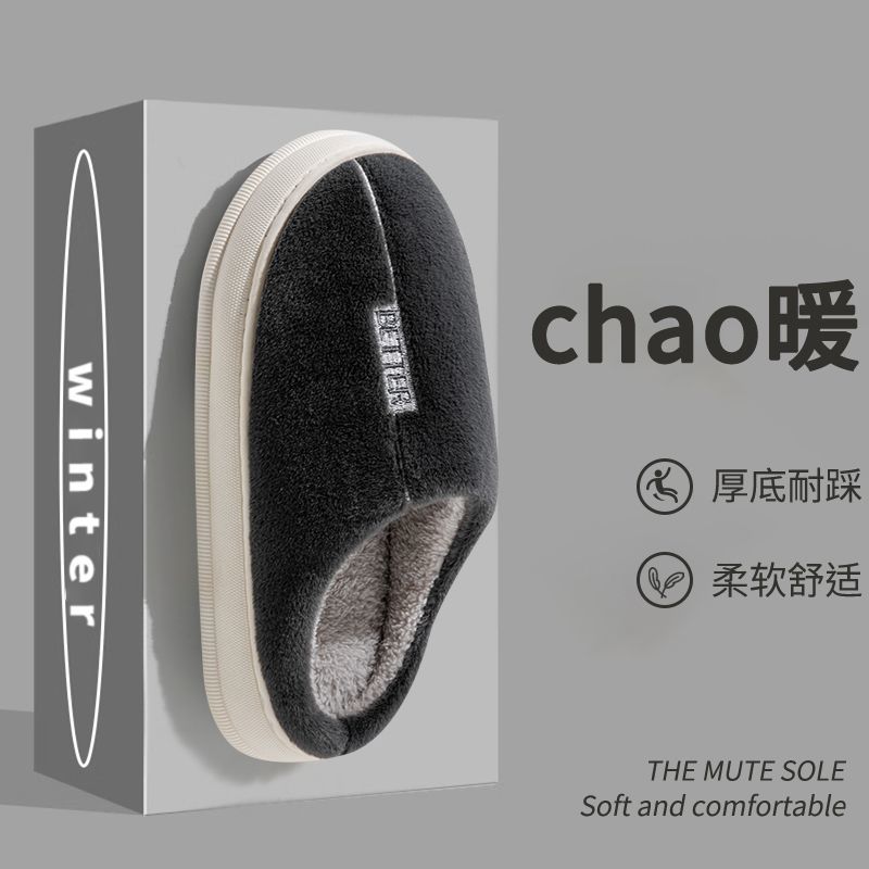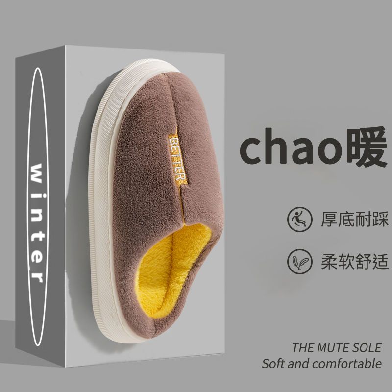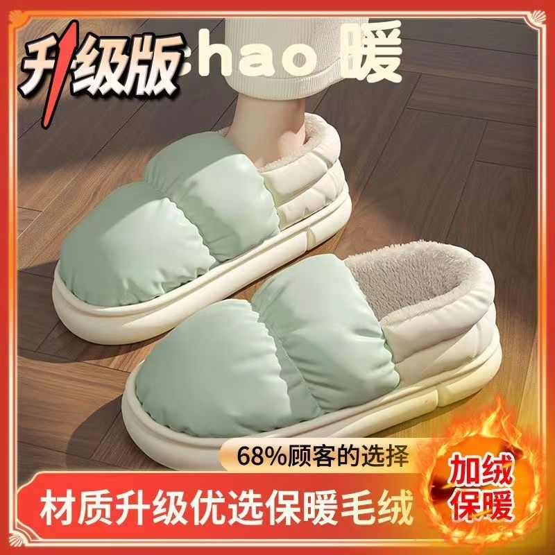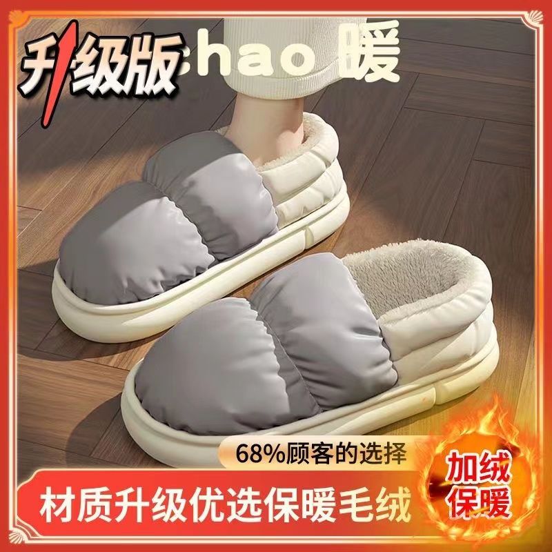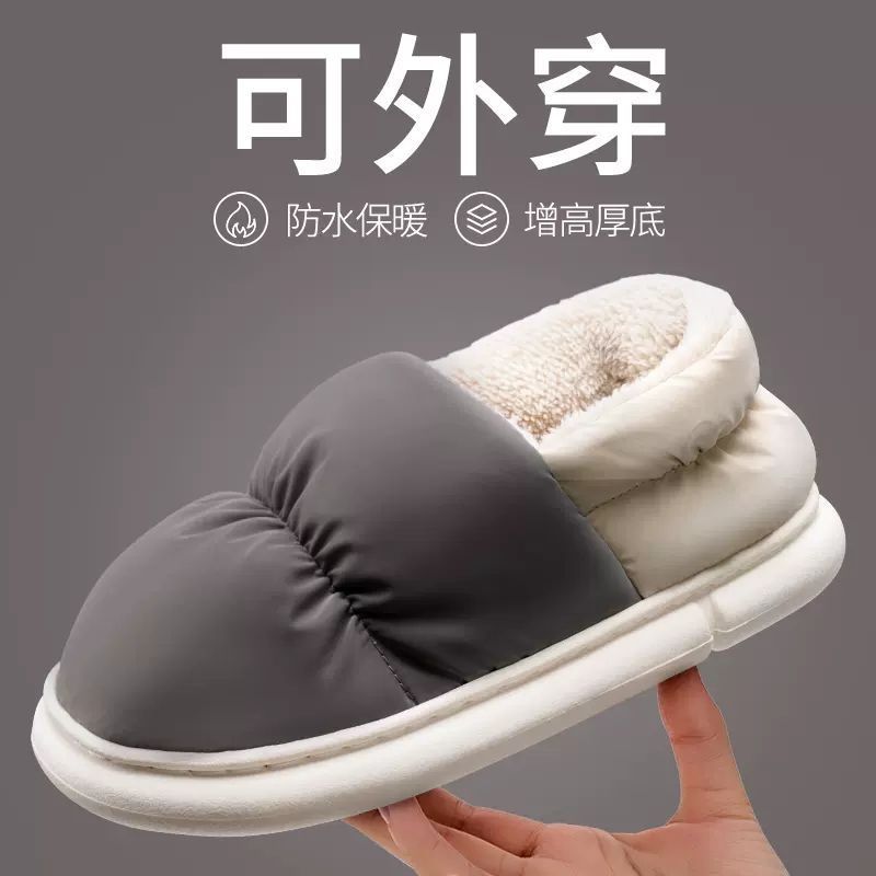 踩屎感男士棉拖鞋男冬季室内家居保暖包跟厚底家用外穿防水棉鞋女