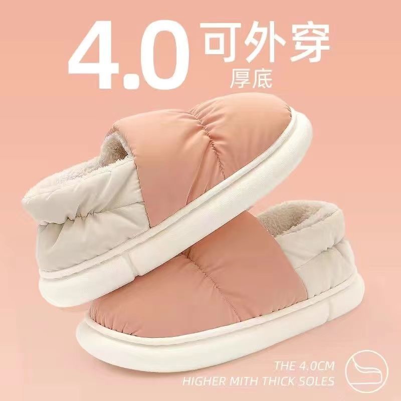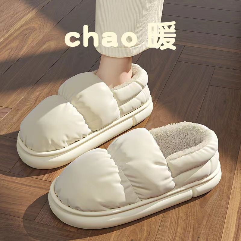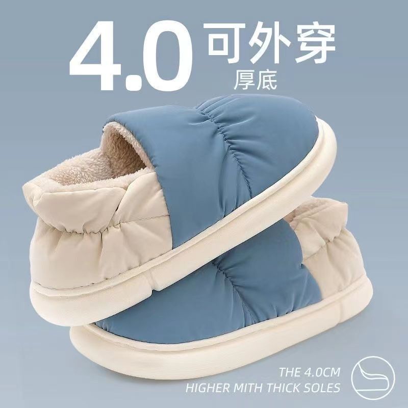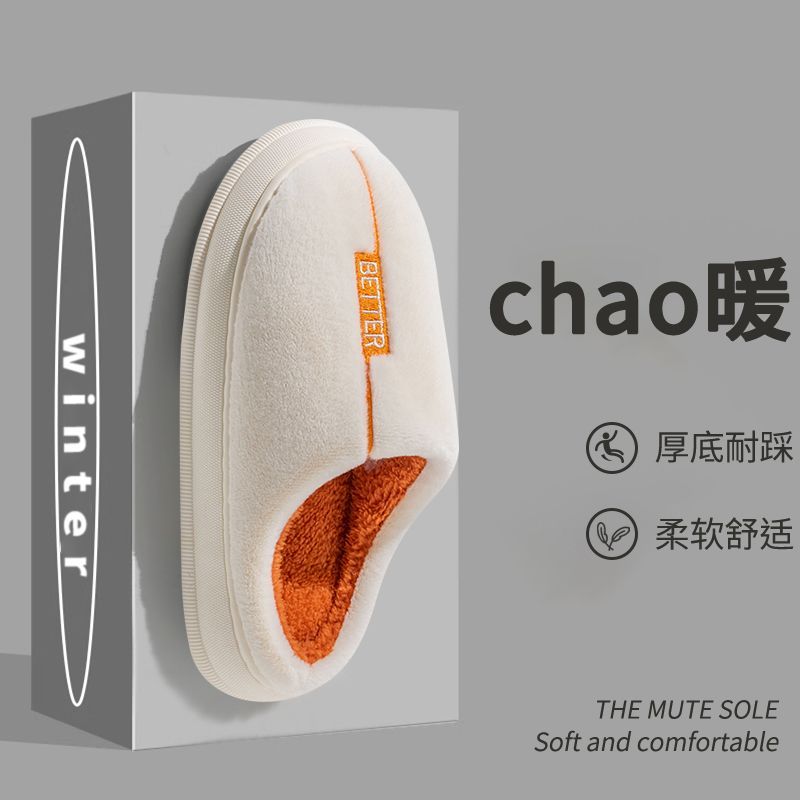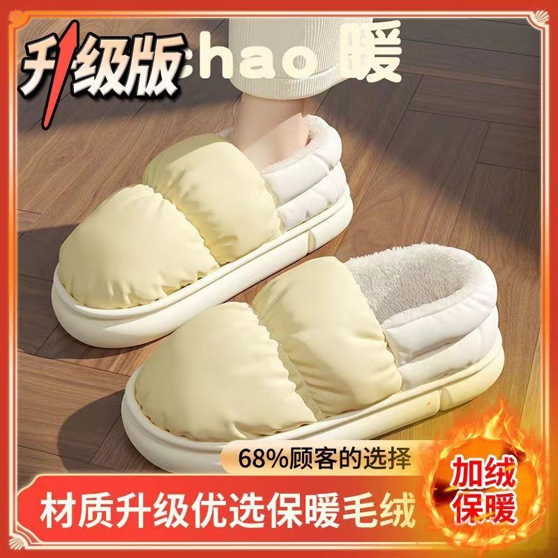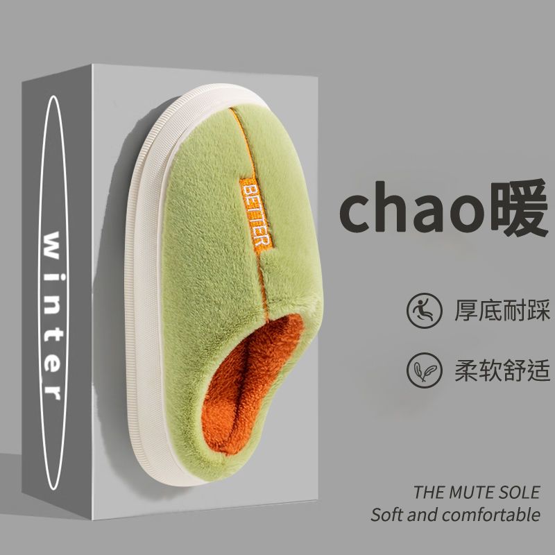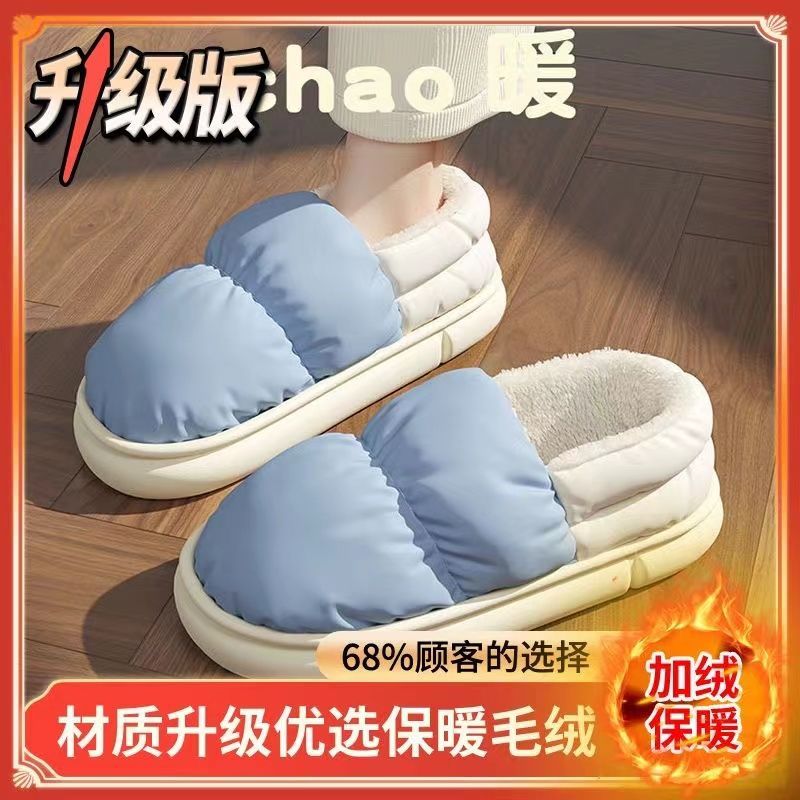 踩屎感男士棉拖鞋男冬季室内家居保暖包跟厚底家用外穿防水棉鞋女