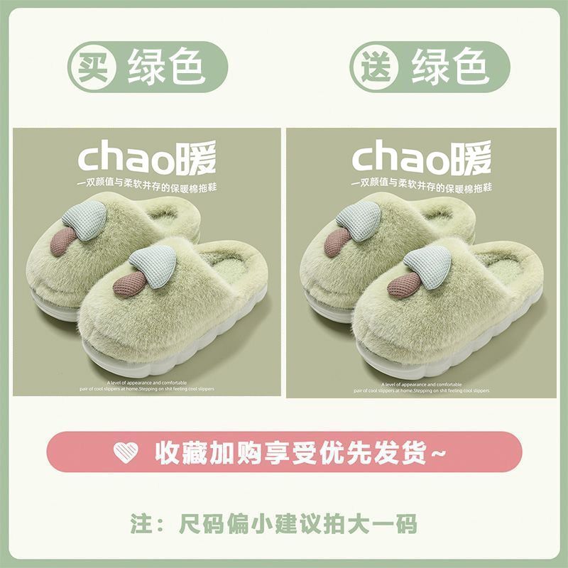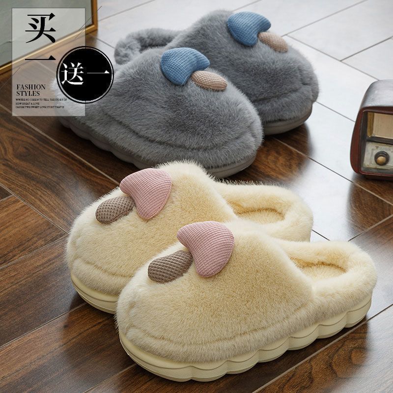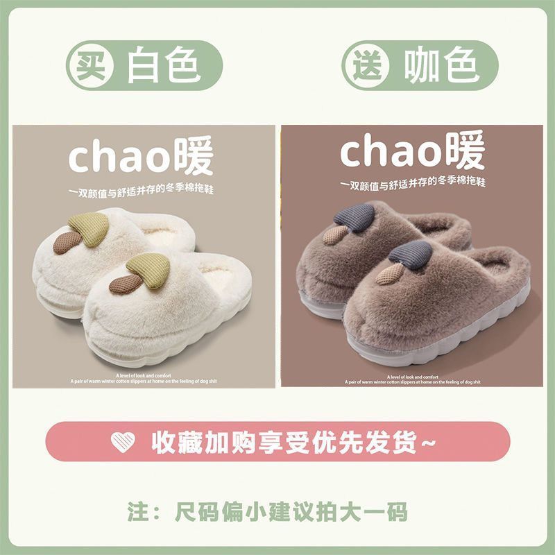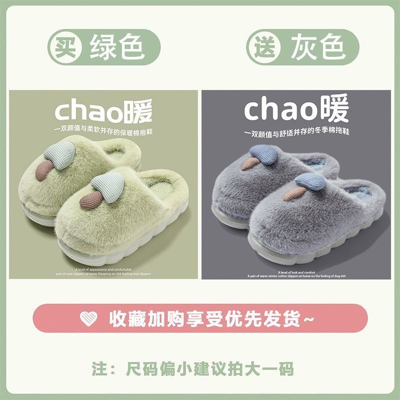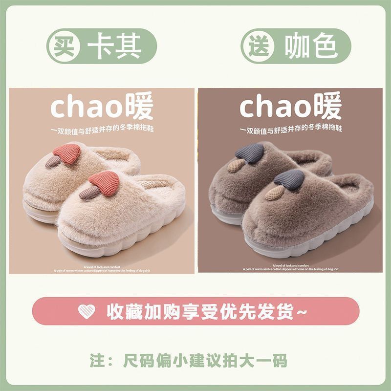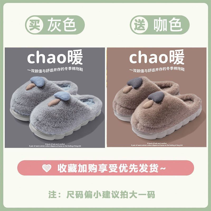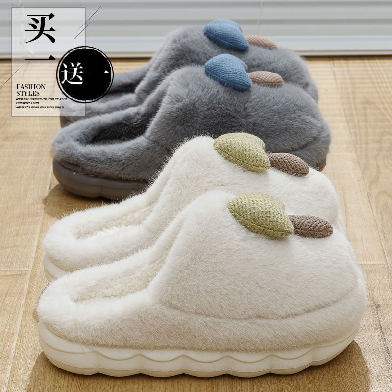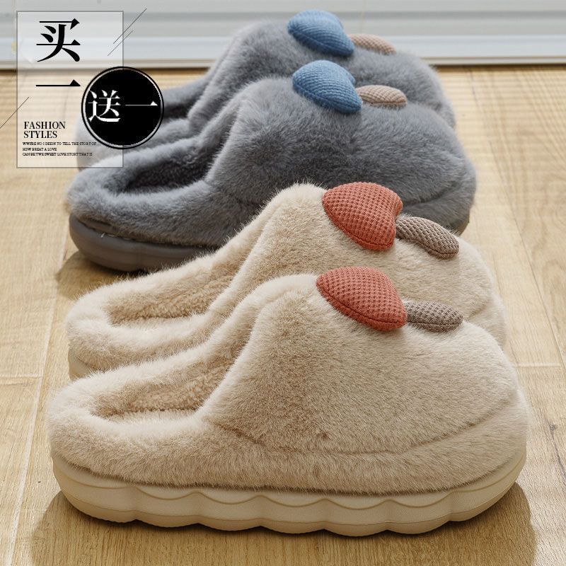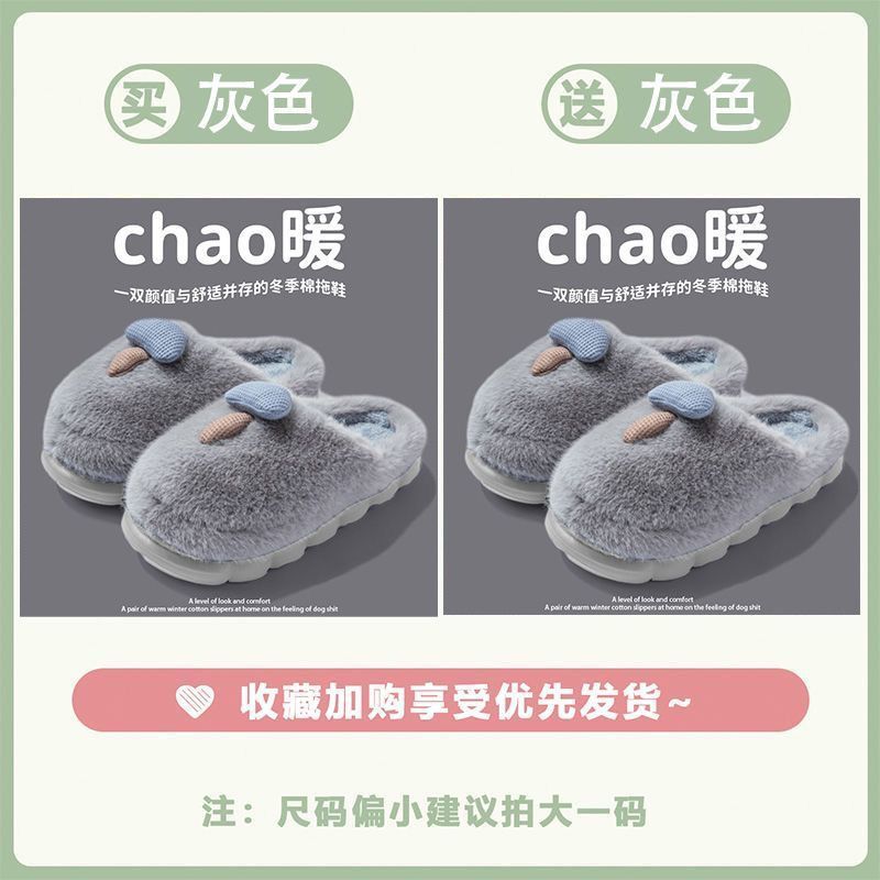 买一送一棉拖鞋女士冬季室内家居情侣一对可爱保暖厚底毛绒棉拖男