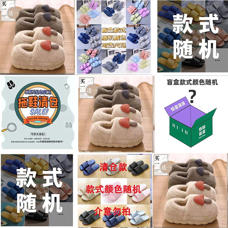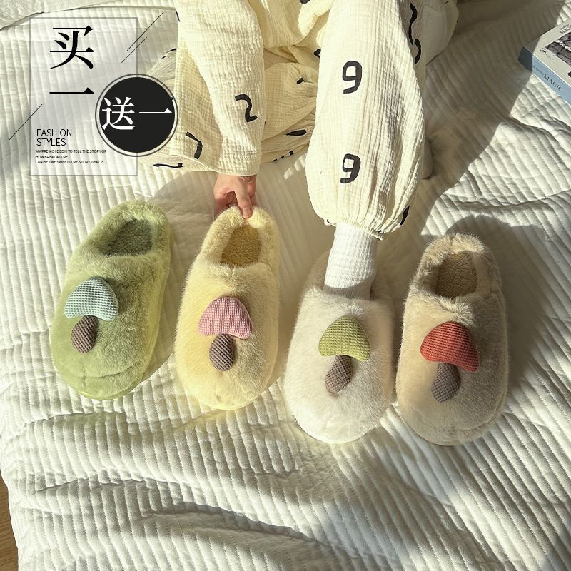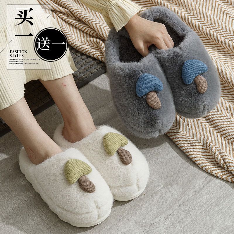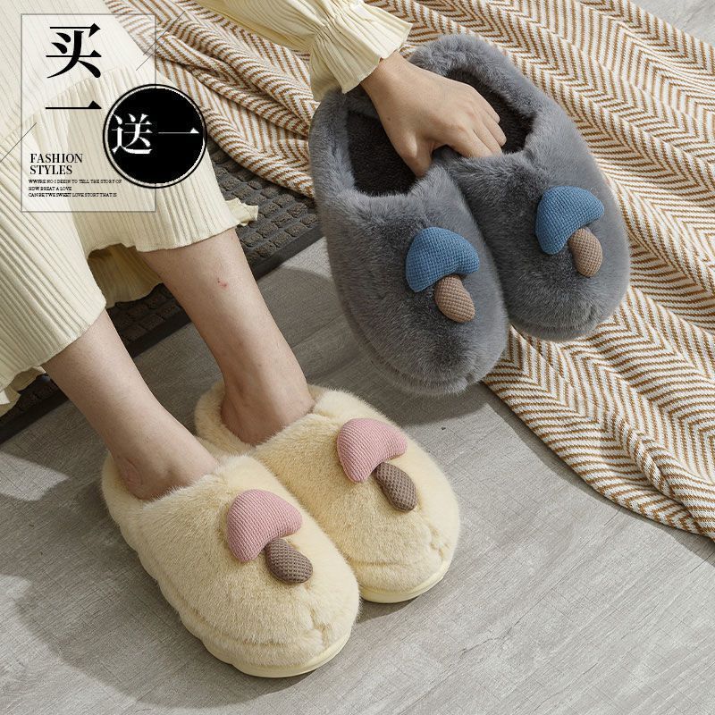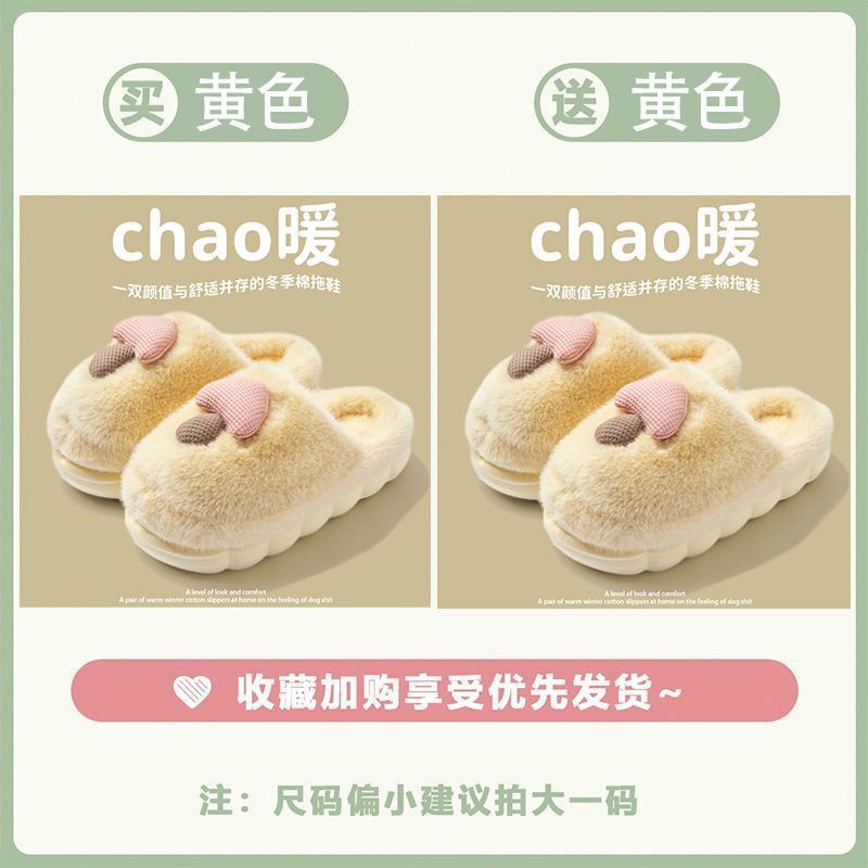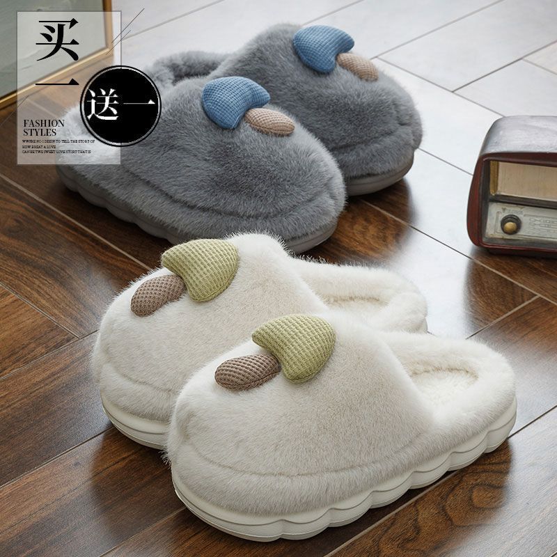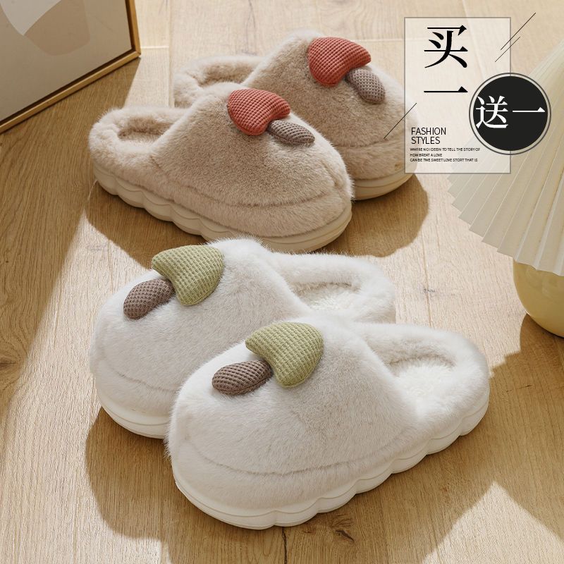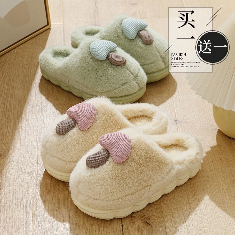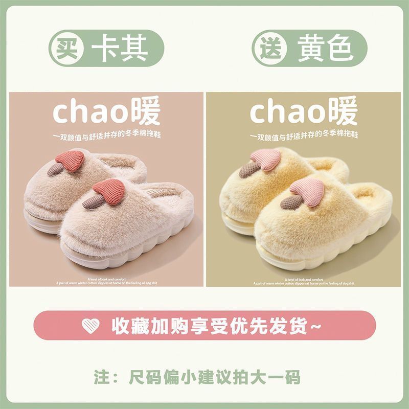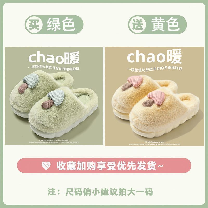 买一送一棉拖鞋女士冬季室内家居情侣一对可爱保暖厚底毛绒棉拖男