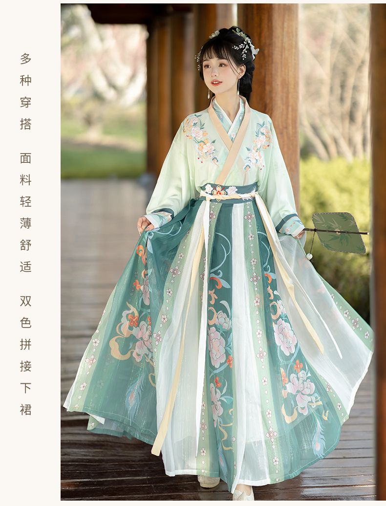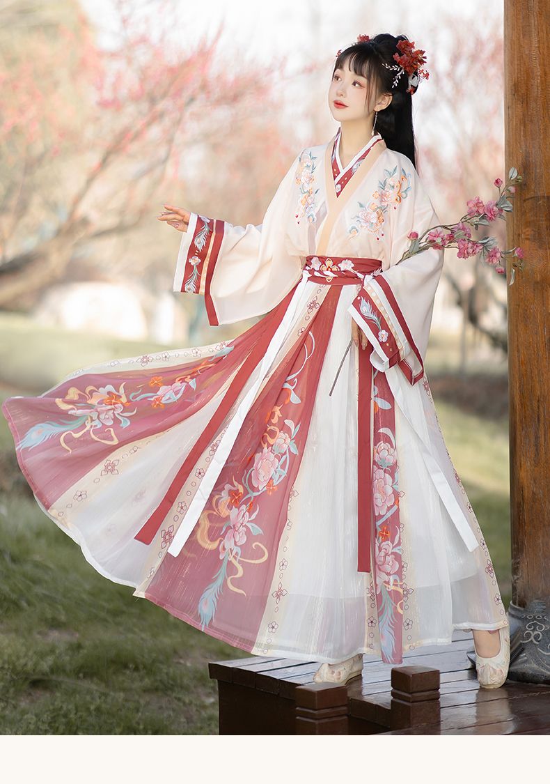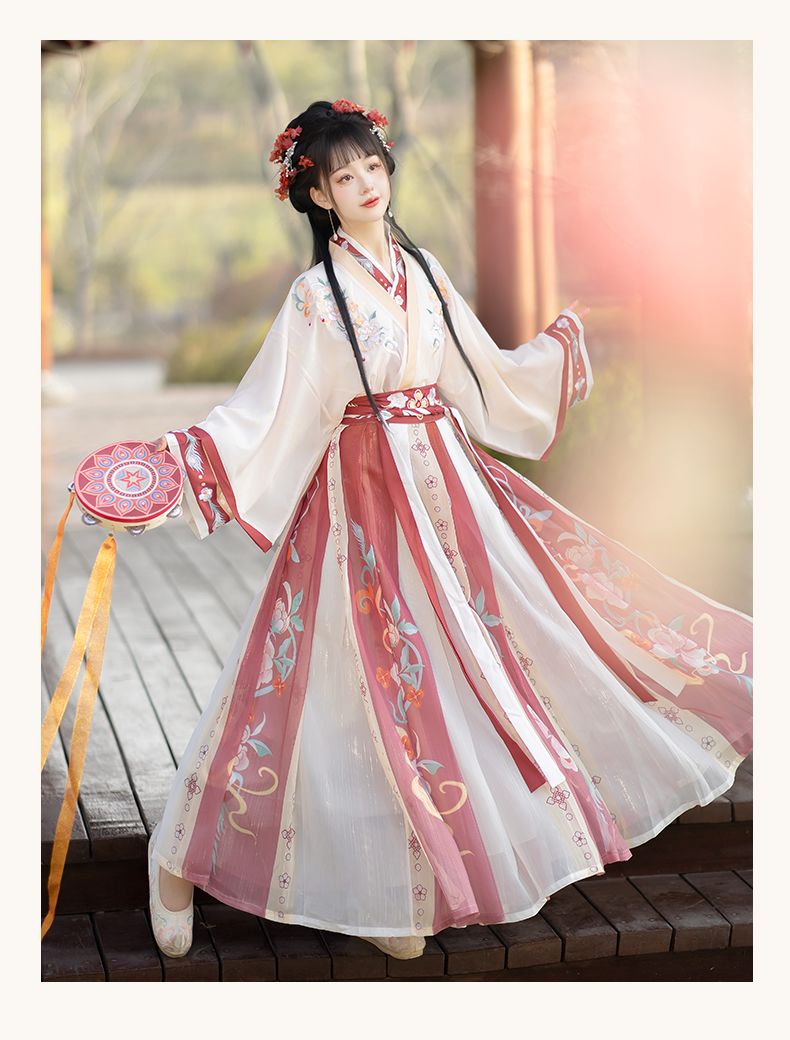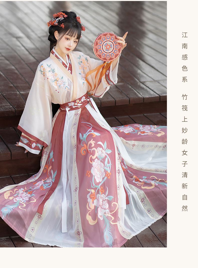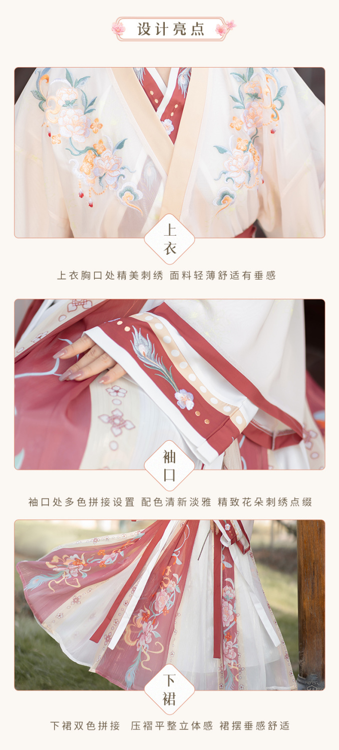 秀巅原创汉服【红朝袖】晋制汉服女齐腰襦裙中国风绣花日常春夏款