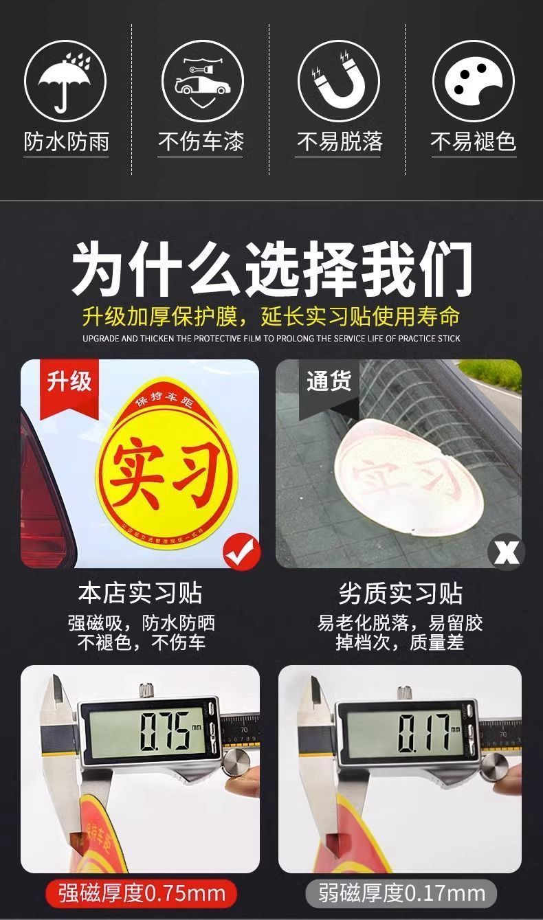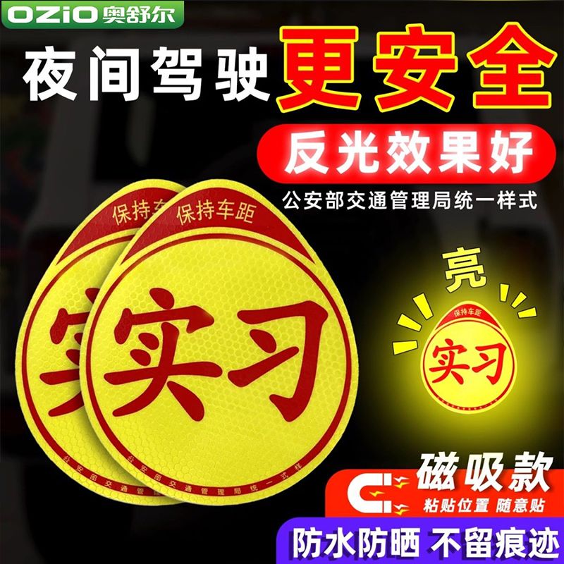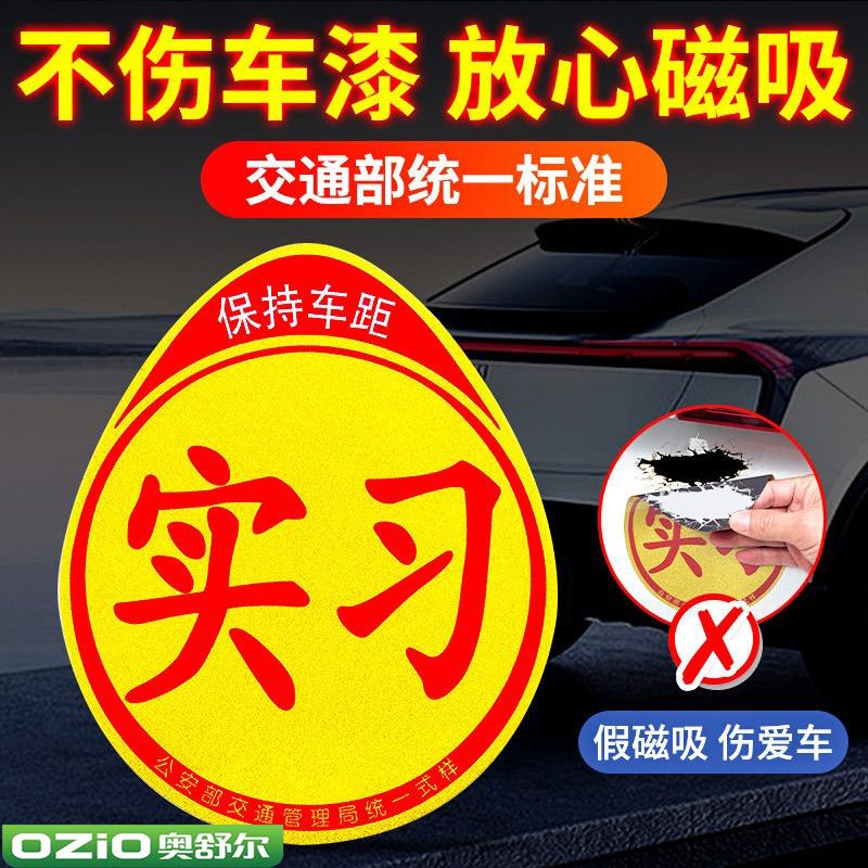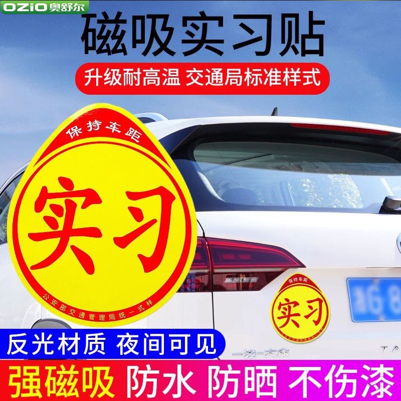 实习车贴磁吸女司机新手上路创意标志汽车贴纸磁性车用划痕遮挡