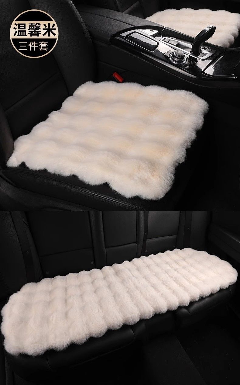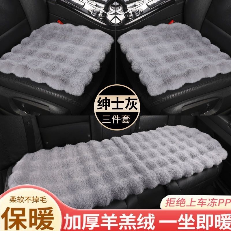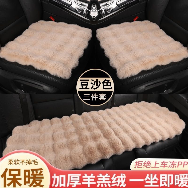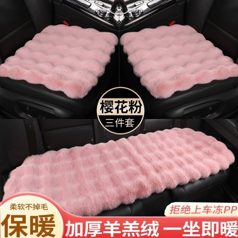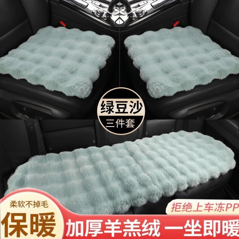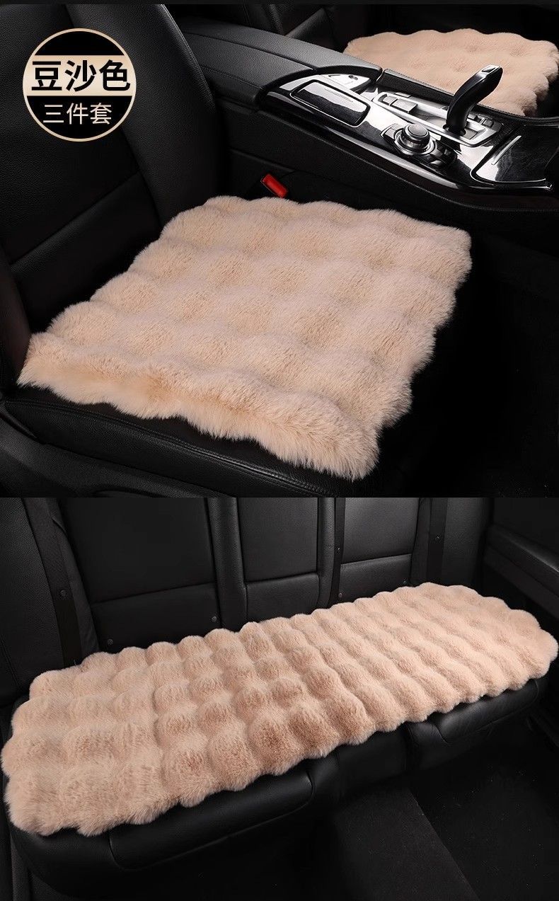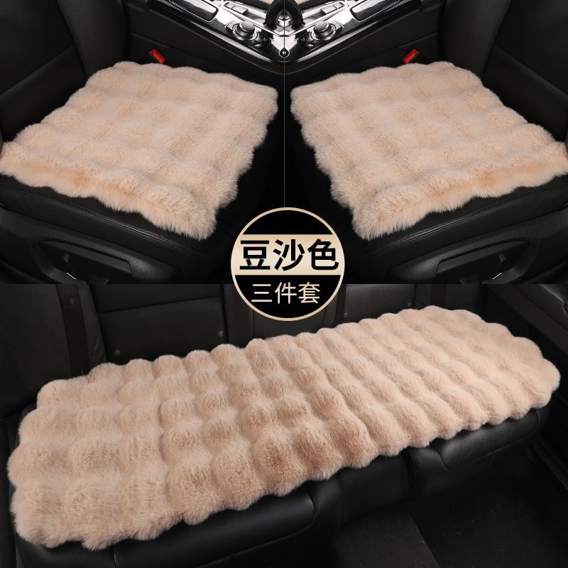 冬季毛绒坐垫新款汽车坐垫防滑保暖泡泡兔毛绒通用加厚三件套座垫
