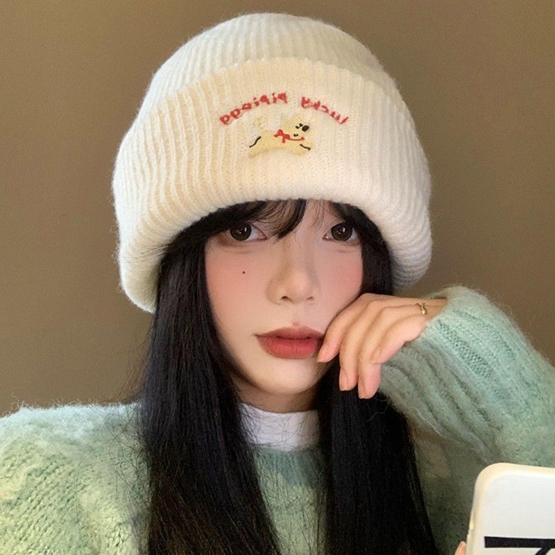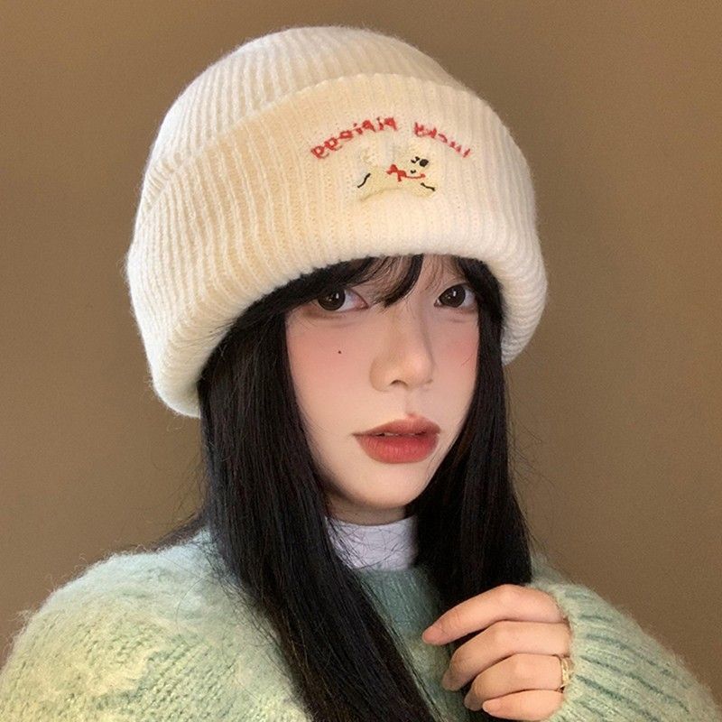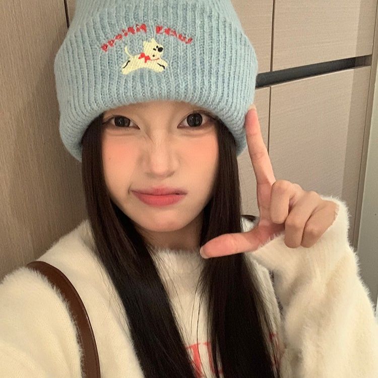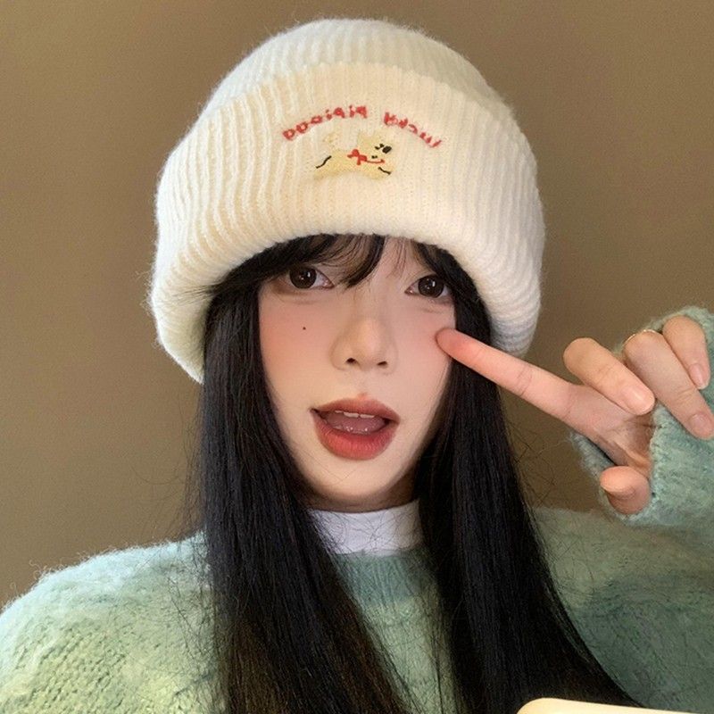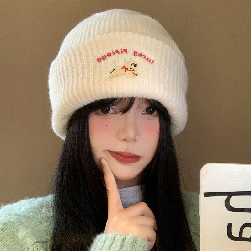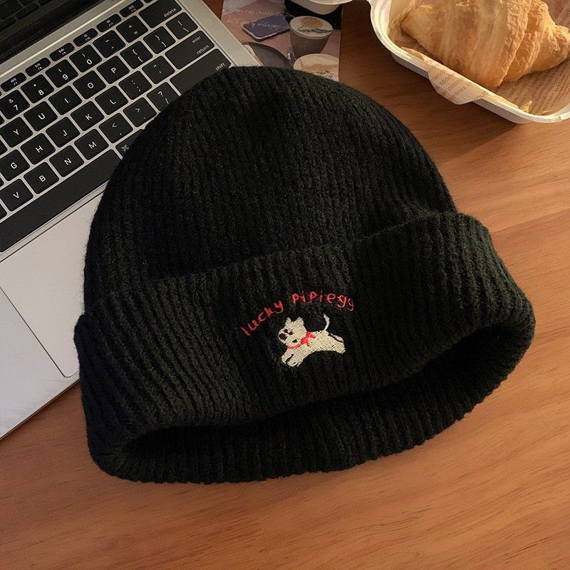 可爱小狗刺绣针织秋冬保暖显脸新款秋冬季护耳毛线帽百搭冷帽帽子
