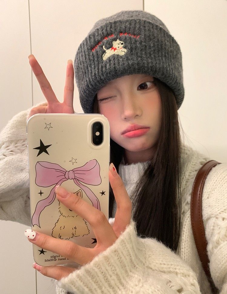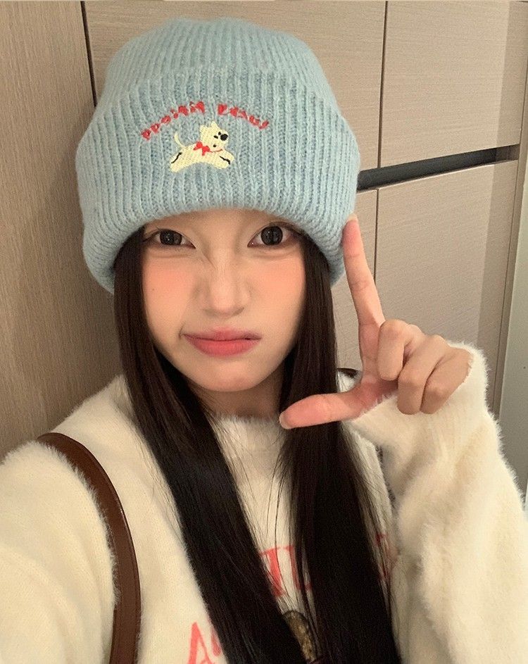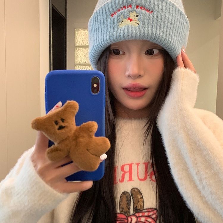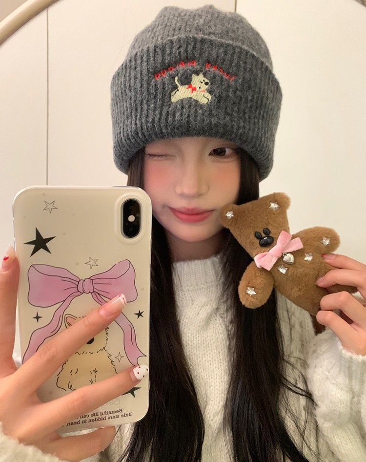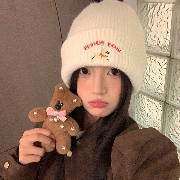 可爱小狗刺绣针织秋冬保暖显脸新款秋冬季护耳毛线帽百搭冷帽帽子