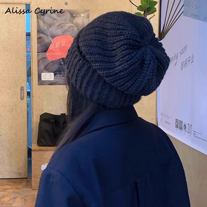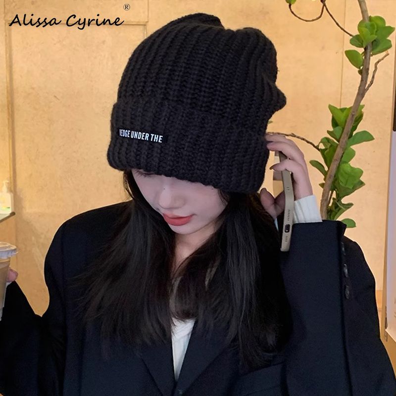 AlissaCyrine秋冬男女宽松毛线帽子保暖大头围针织护耳百搭冷帽潮