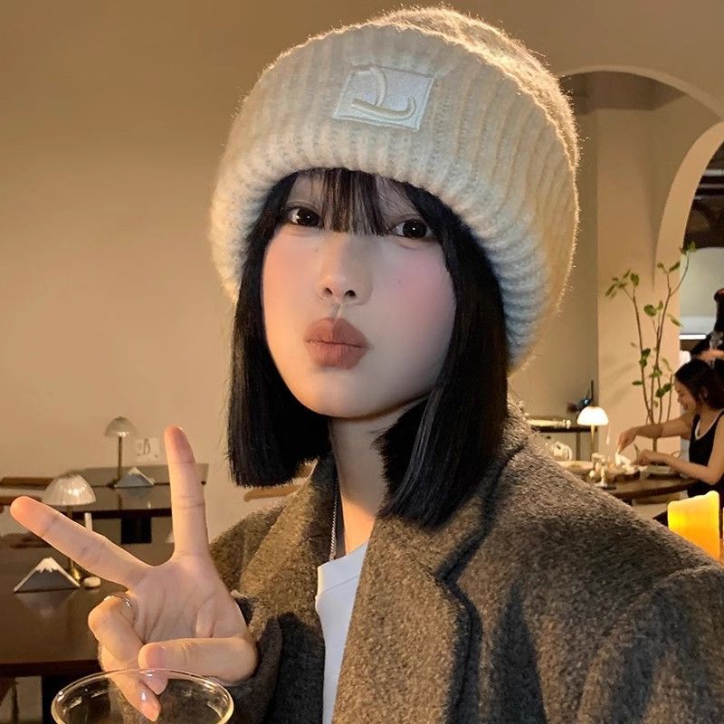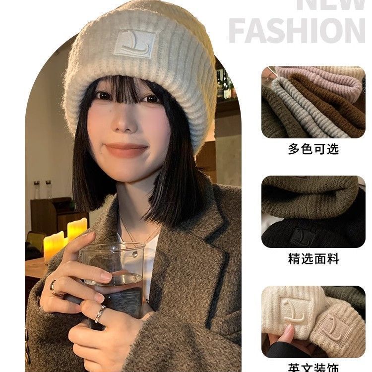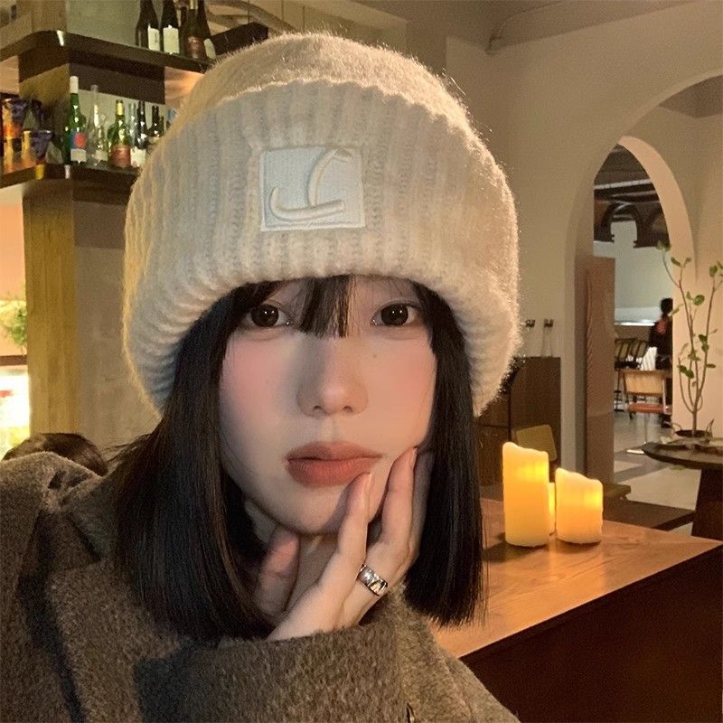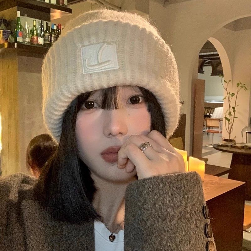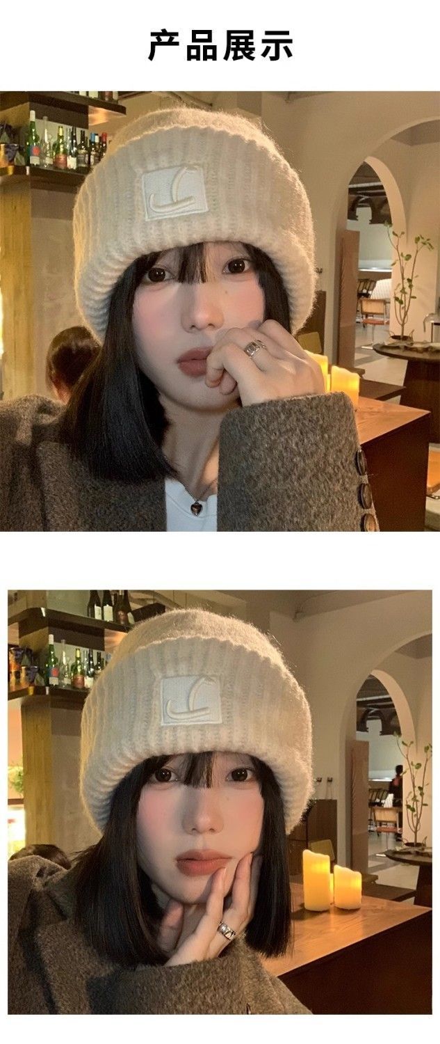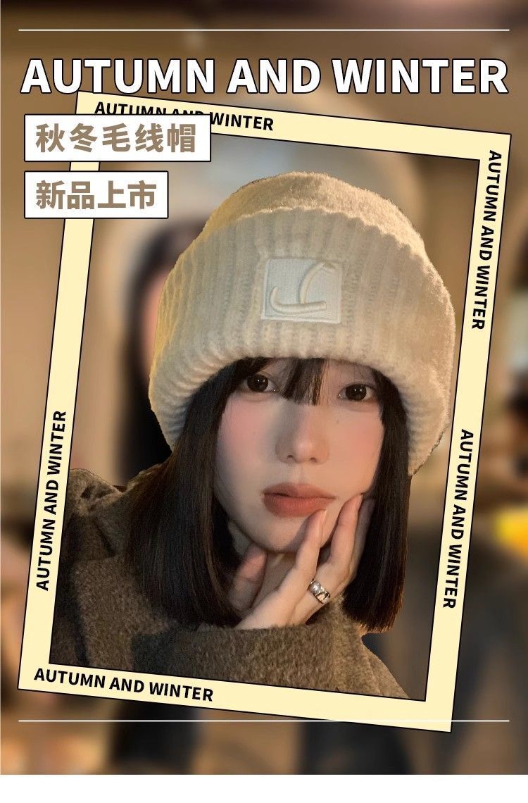大头围毛线帽子女秋冬季宽松保暖堆堆帽冷帽大脸显脸小护耳针织帽