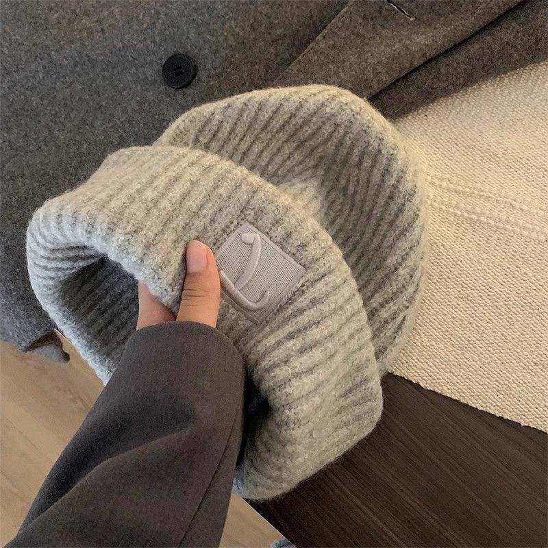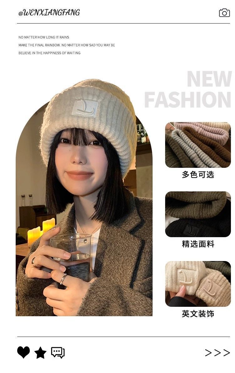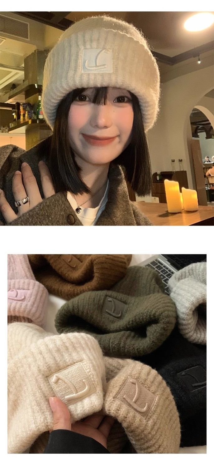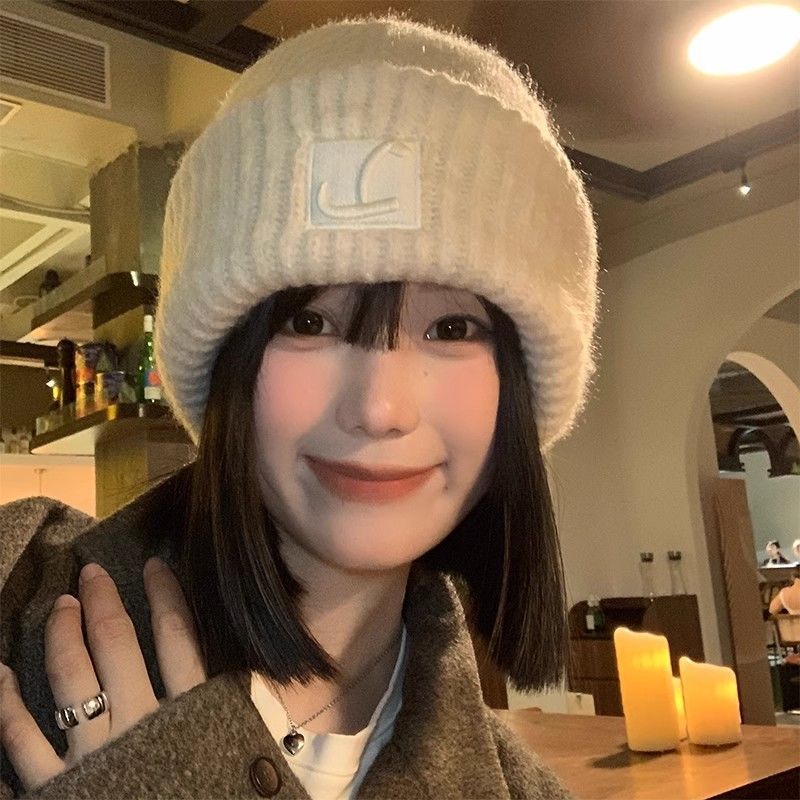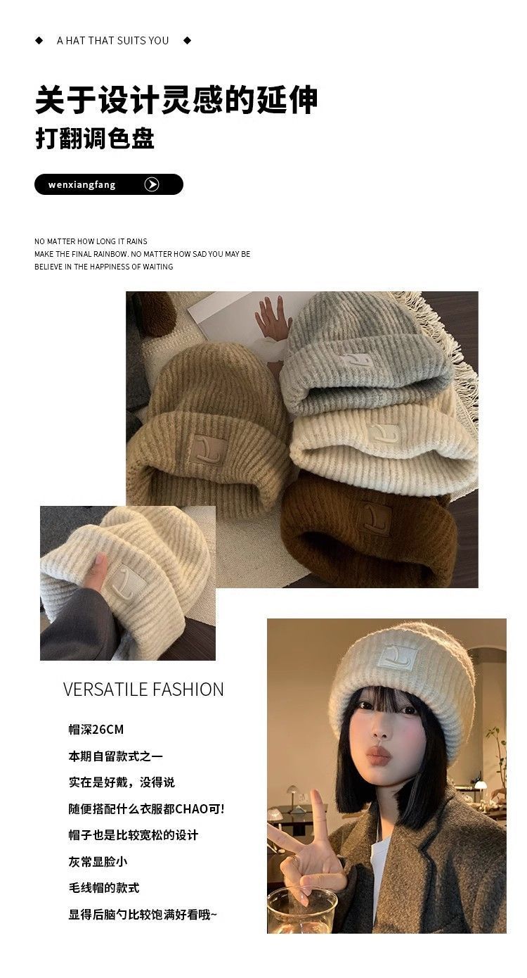 大头围毛线帽子女秋冬季宽松保暖堆堆帽冷帽大脸显脸小护耳针织帽