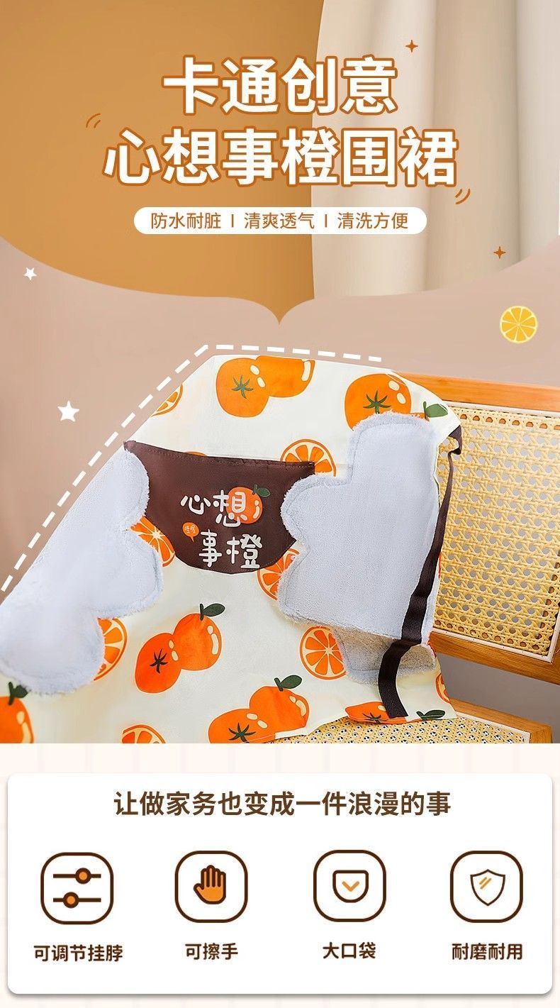 网红可爱上班卡通防水防油围裙时尚家用可擦厨房工作服做饭洋气