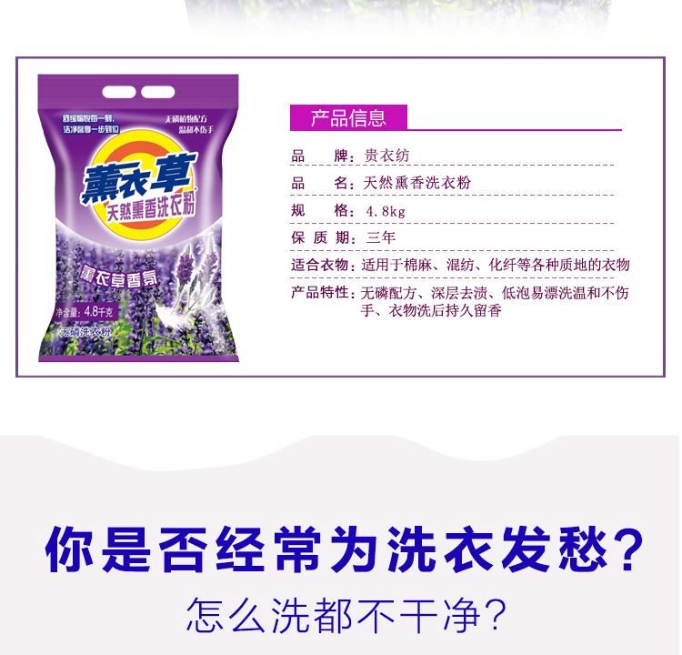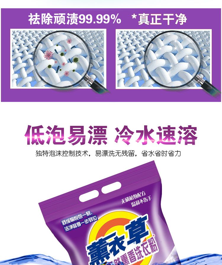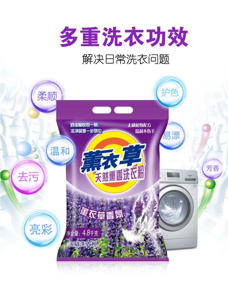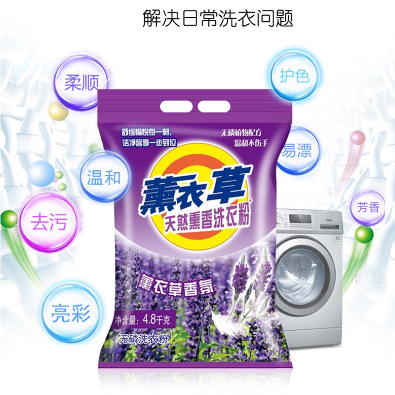 | lavender washing powder 4.80kg decontamination(薰衣草洗衣粉9.6斤去污款) | USD $3.6 | 999999 piece available |