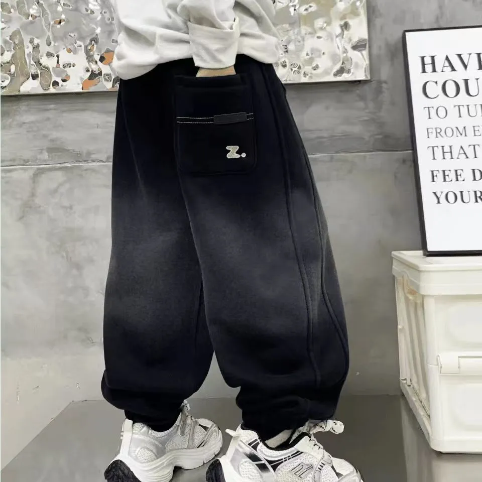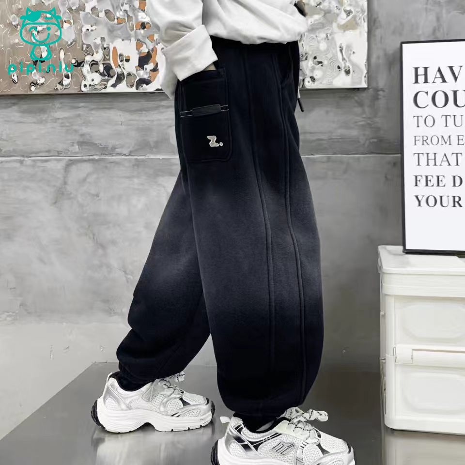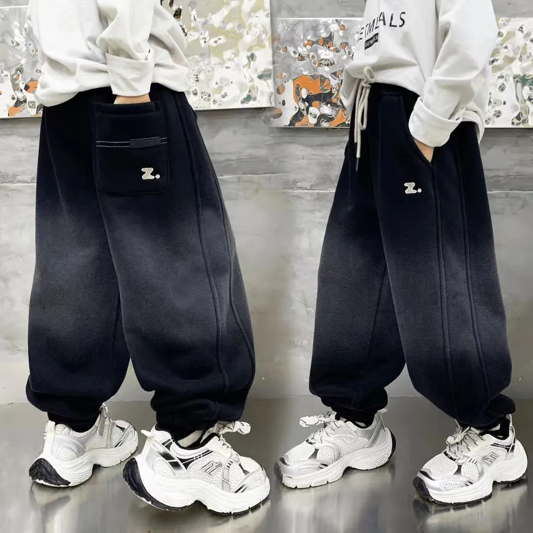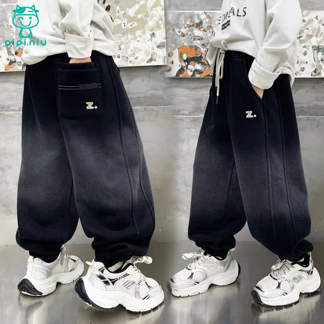 PPN秋冬上新冬季加绒奥粒绒洋气百搭男童中大童渐变Z字母加绒卫裤