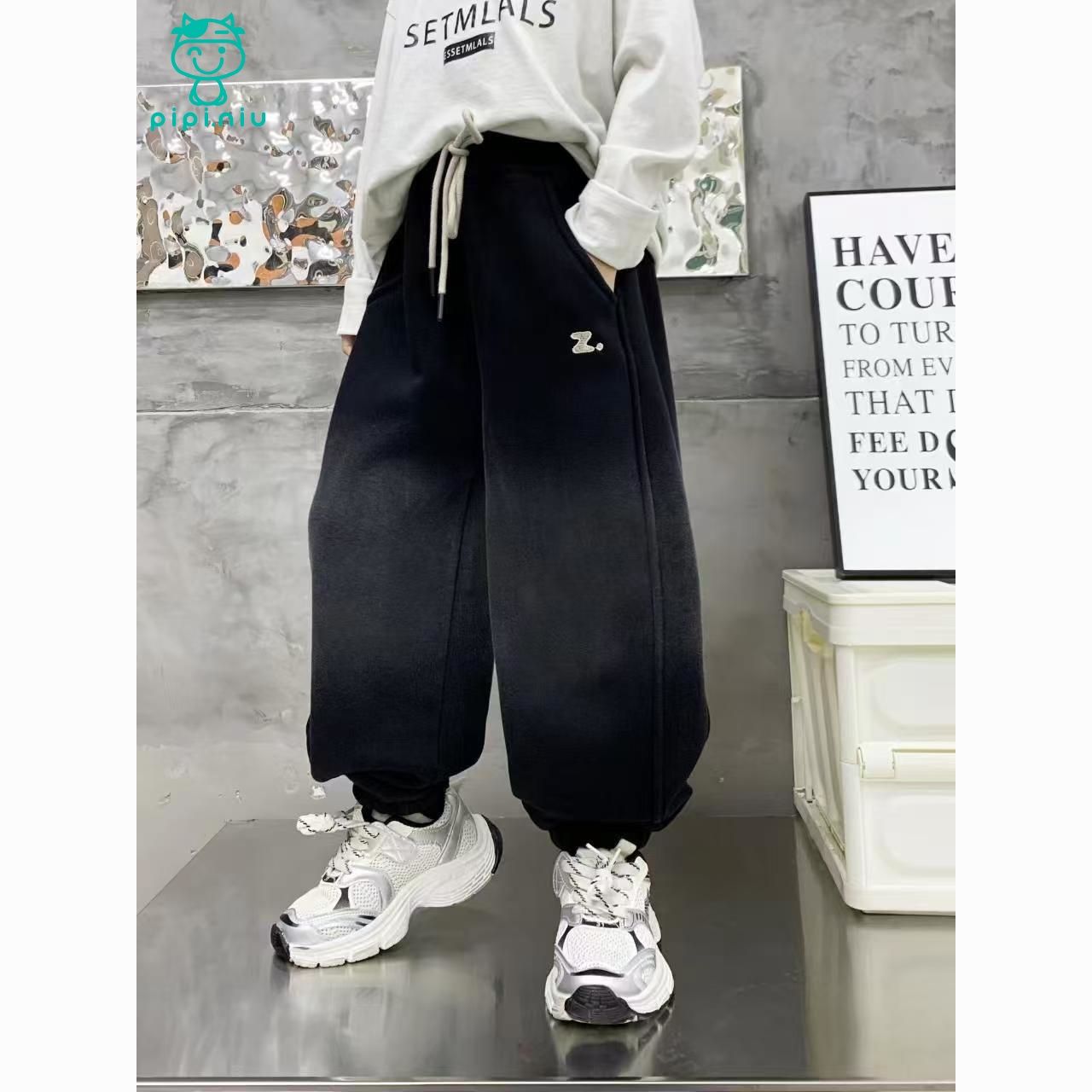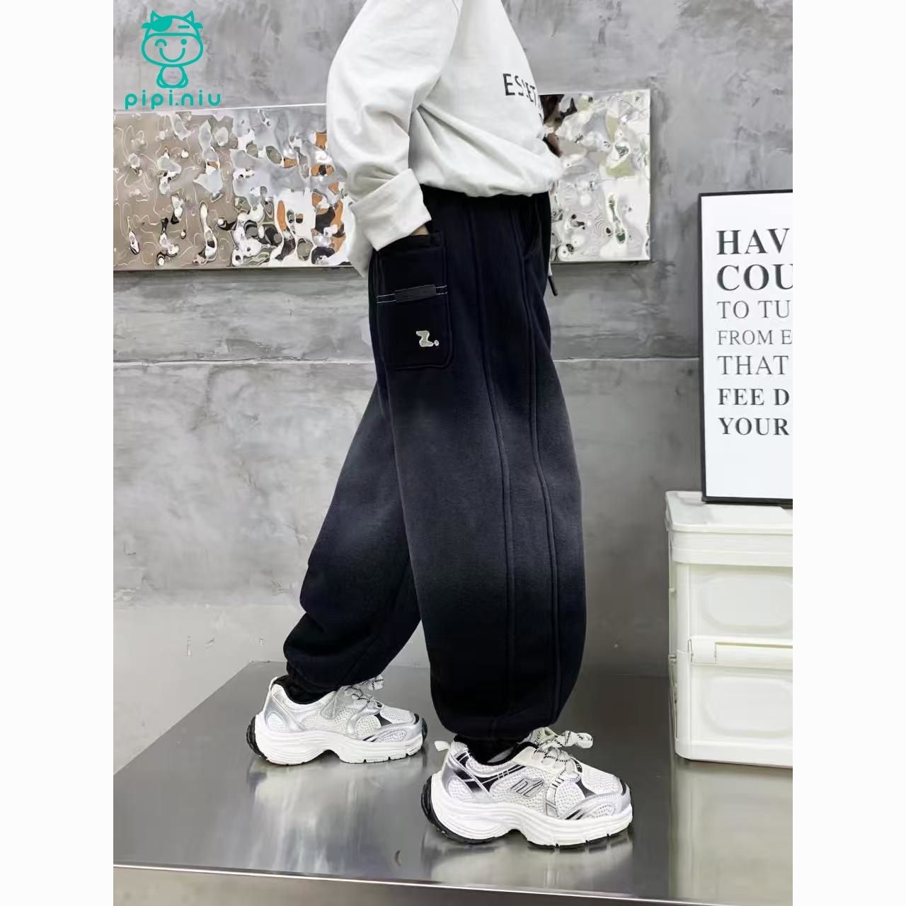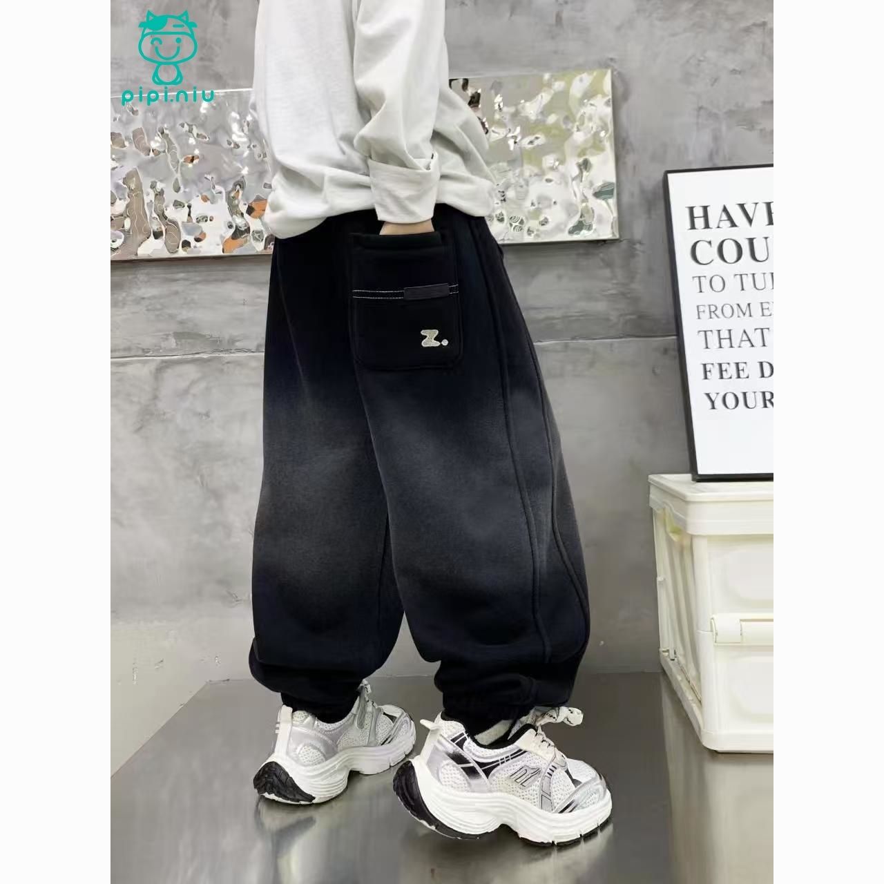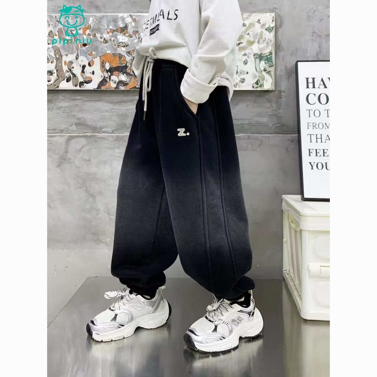 PPN秋冬上新冬季加绒奥粒绒洋气百搭男童中大童渐变Z字母加绒卫裤