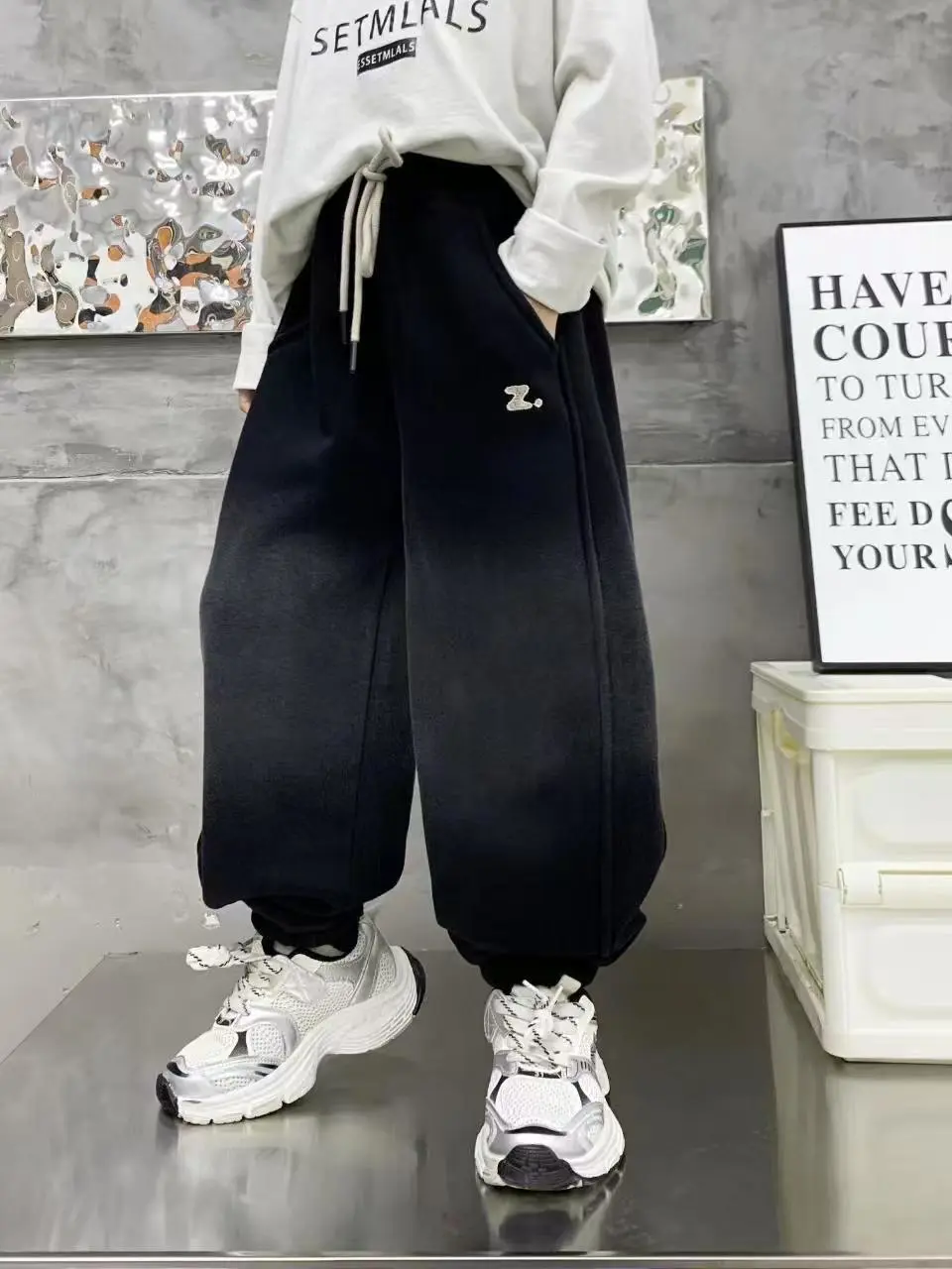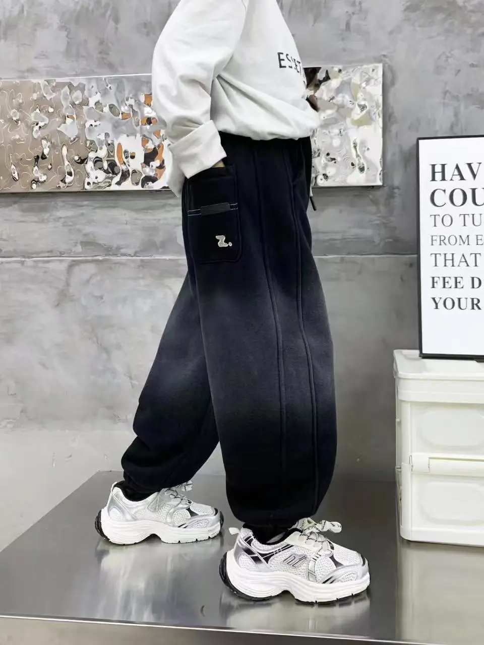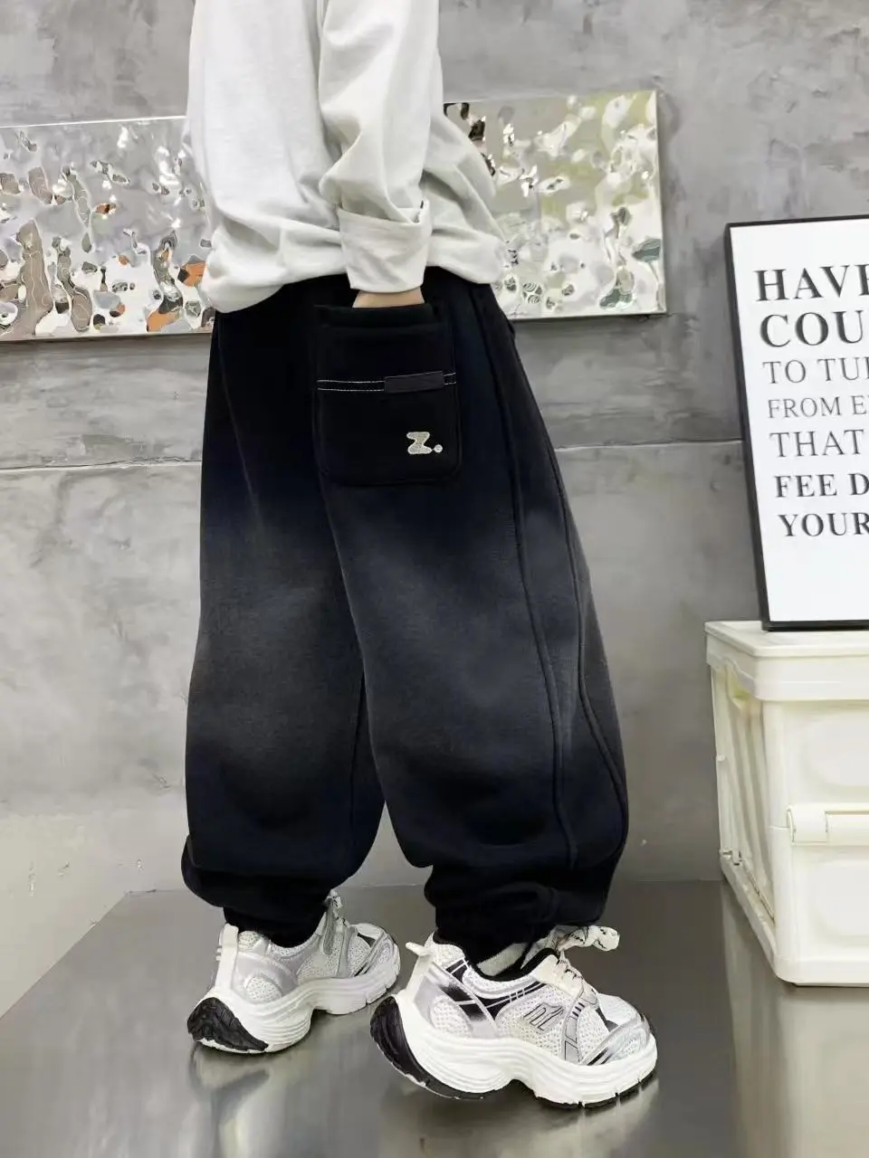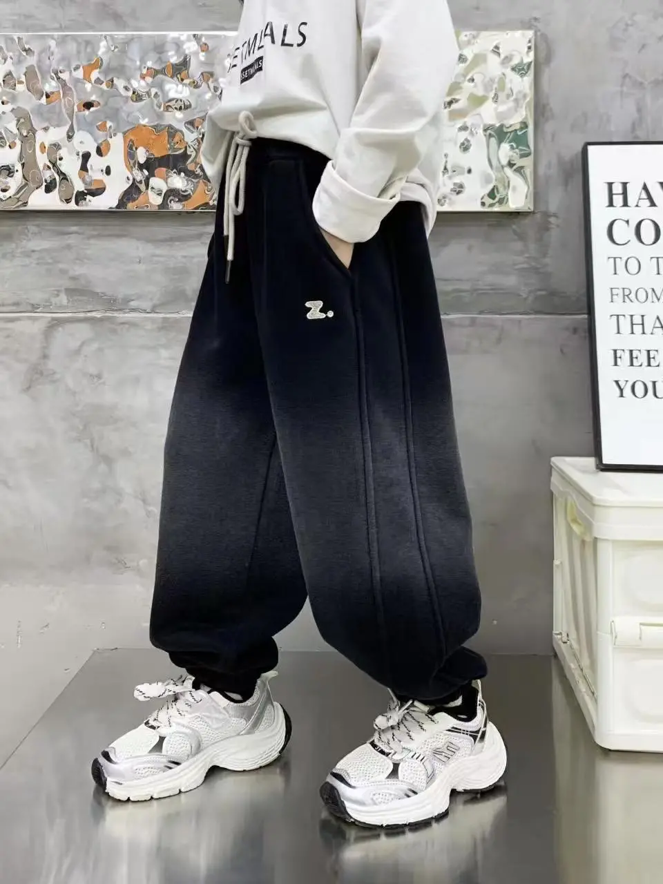 PPN秋冬上新冬季加绒奥粒绒洋气百搭男童中大童渐变Z字母加绒卫裤