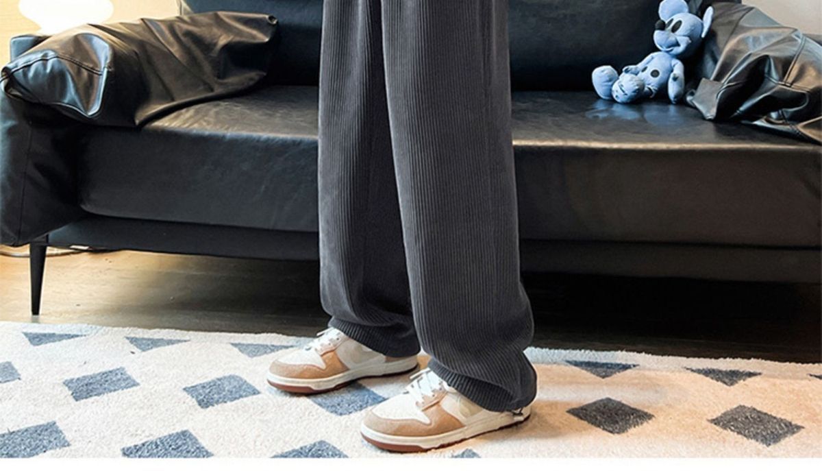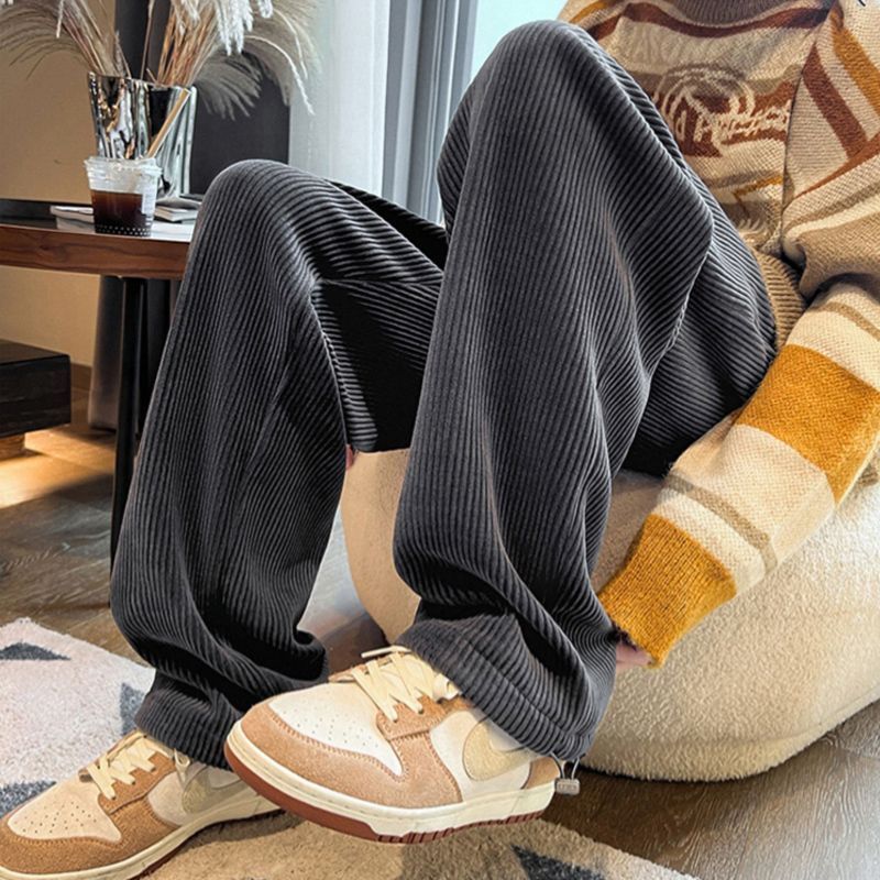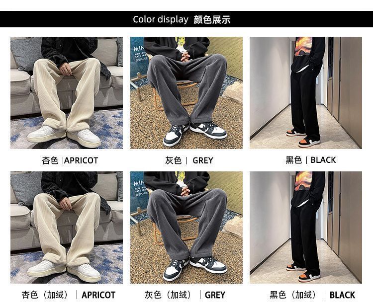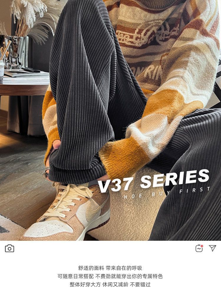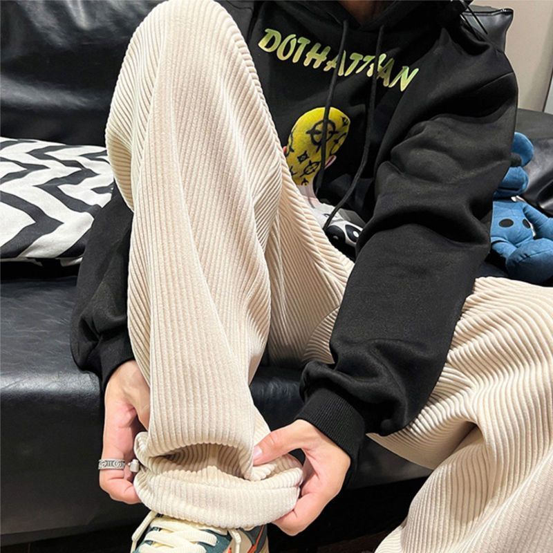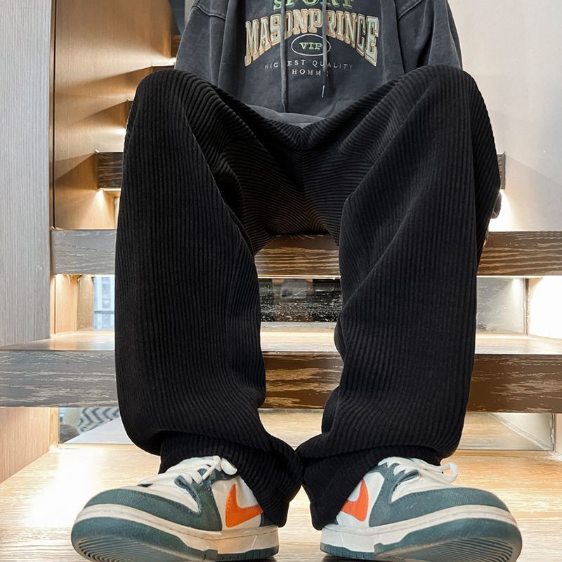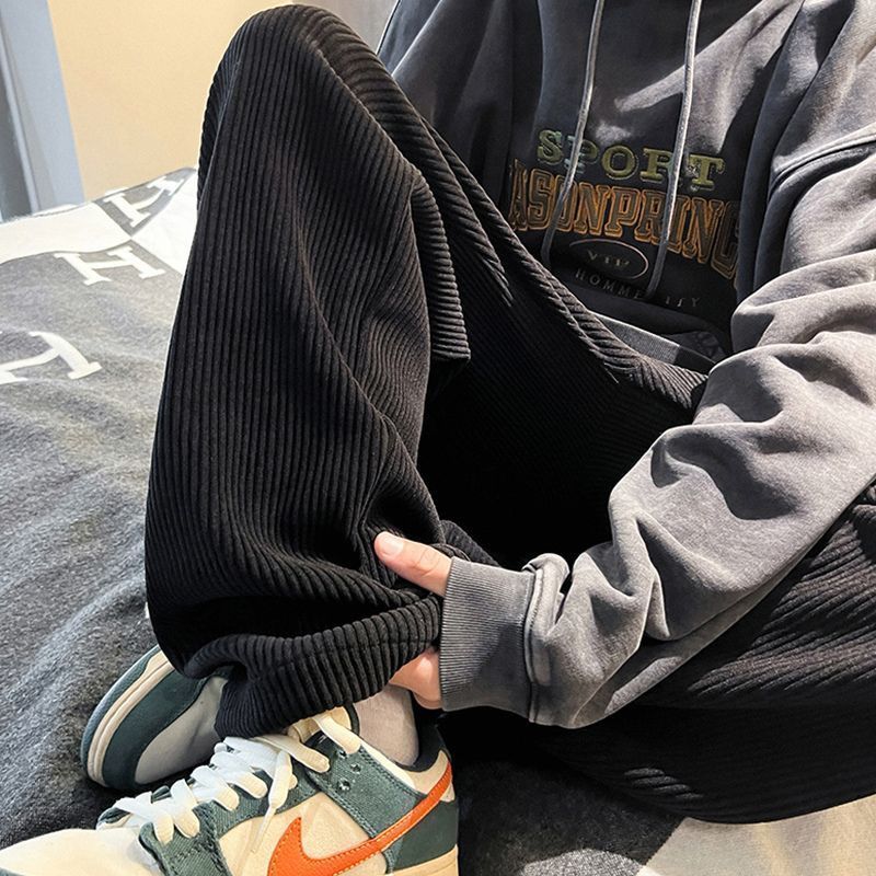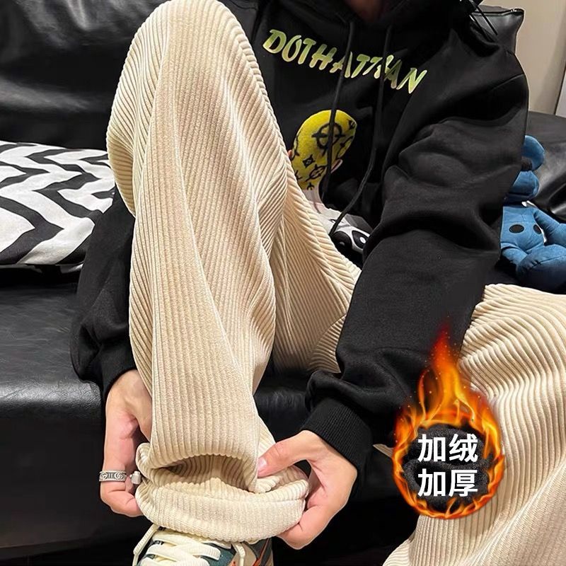 灯芯绒裤子男秋冬季加绒加厚潮牌直筒宽松阔腿裤美式休闲运动裤男