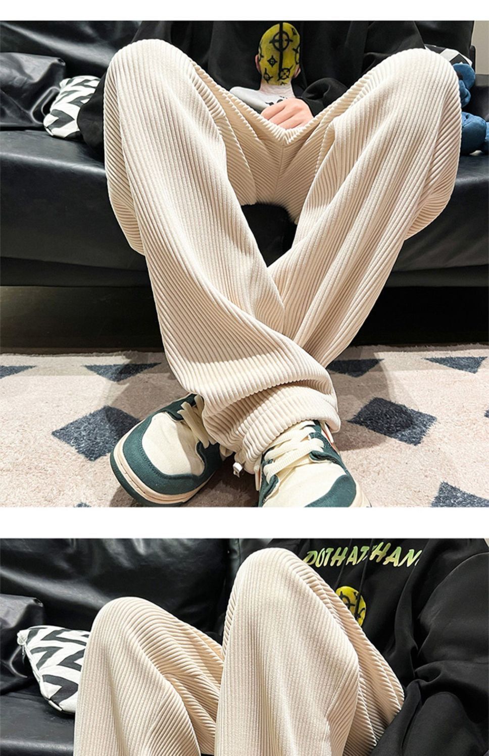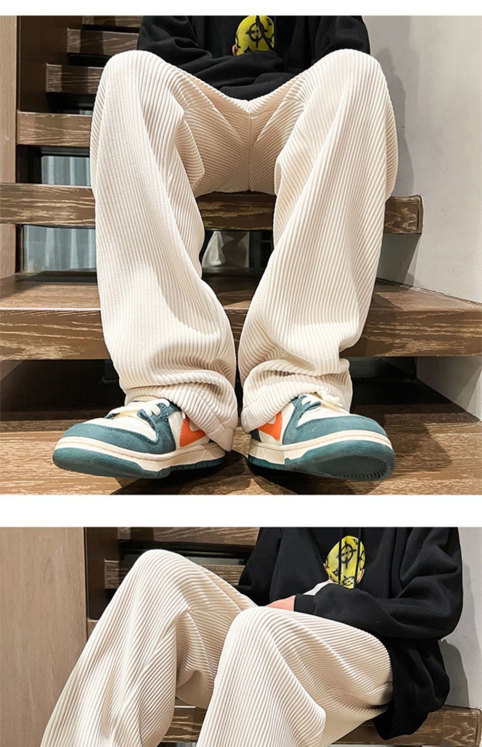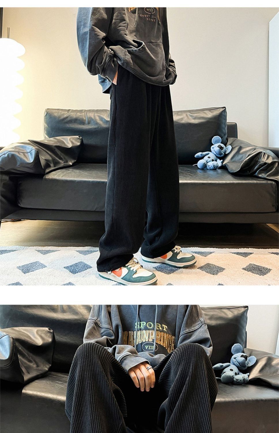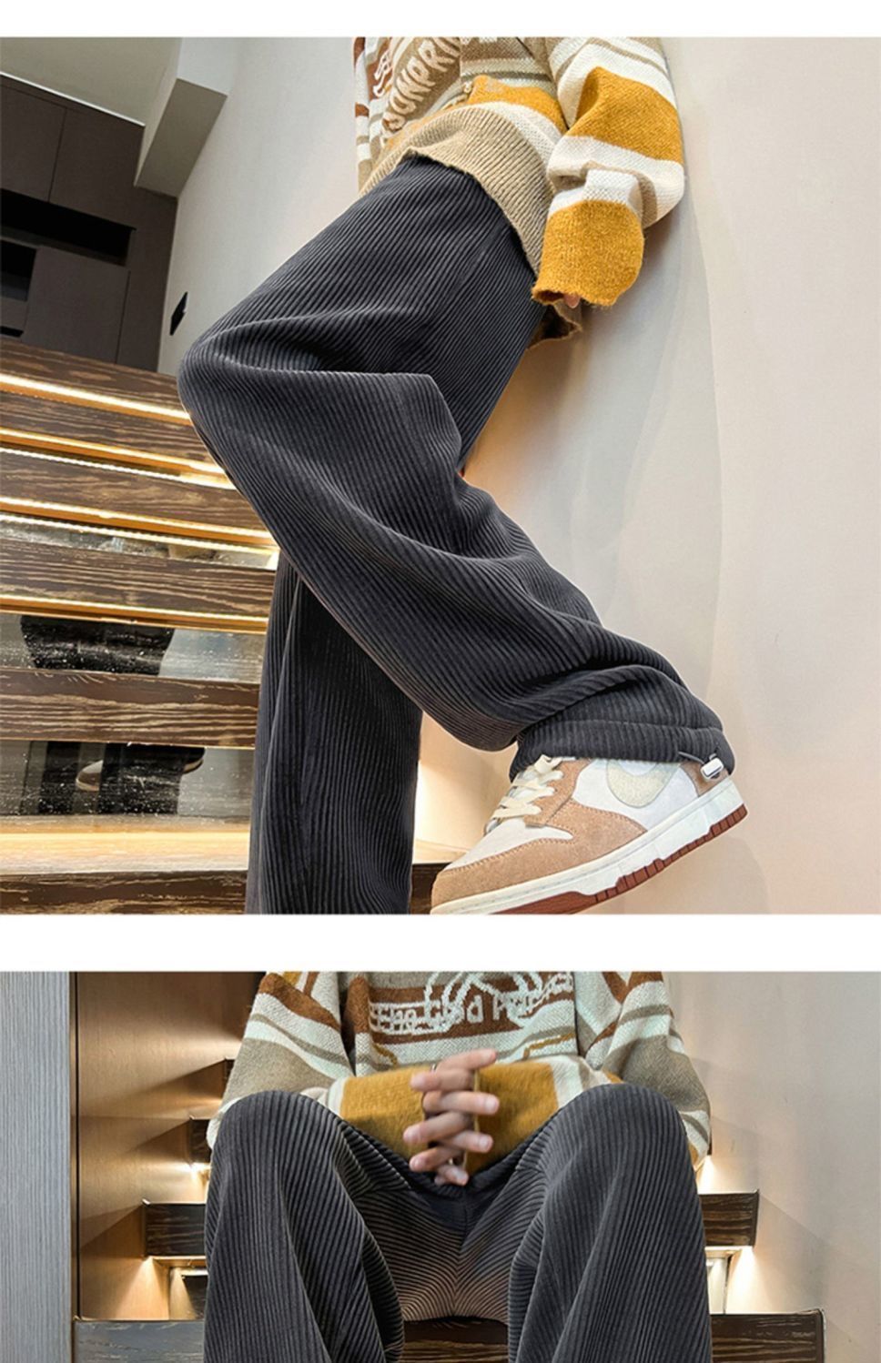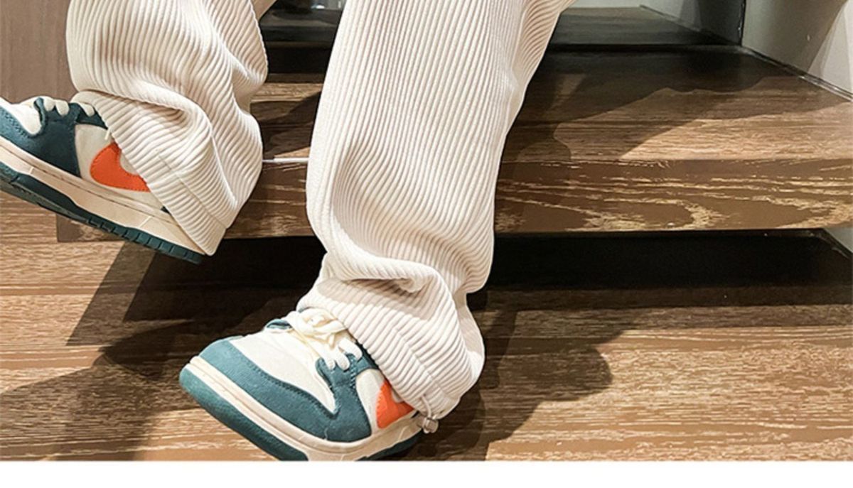 灯芯绒裤子男秋冬季加绒加厚潮牌直筒宽松阔腿裤美式休闲运动裤男