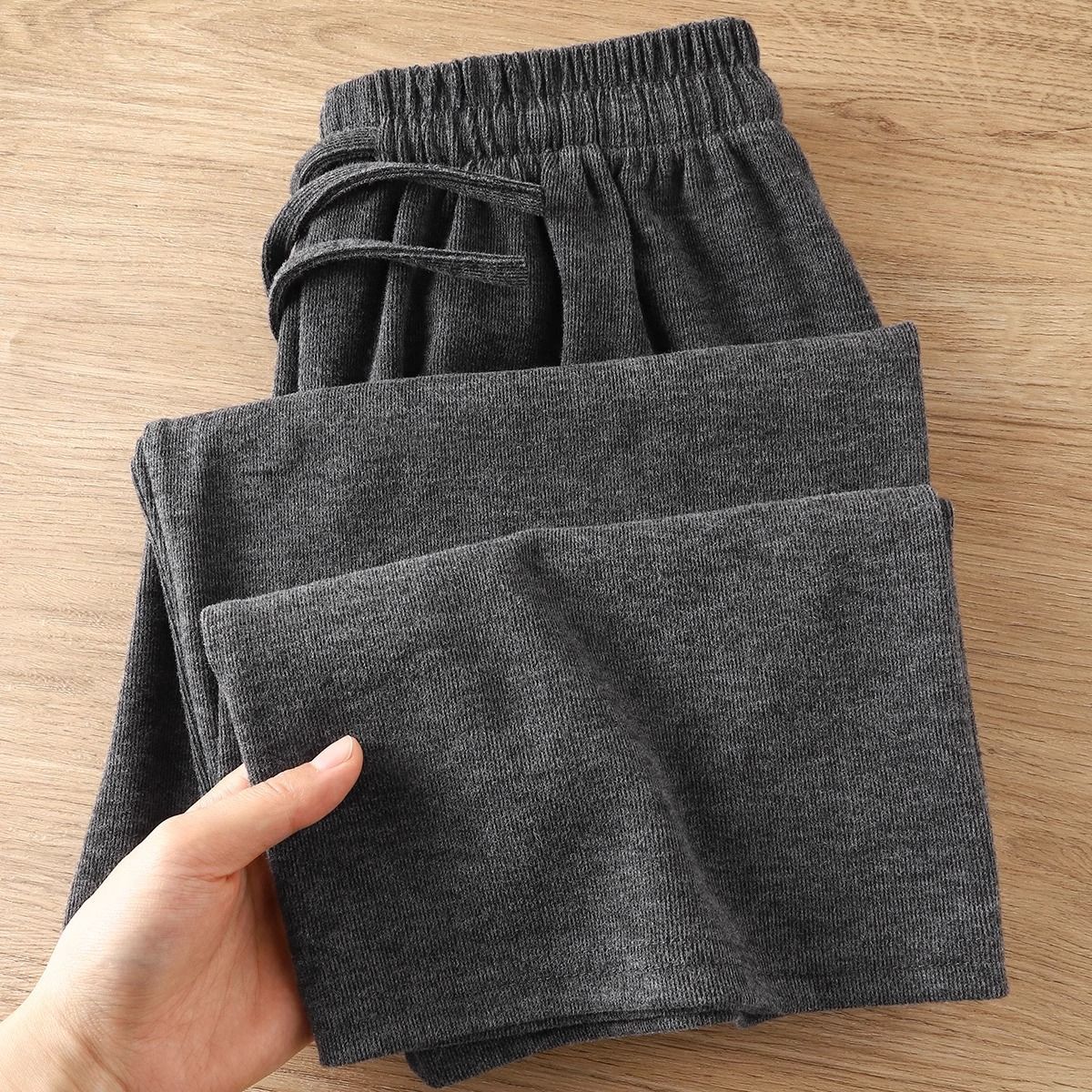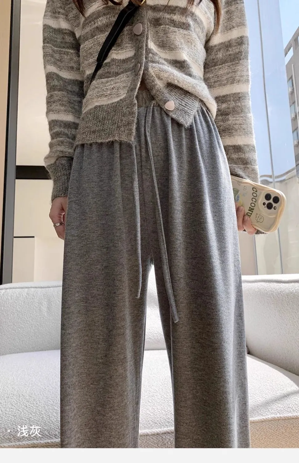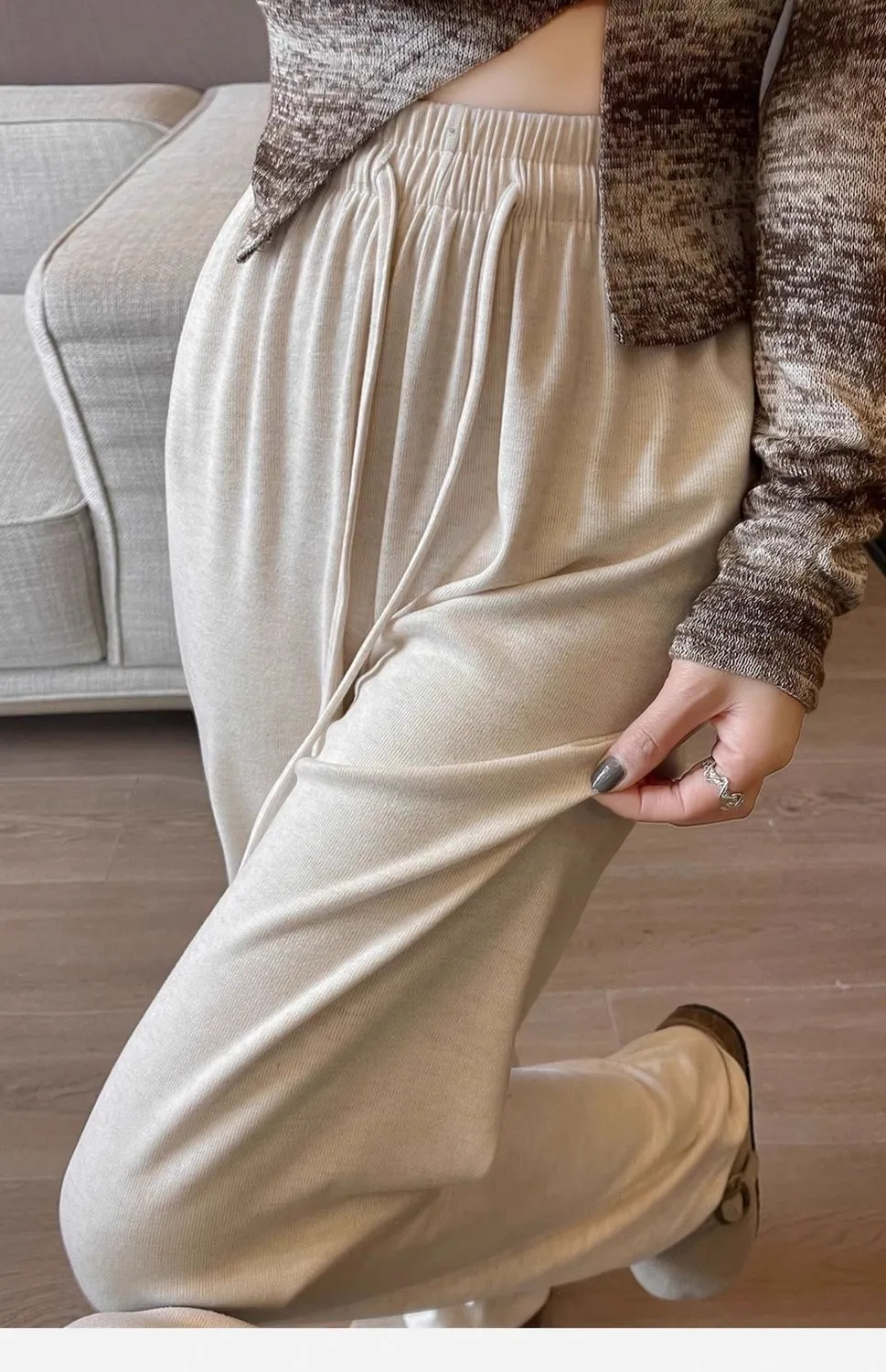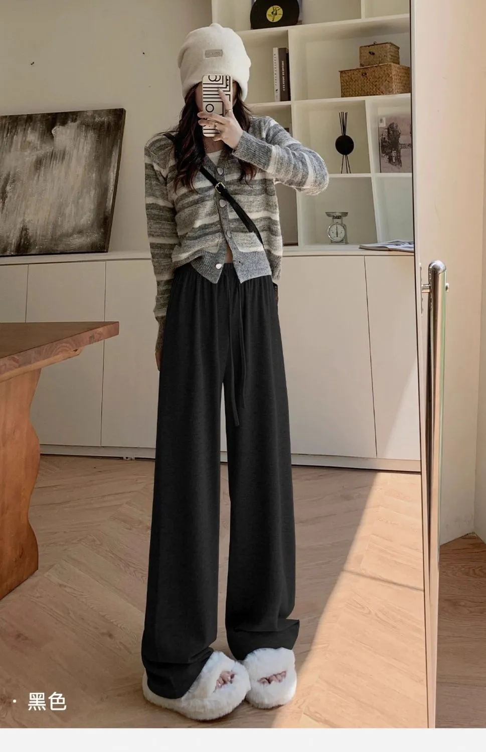 灰色糯米裤子女秋冬季加绒加厚高腰直筒宽松小个子休闲窄版阔腿裤