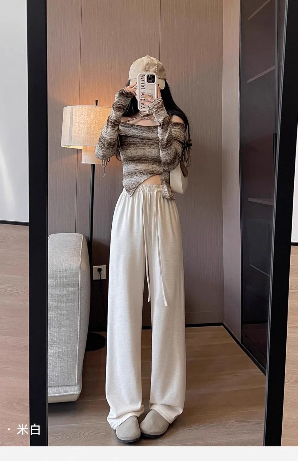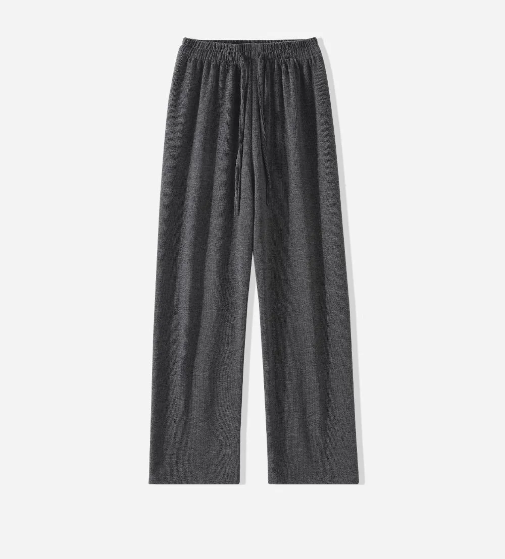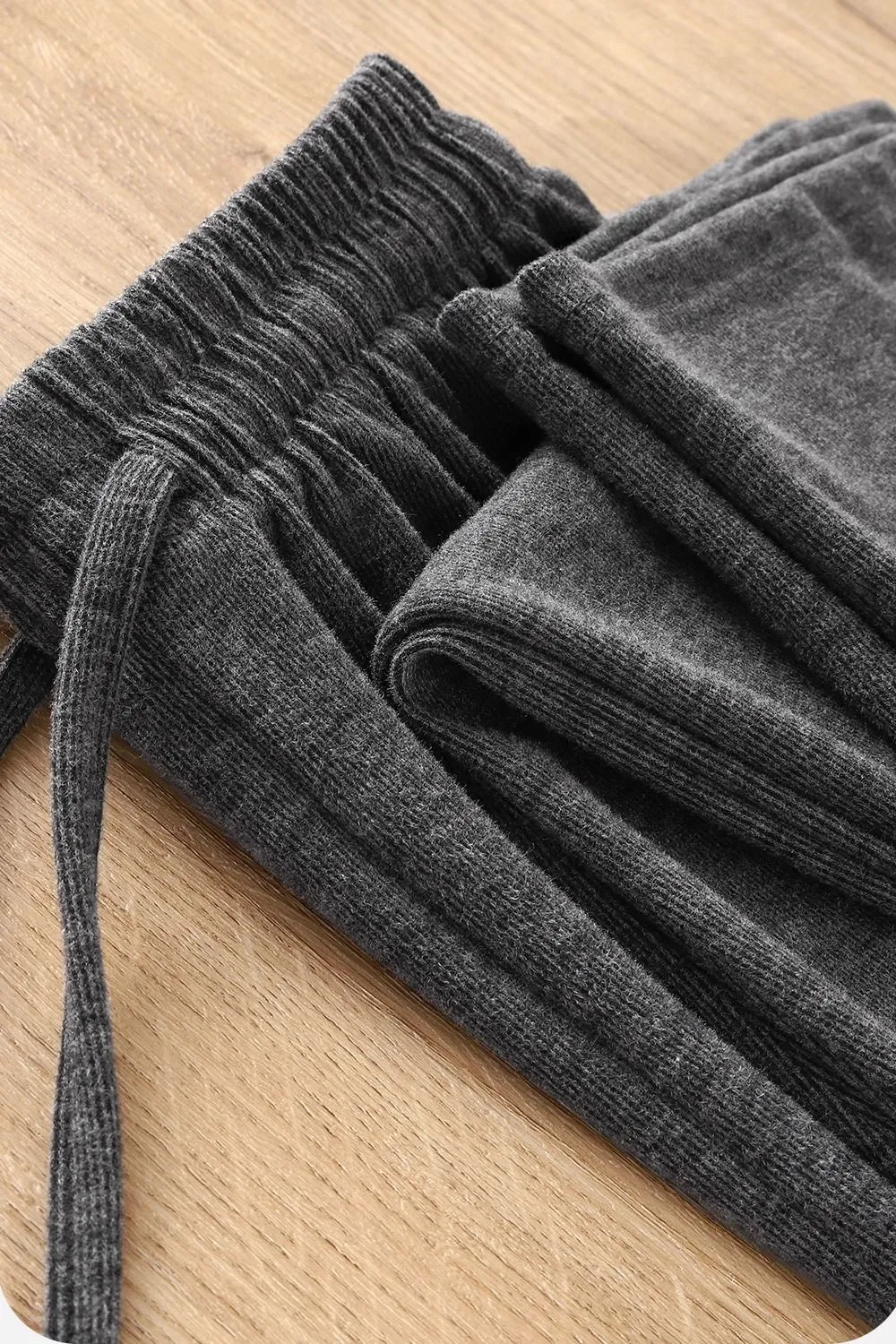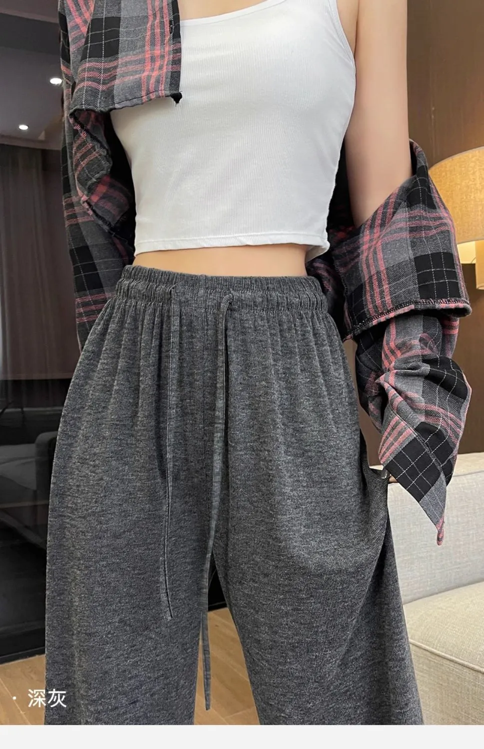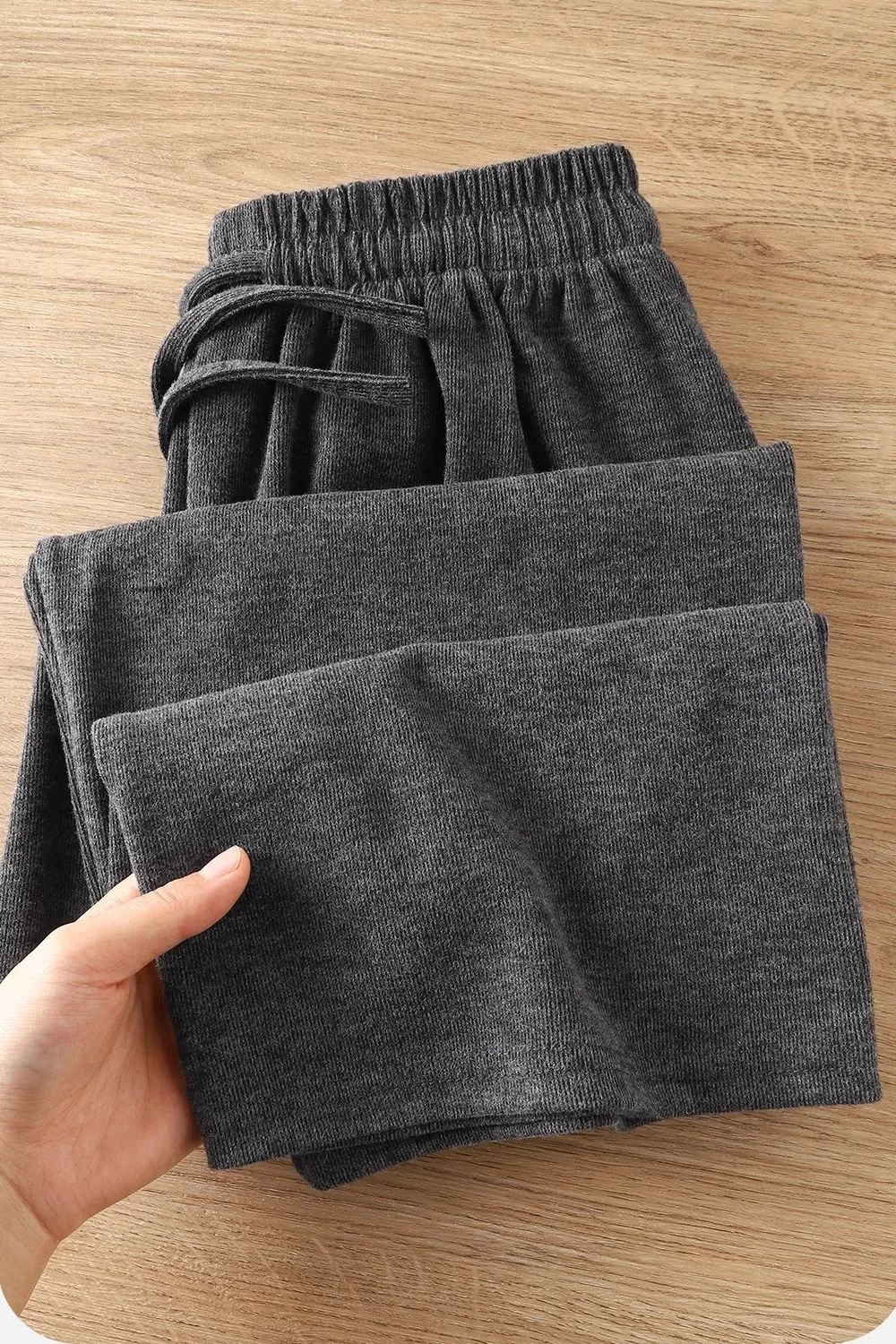 灰色糯米裤子女秋冬季加绒加厚高腰直筒宽松小个子休闲窄版阔腿裤