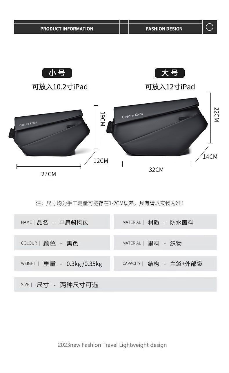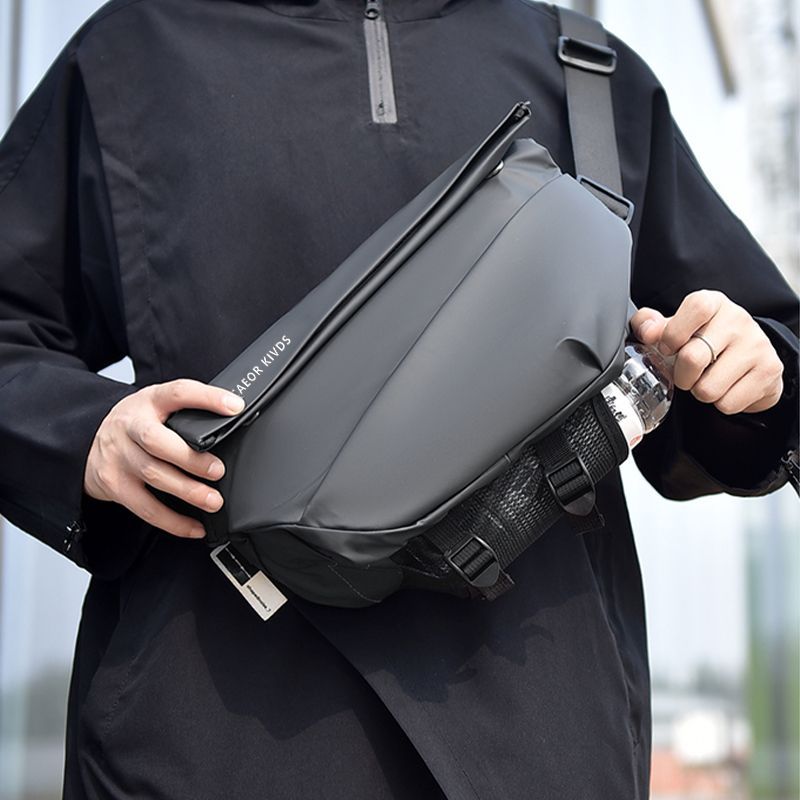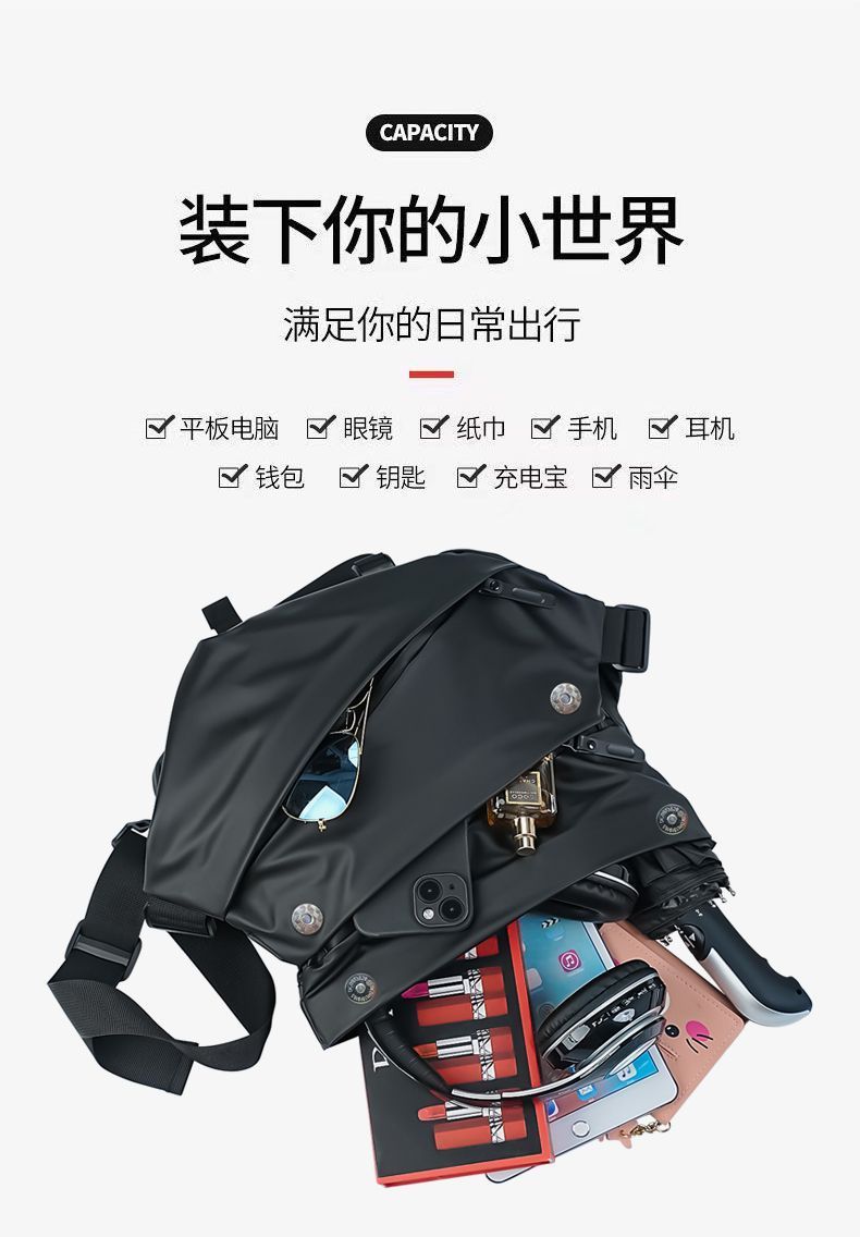 日系潮牌斜挎包男士包包机能邮差骑行背包大容量单肩运动胸包男包