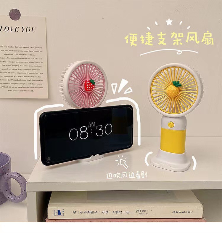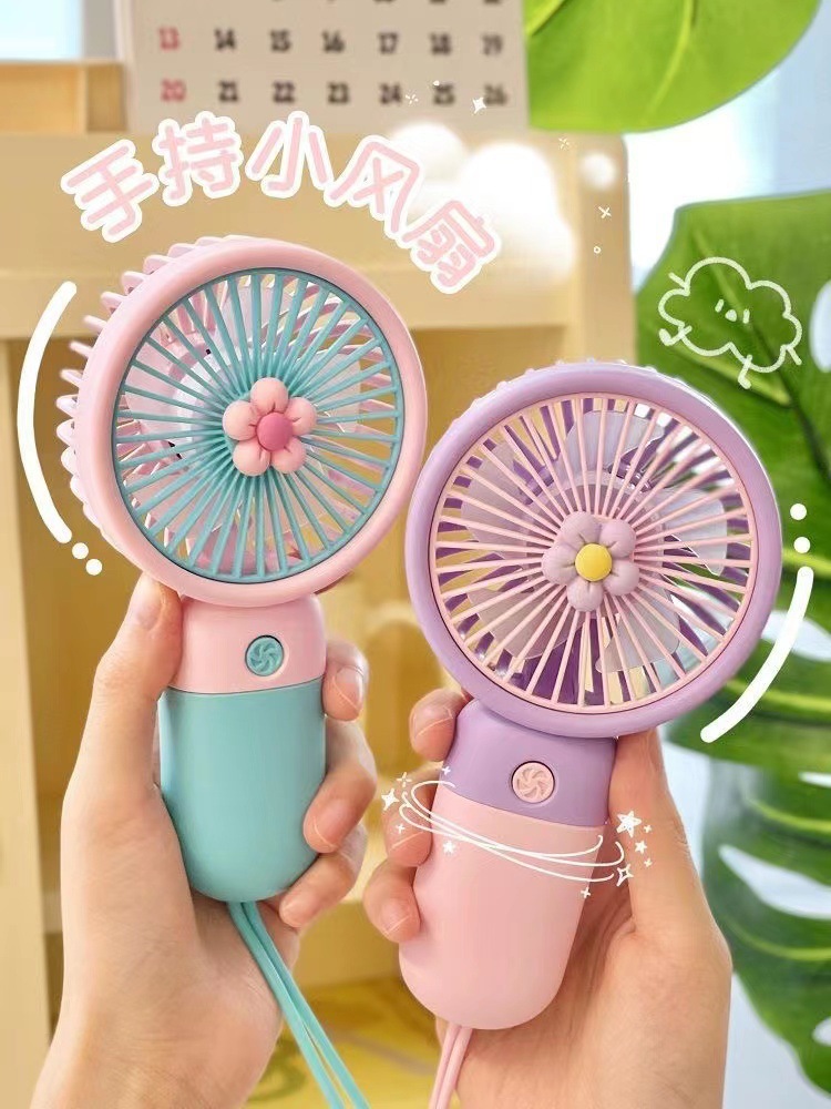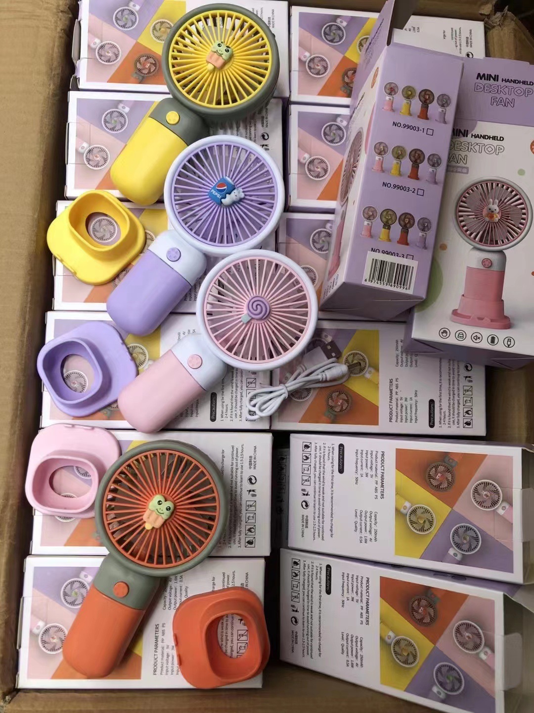 跨境手持小风扇usb充电学生迷你可爱便携静音办公桌面带底座支架