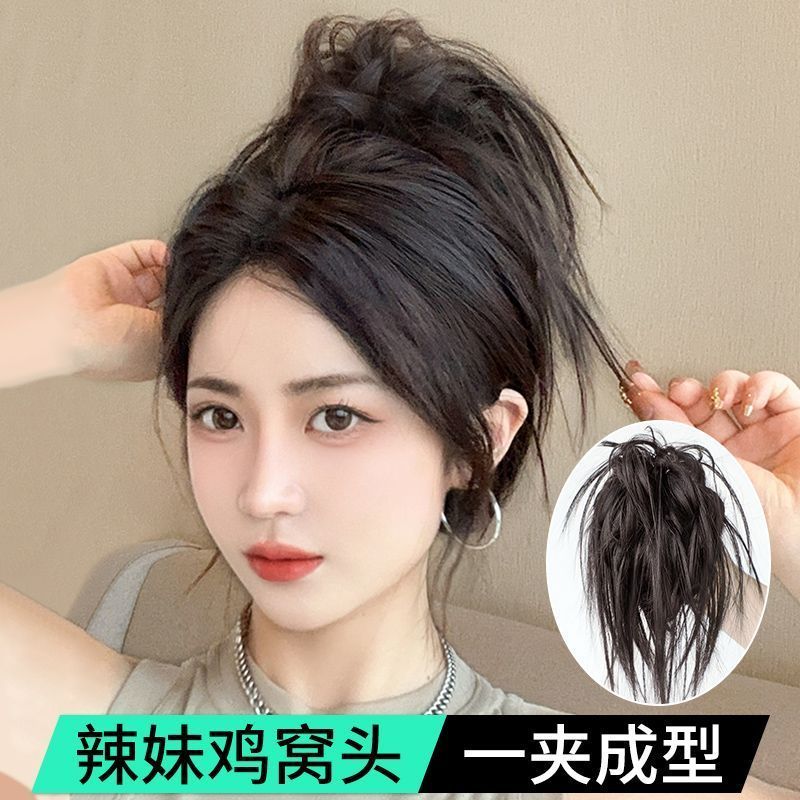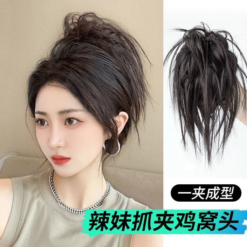 鸡窝头抓夹蓬松丸子头盘发发包辣妹毽子头鸡毛发夹抓夹丸子头发圈
