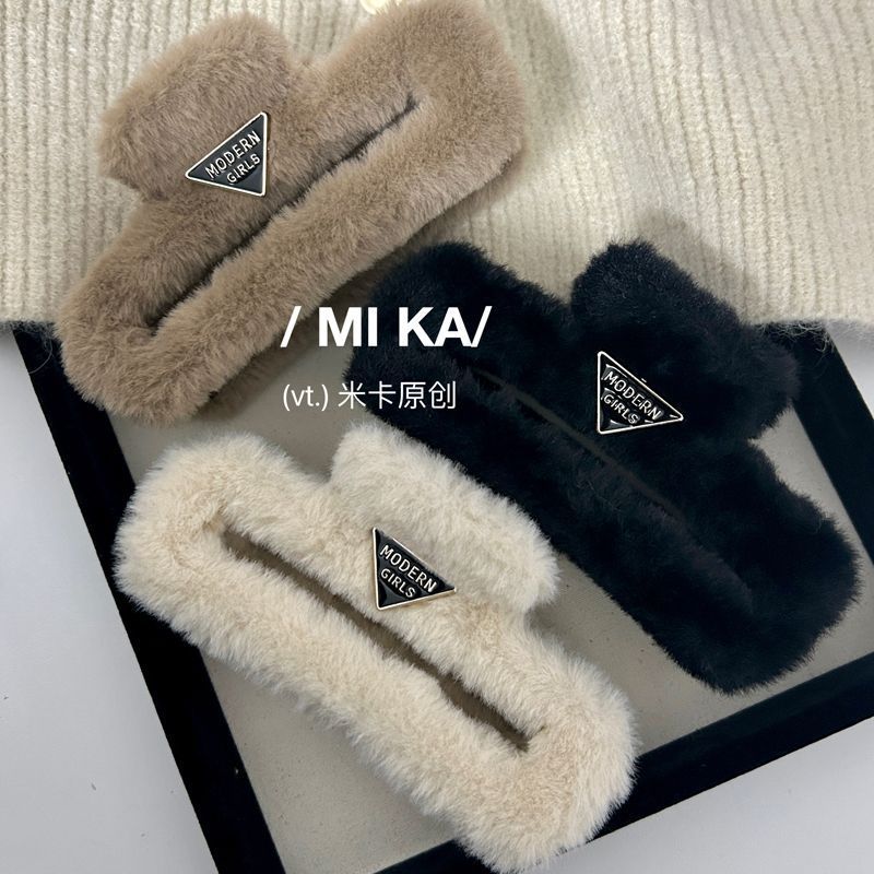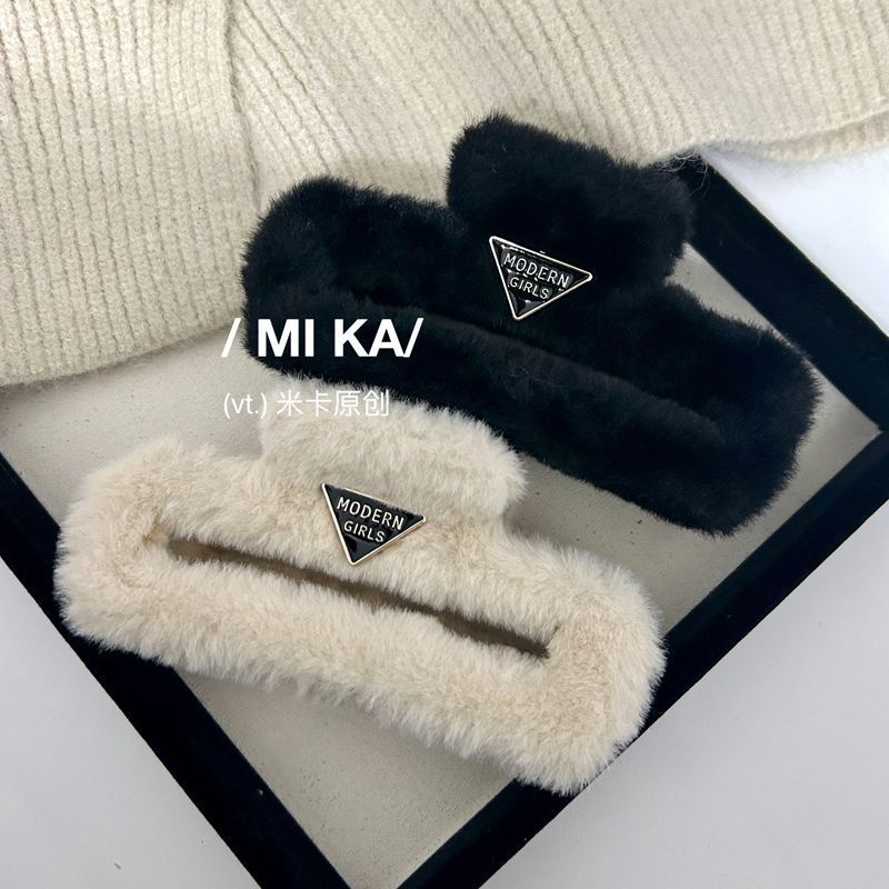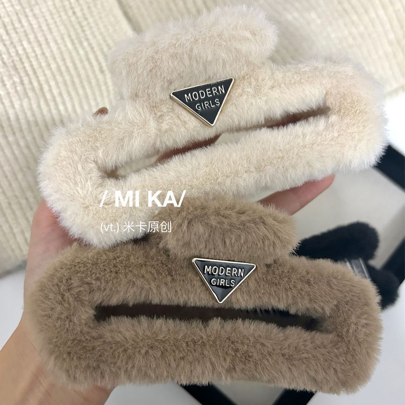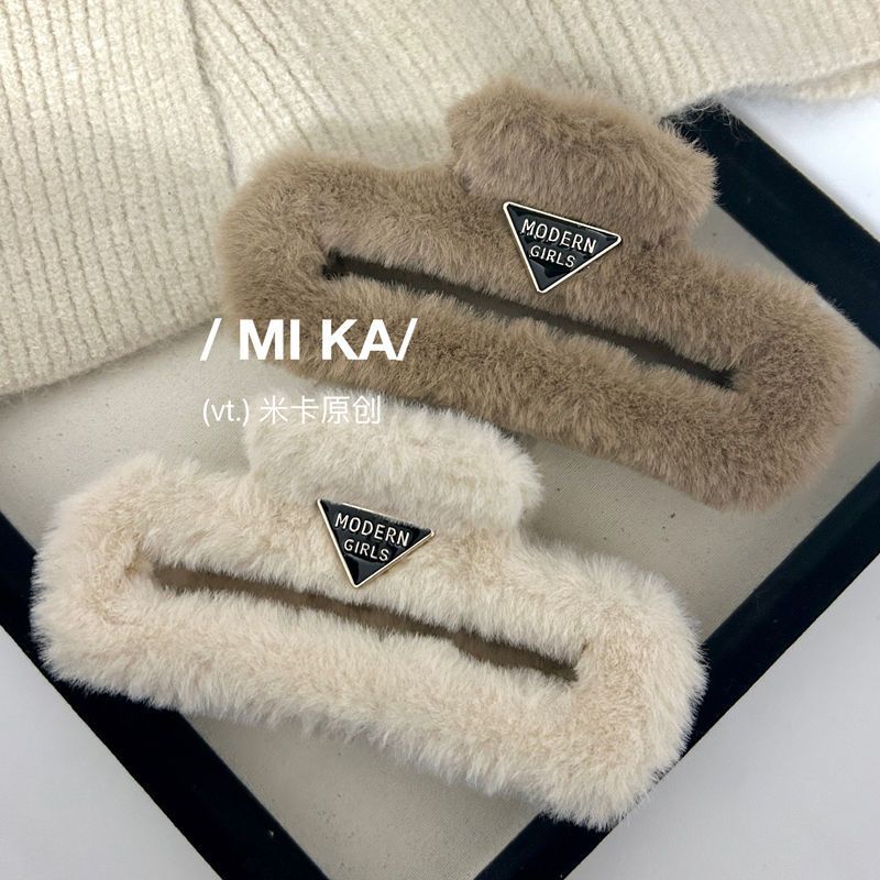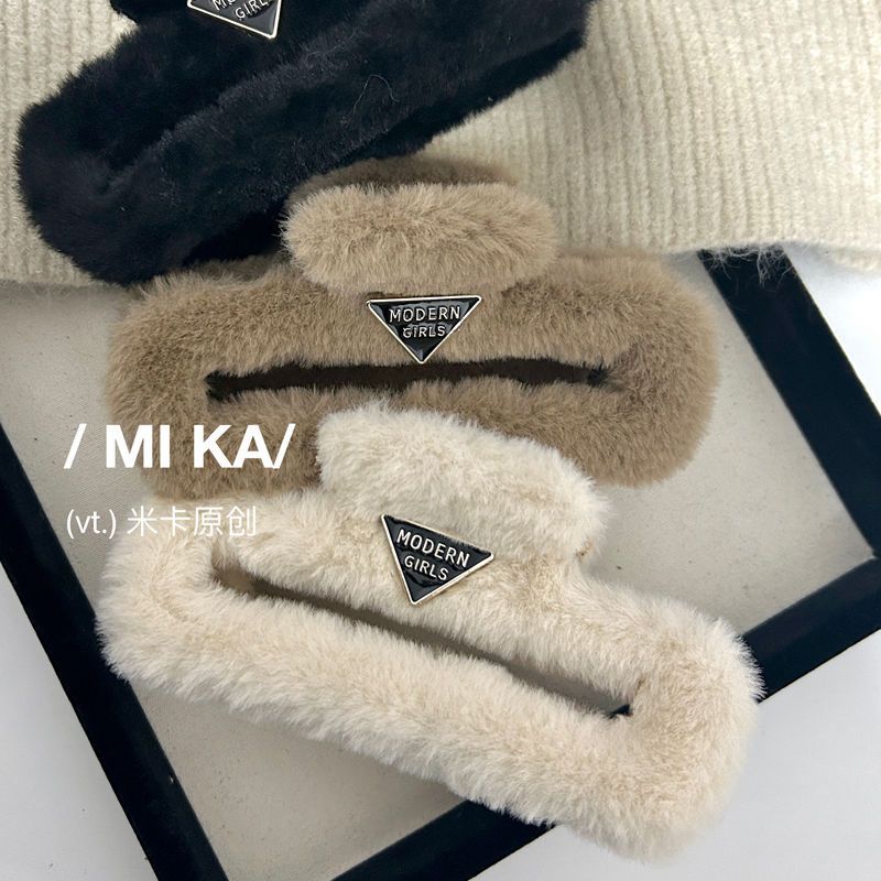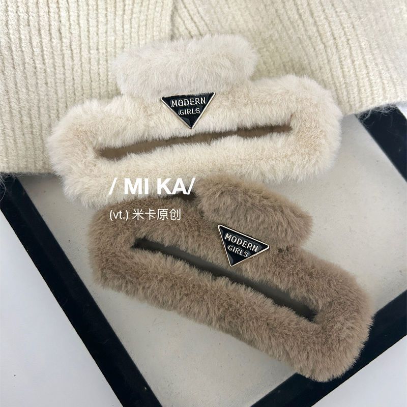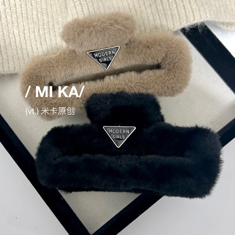14cm秋冬毛绒方形超大号韩版抓夹女新款后脑勺发抓发夹气质鲨鱼夹