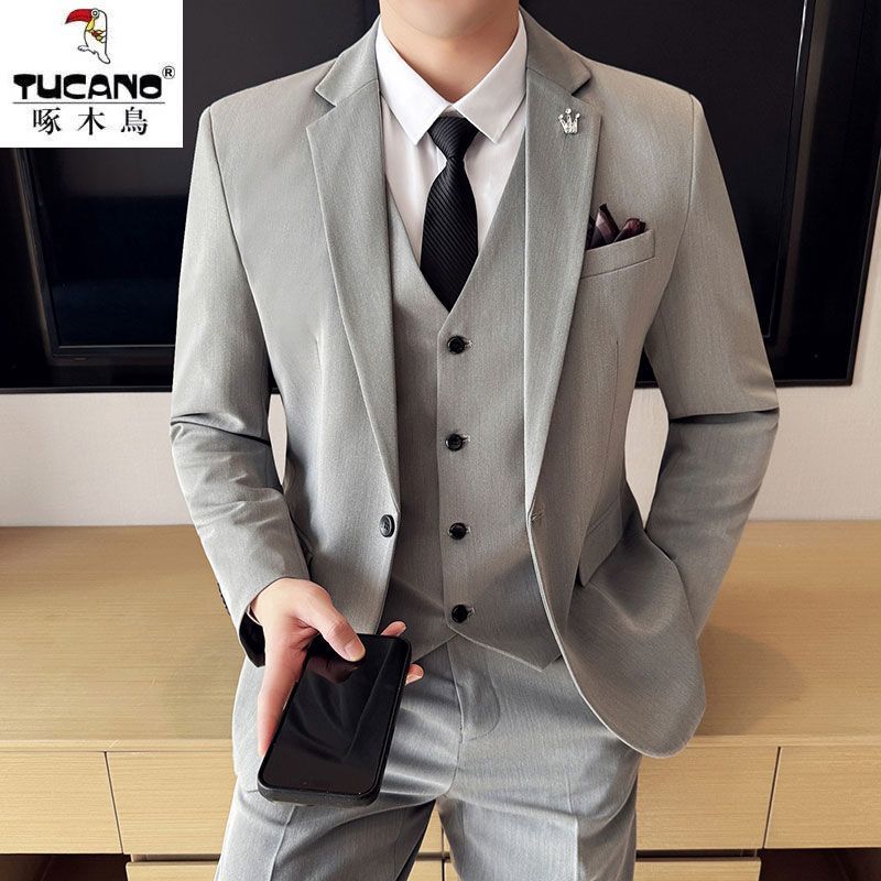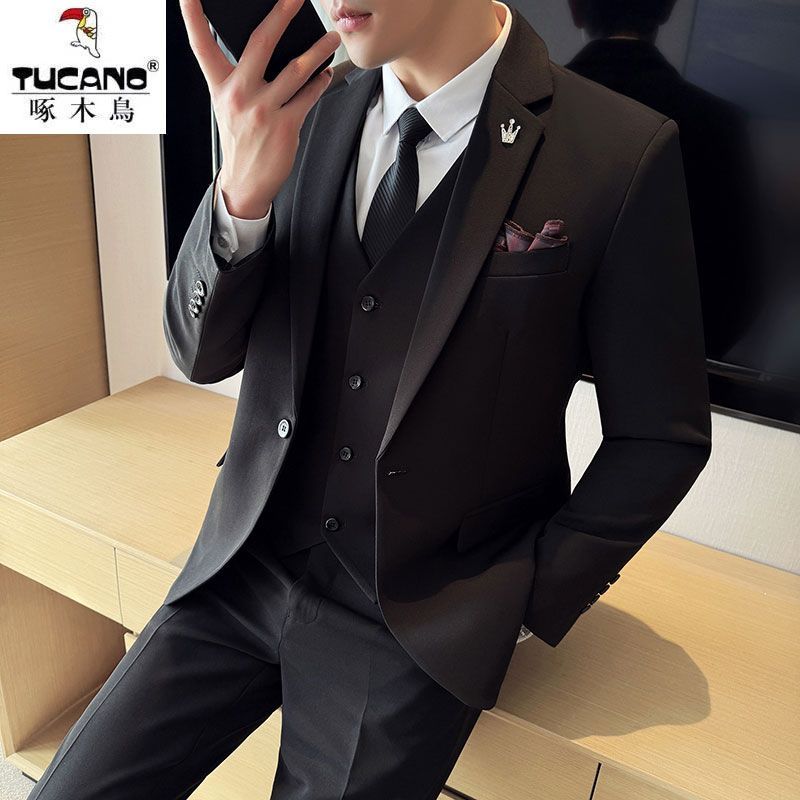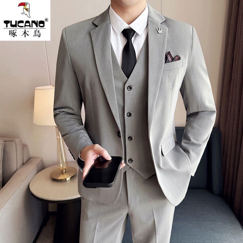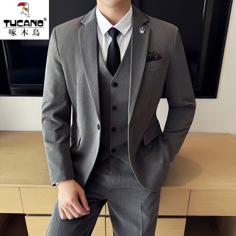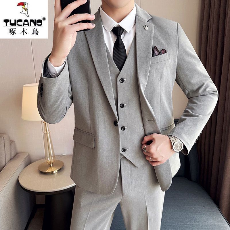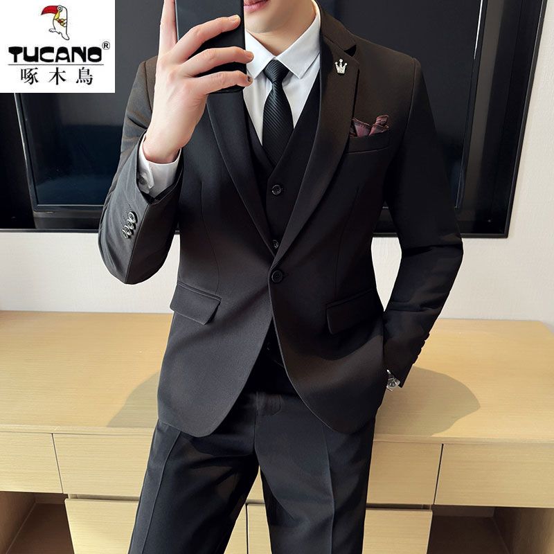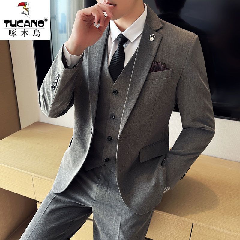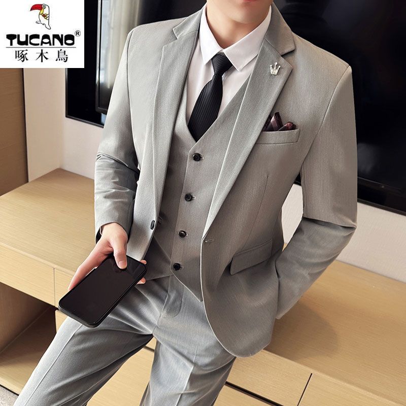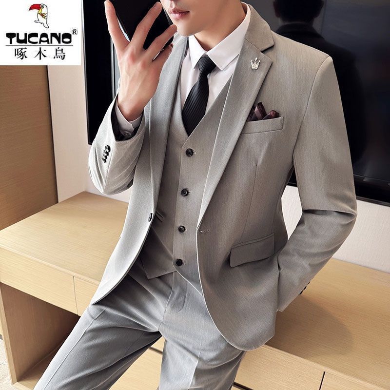 啄木鸟西服套装男士修身韩版新郎结婚礼服商务职业正装西装全套男