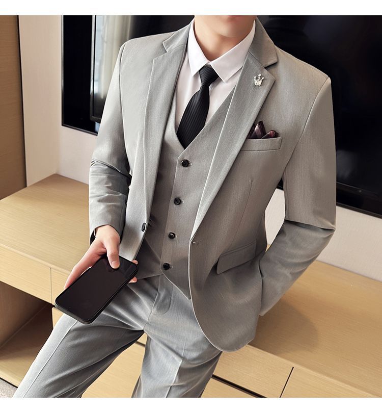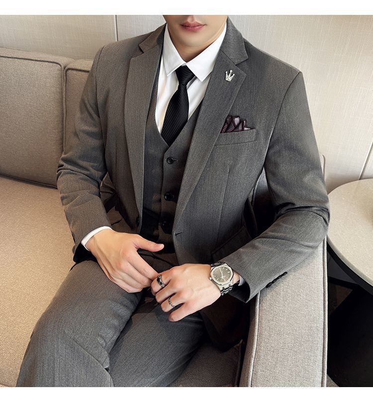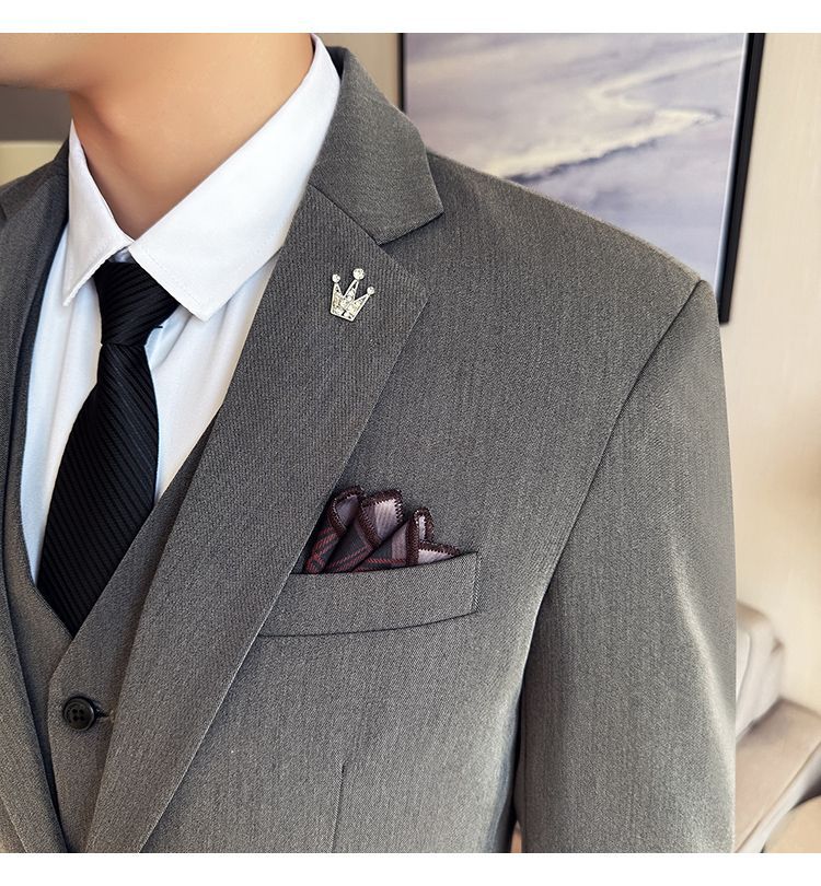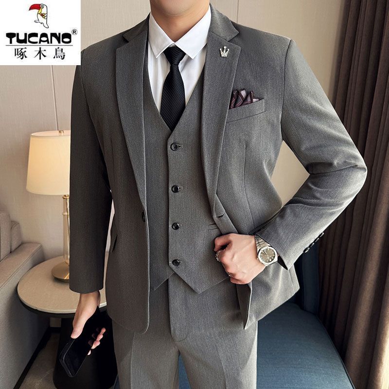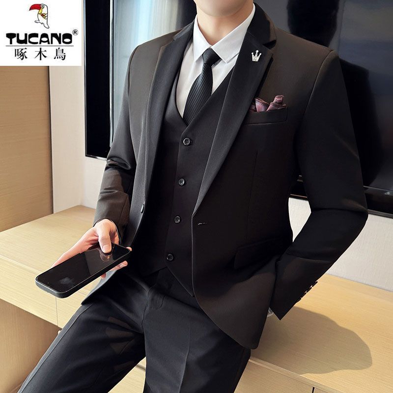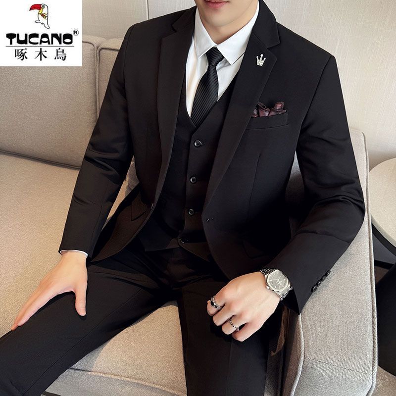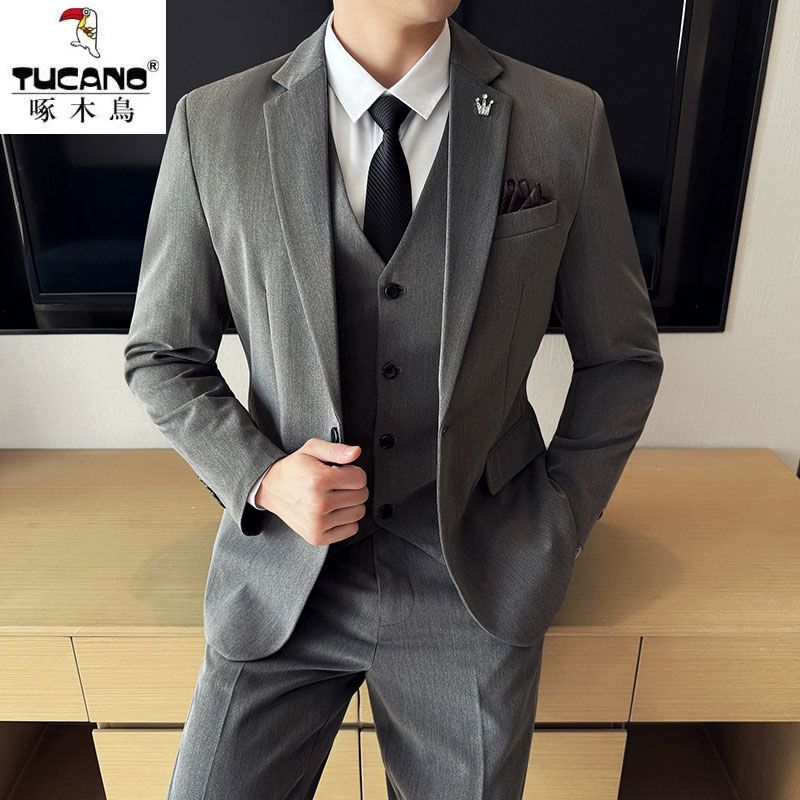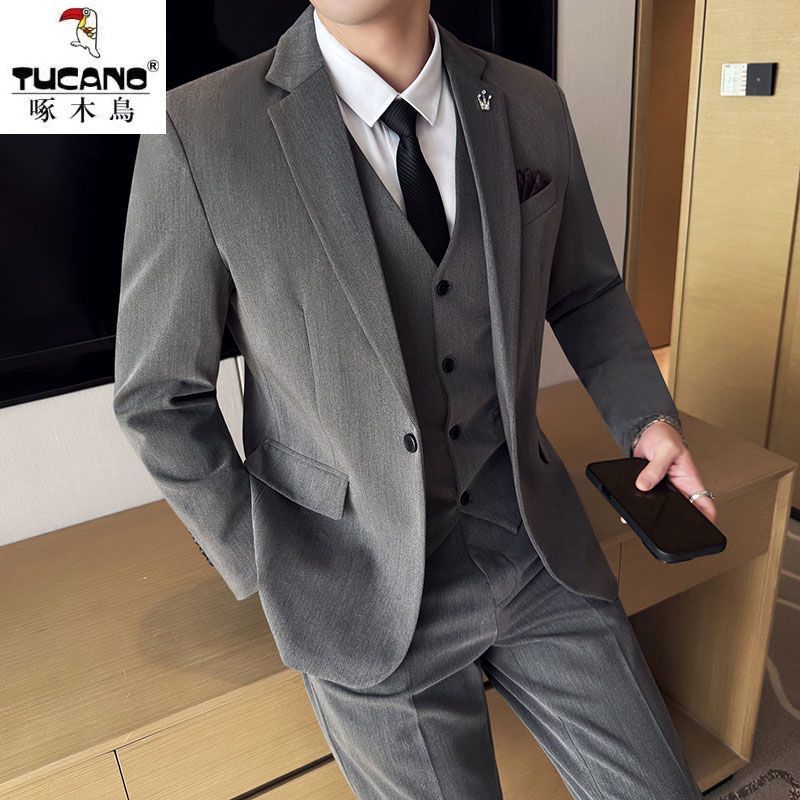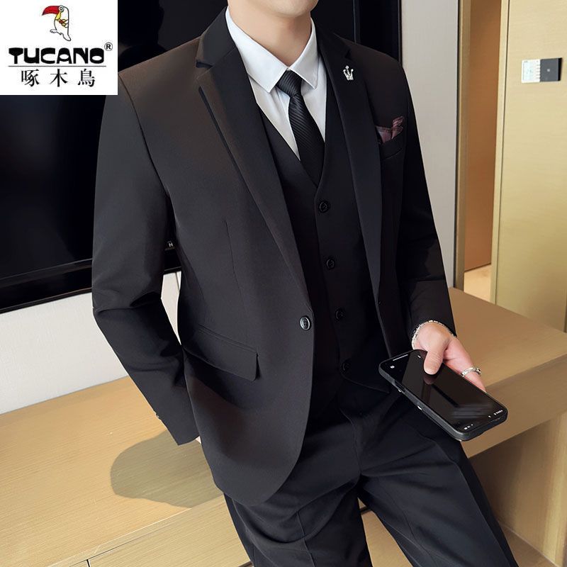 啄木鸟西服套装男士修身韩版新郎结婚礼服商务职业正装西装全套男