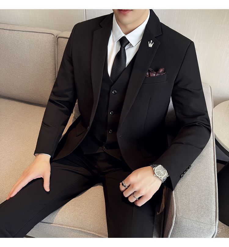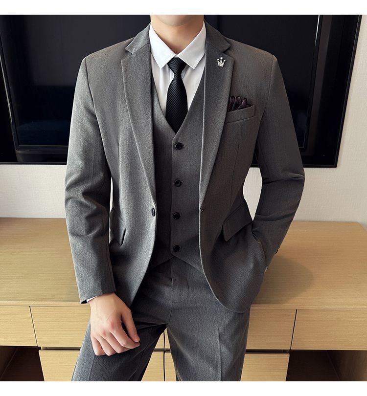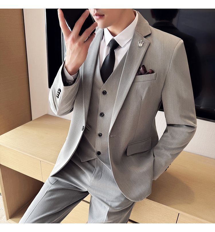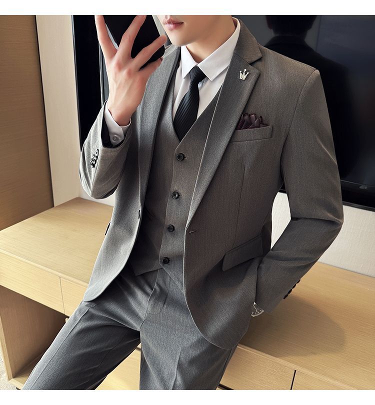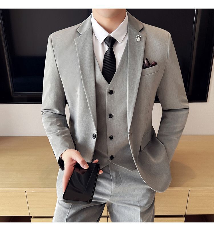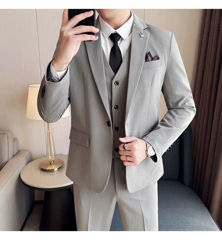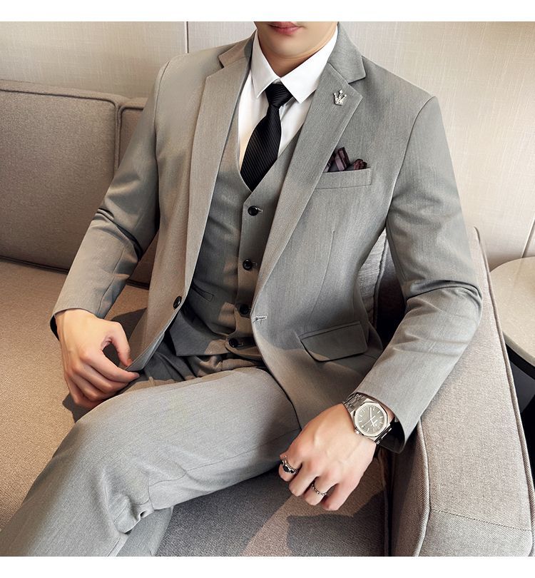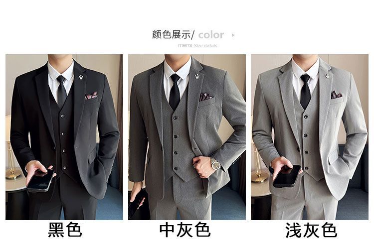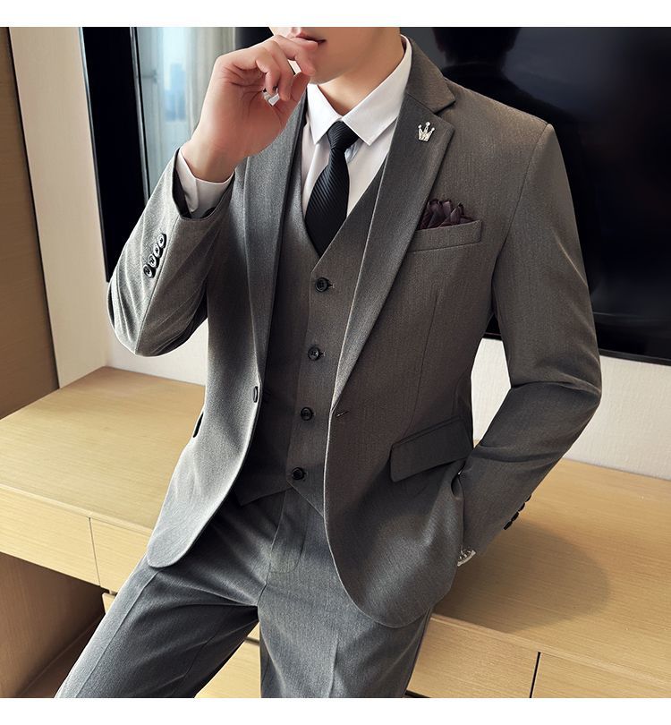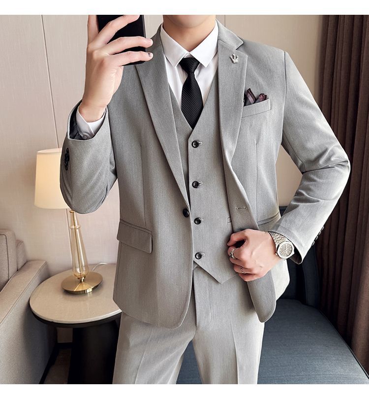 啄木鸟西服套装男士修身韩版新郎结婚礼服商务职业正装西装全套男