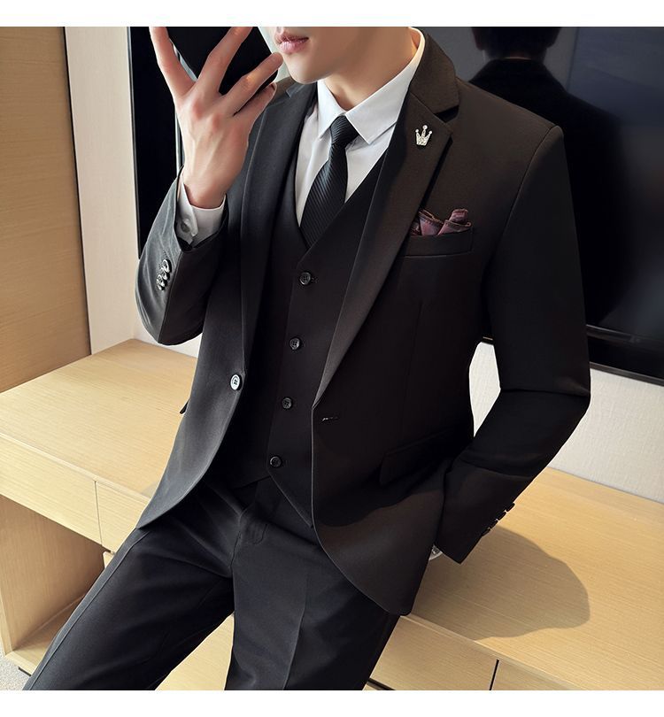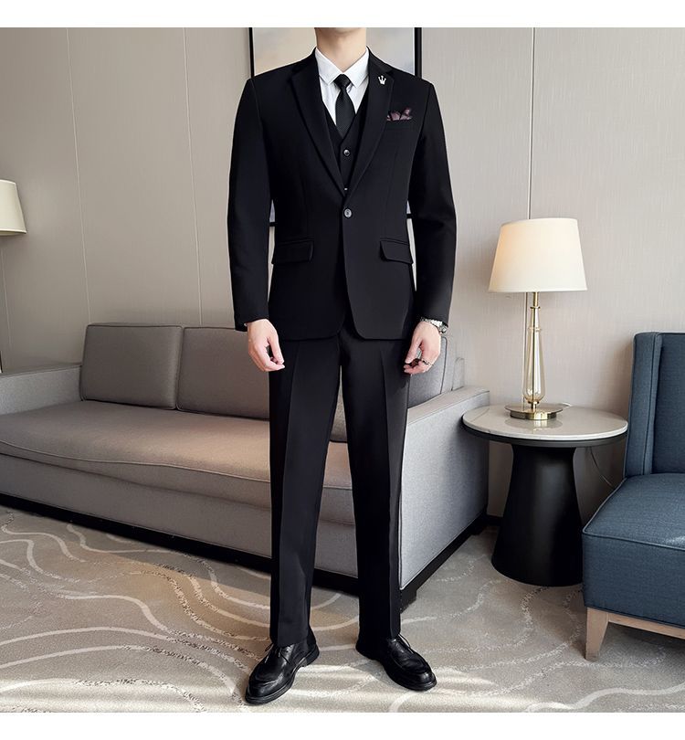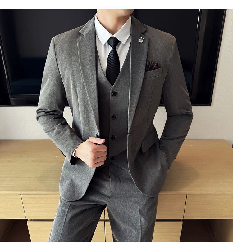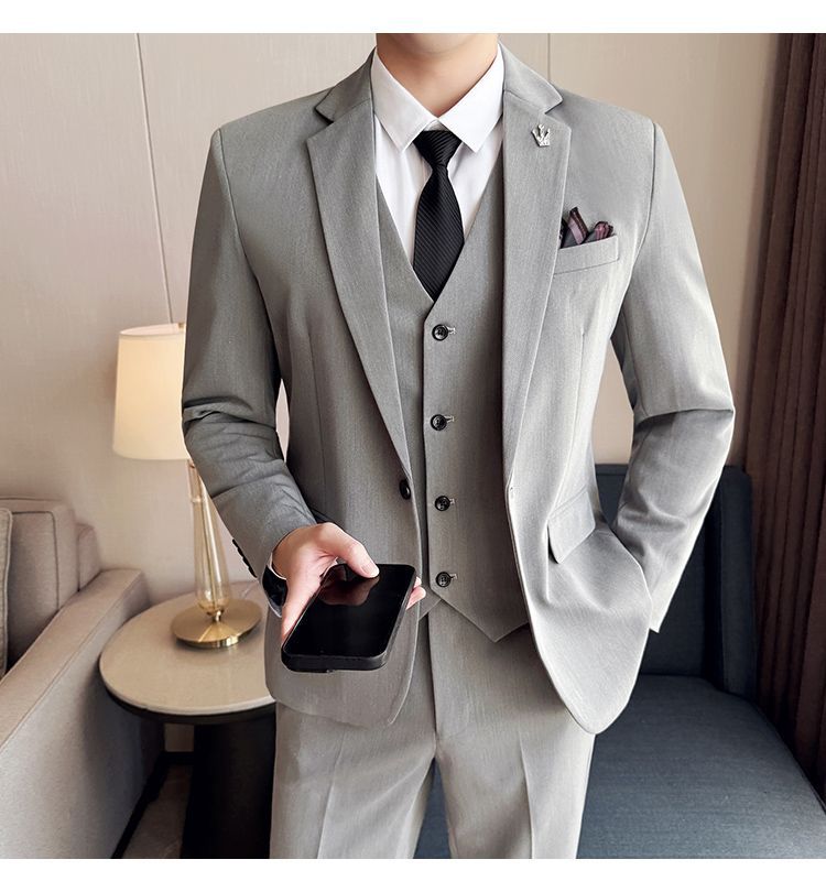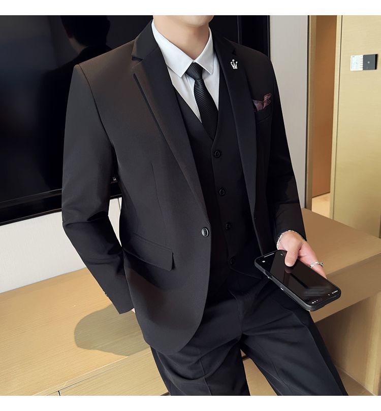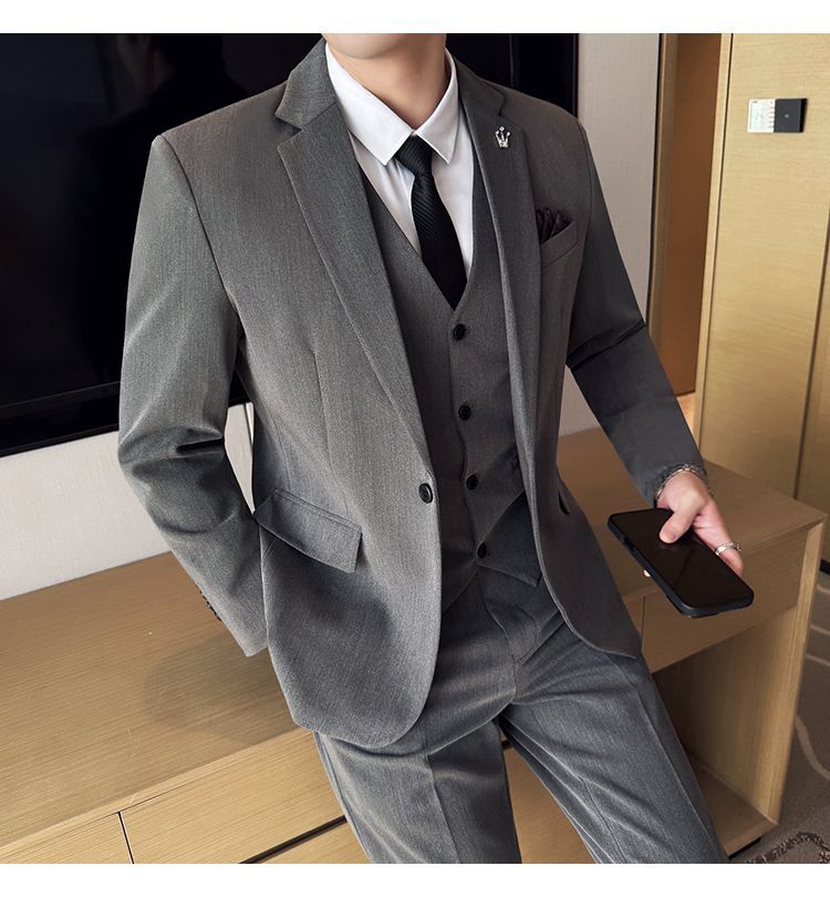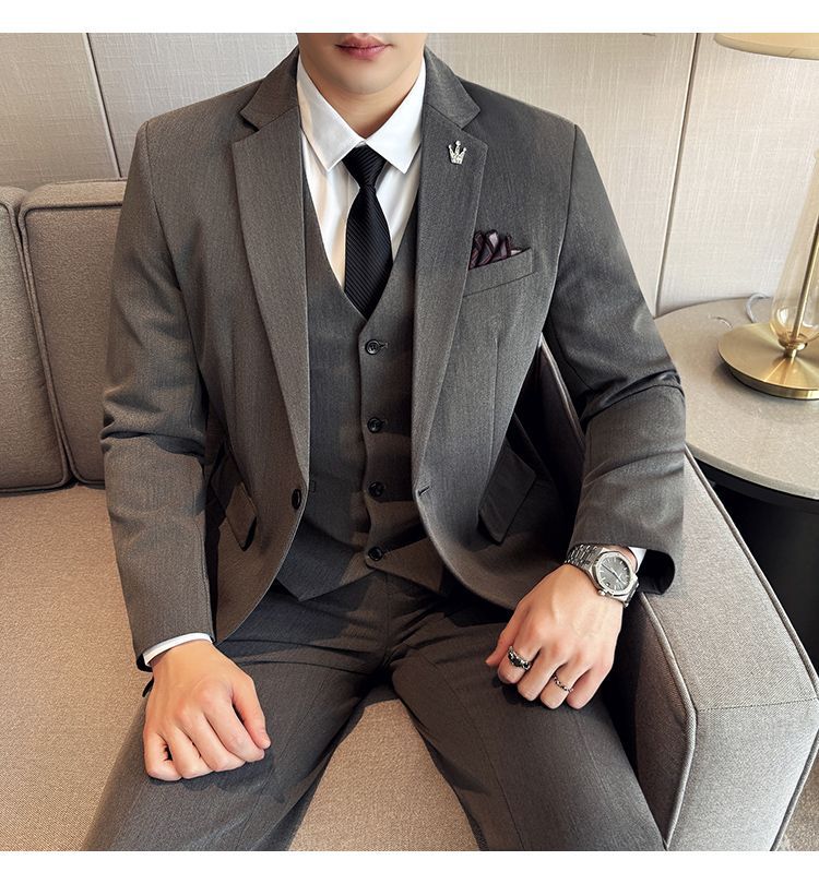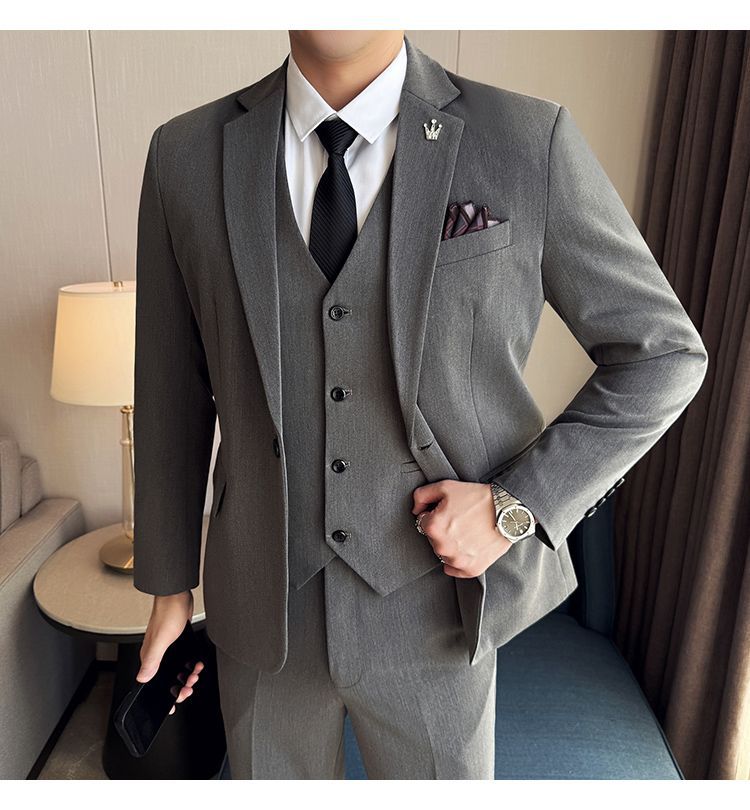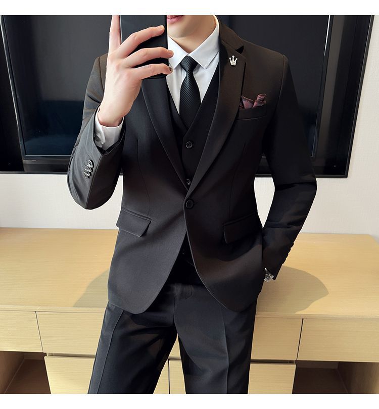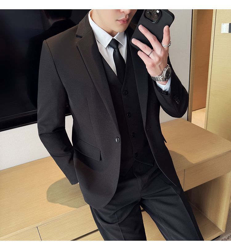 啄木鸟西服套装男士修身韩版新郎结婚礼服商务职业正装西装全套男