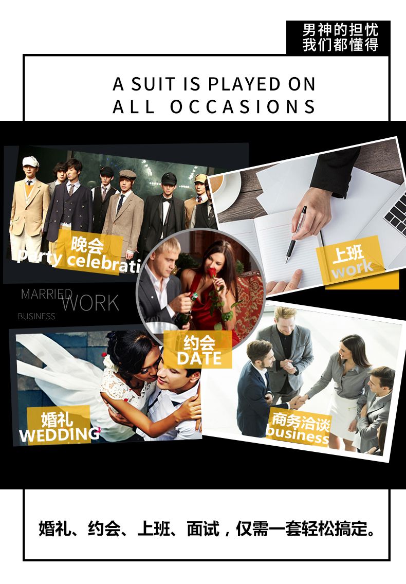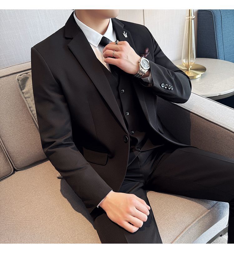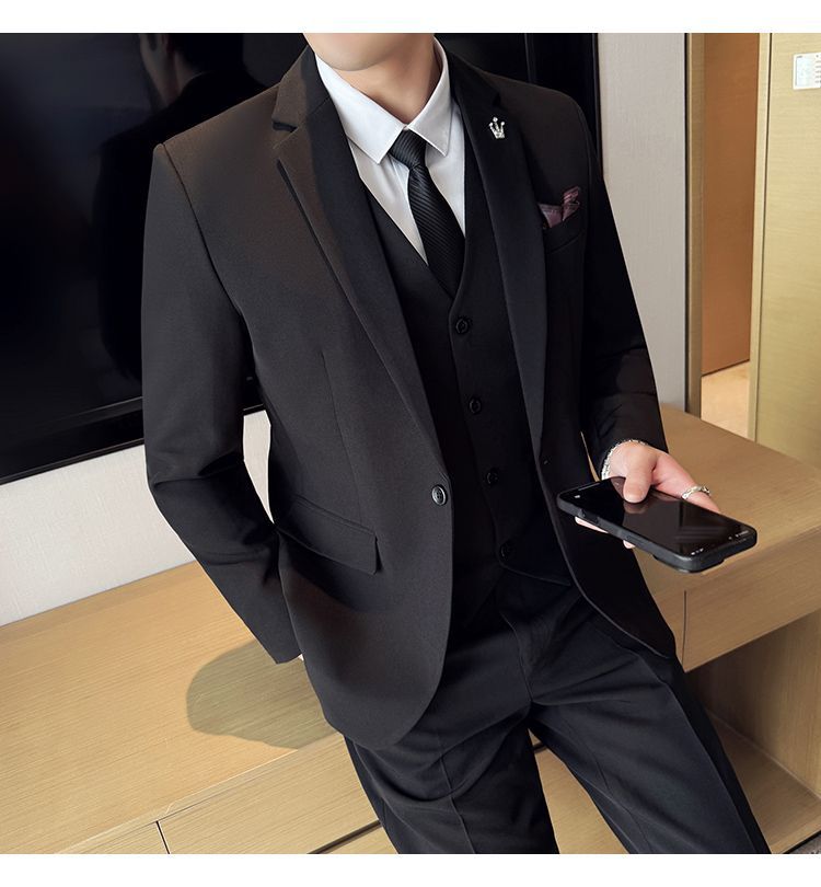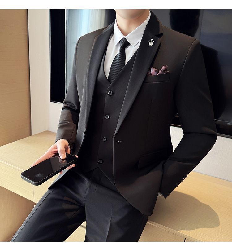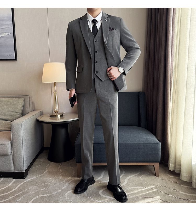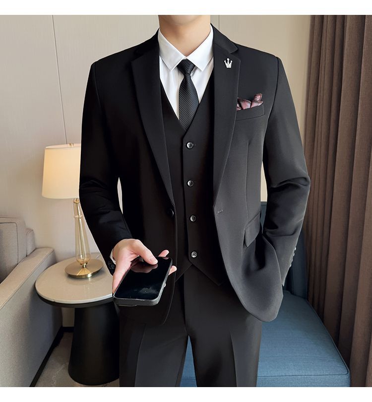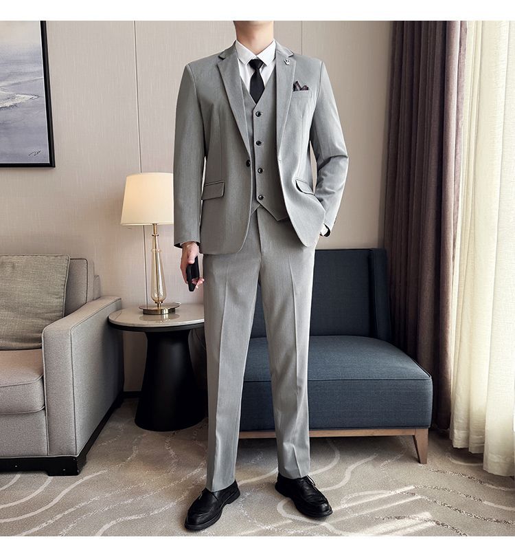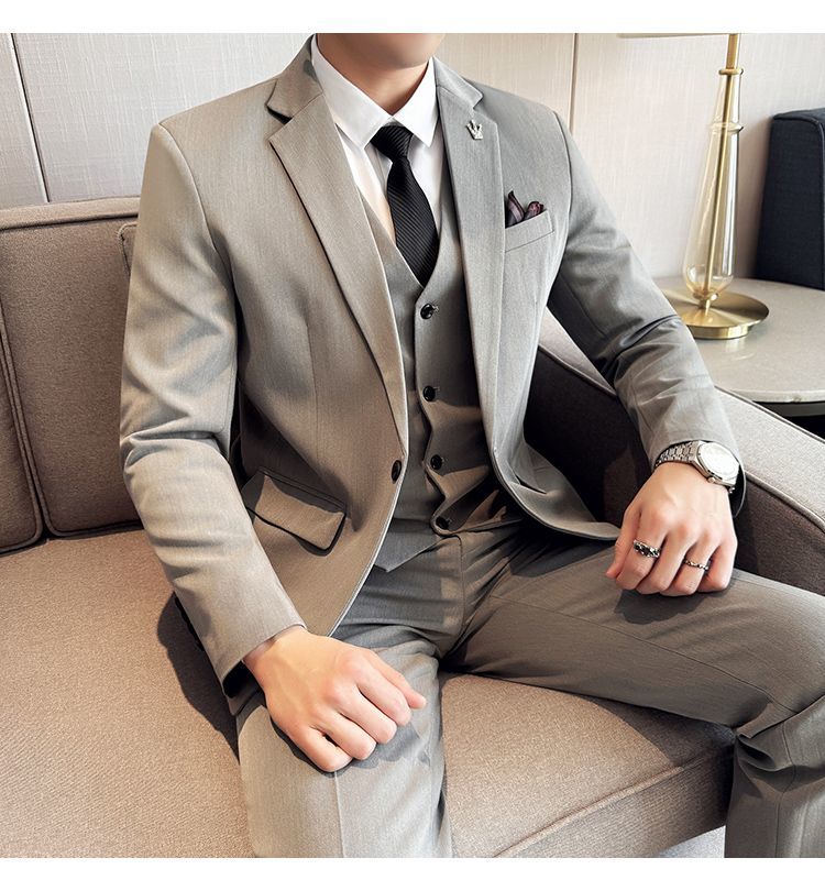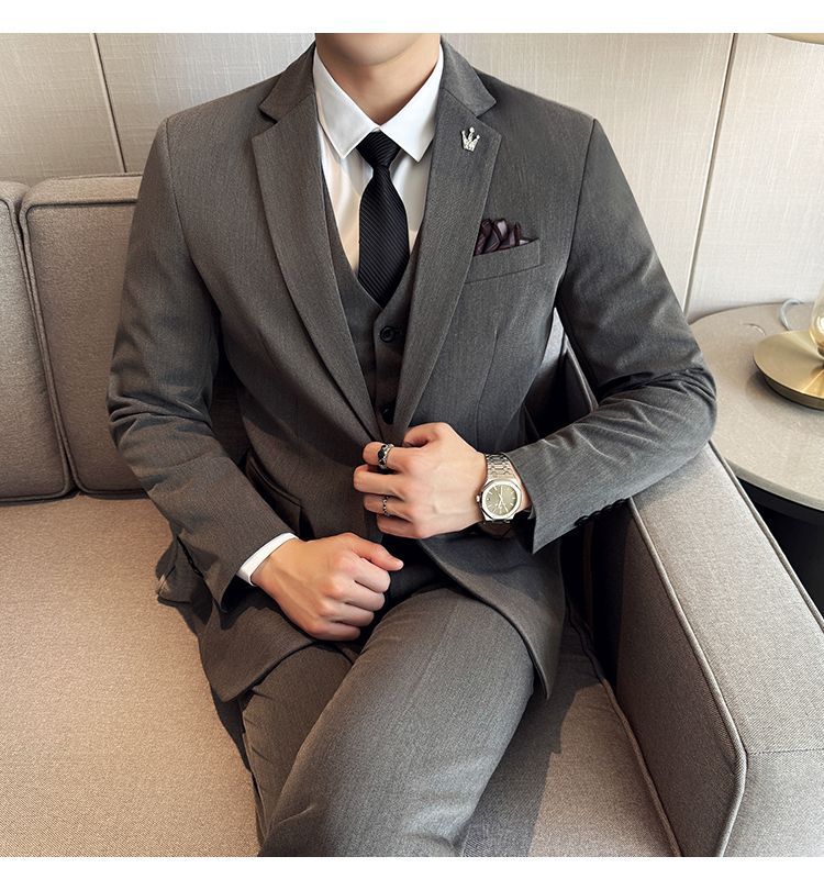 啄木鸟西服套装男士修身韩版新郎结婚礼服商务职业正装西装全套男