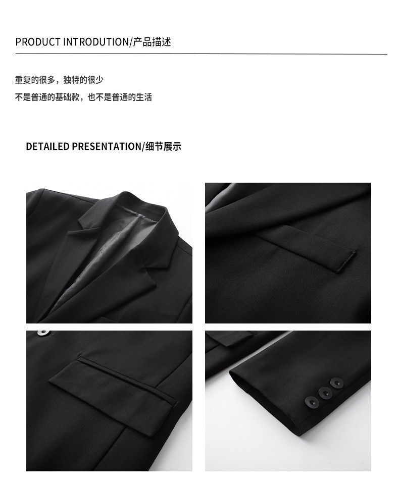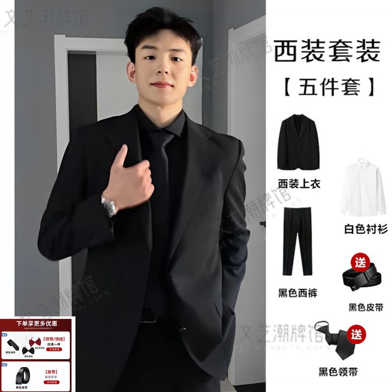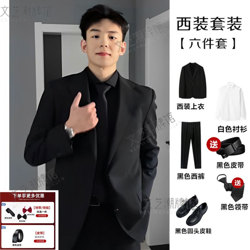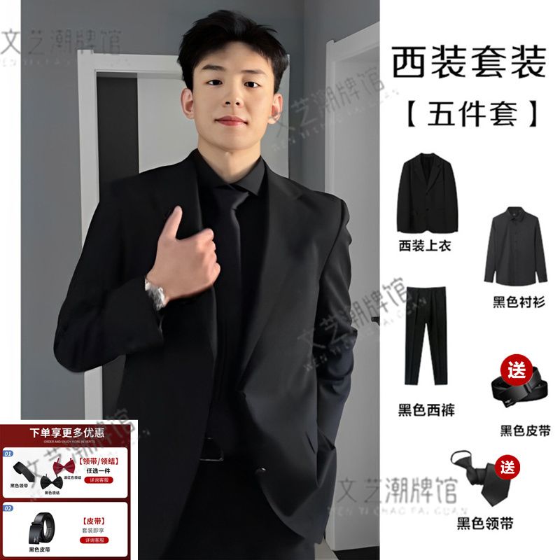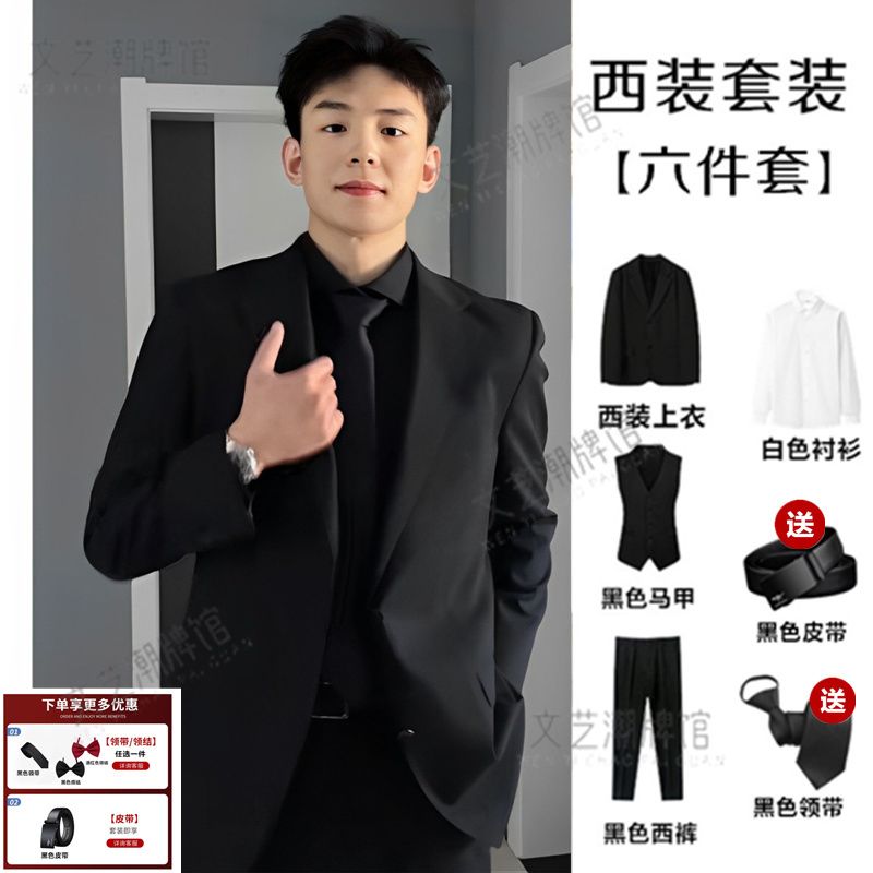 韩版修身黑色西服套装男士面试上班工作服商务帅气小西装一整套