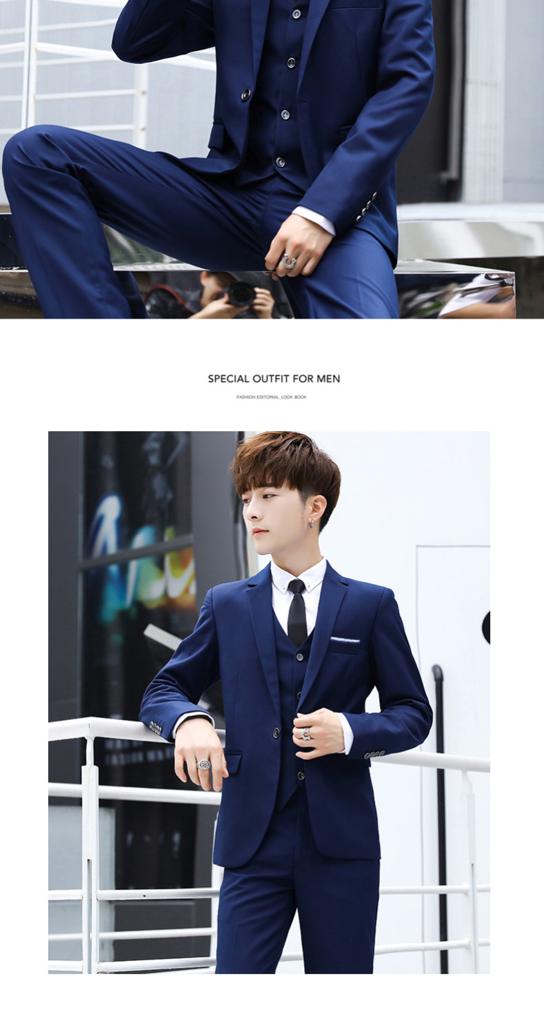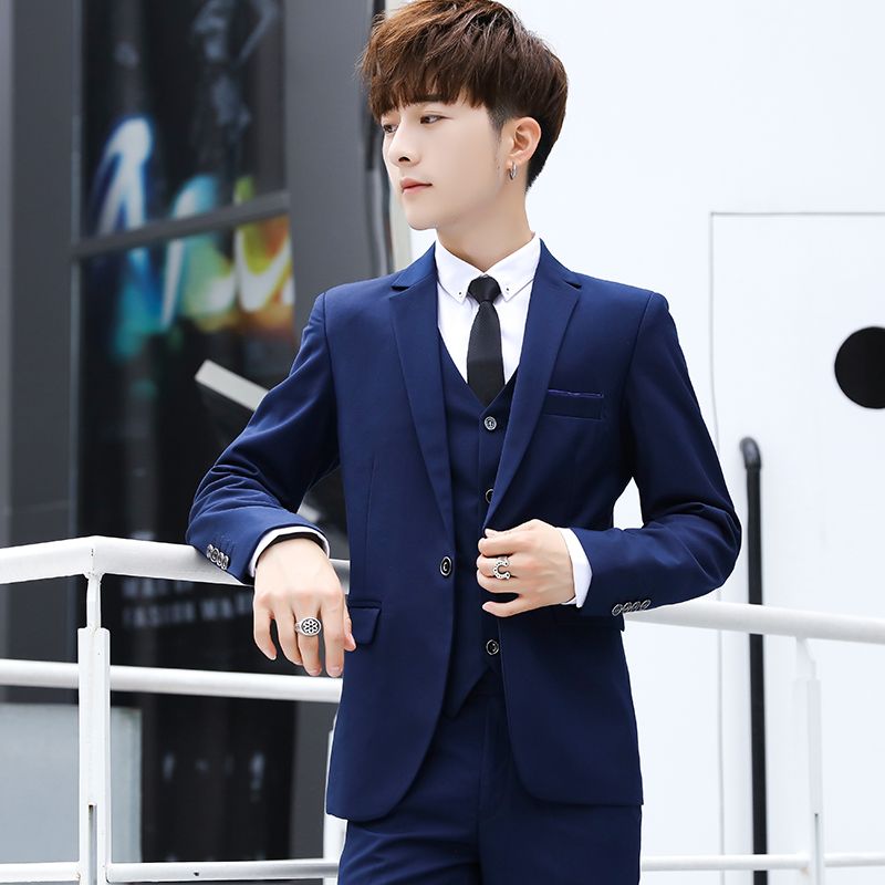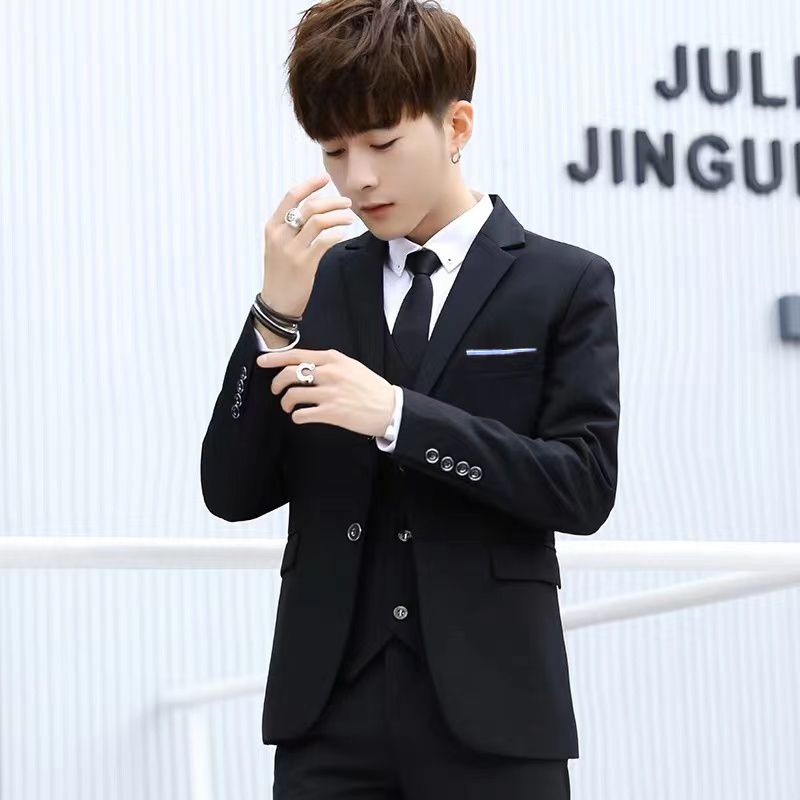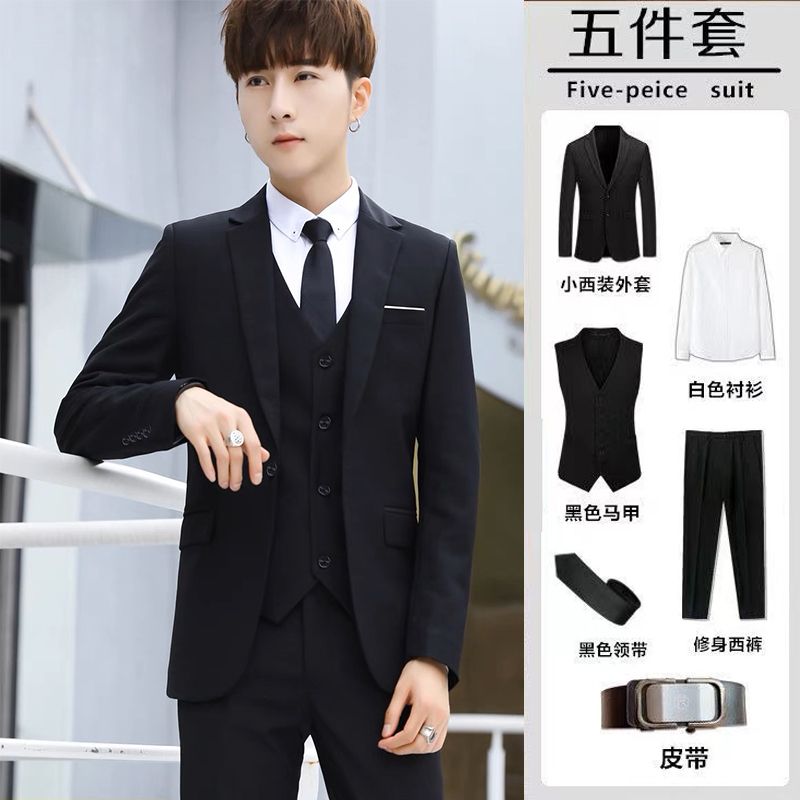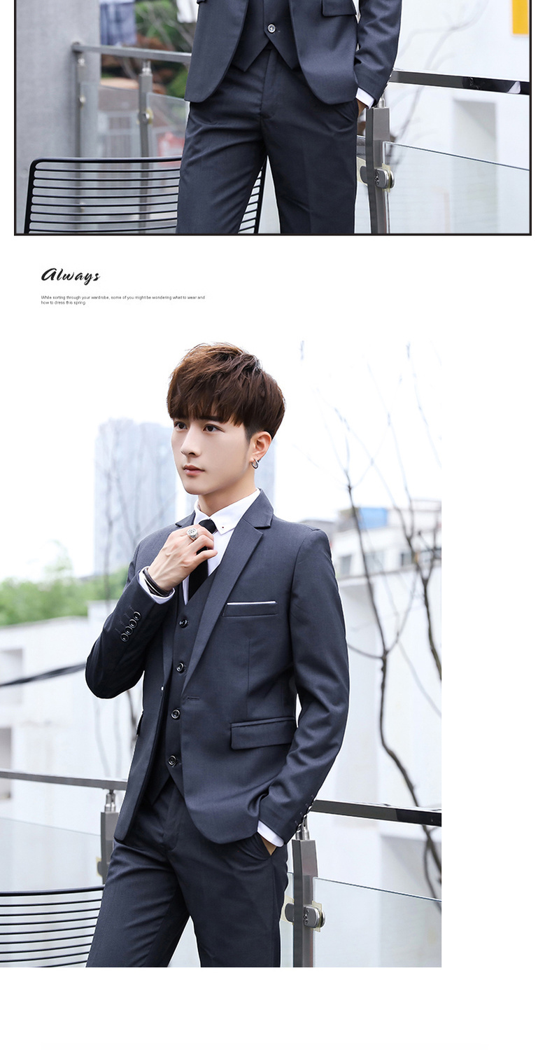西服套装三件套男士韩版修身职业正装学生休闲小西装伴郎结婚礼服