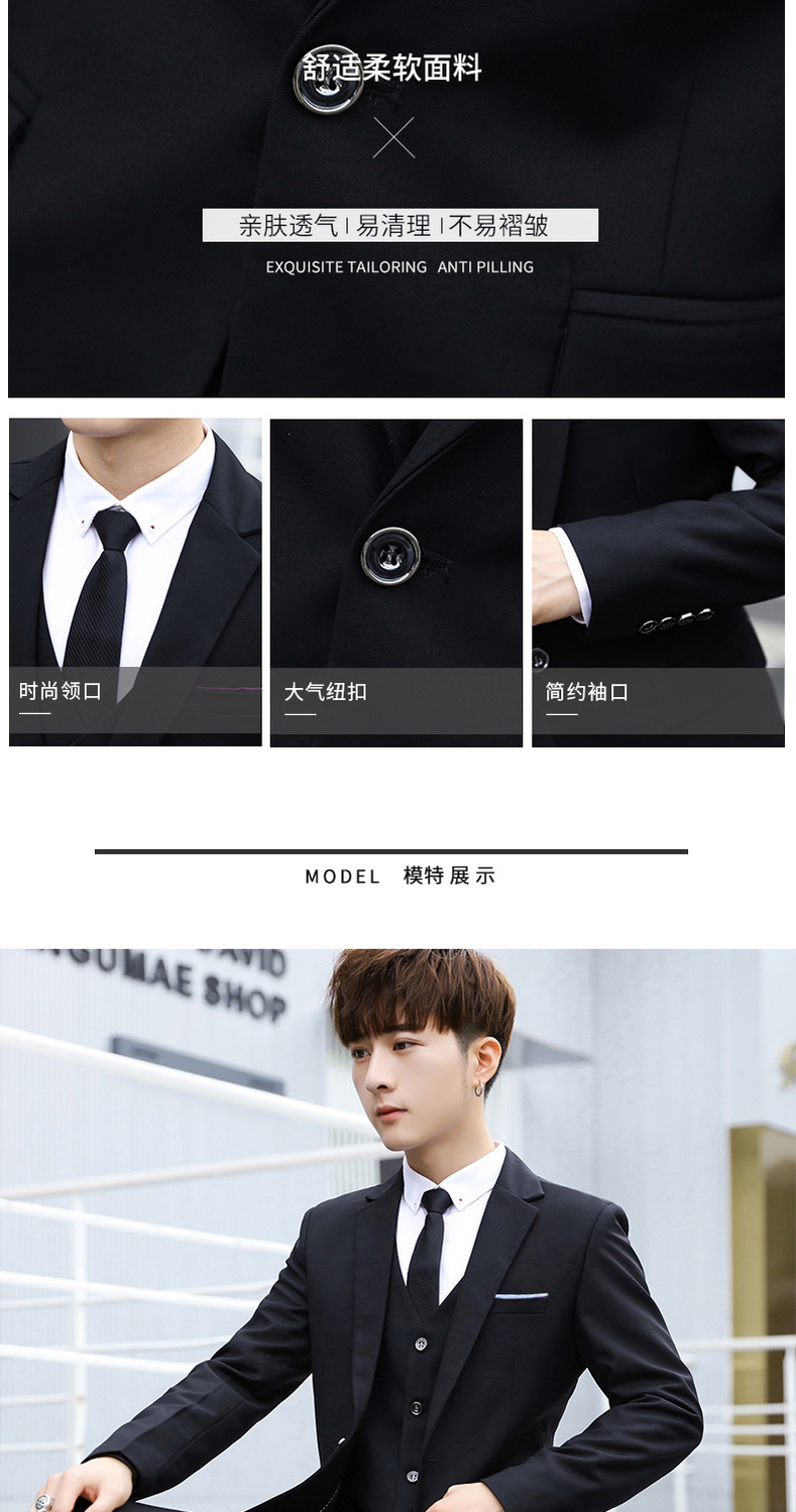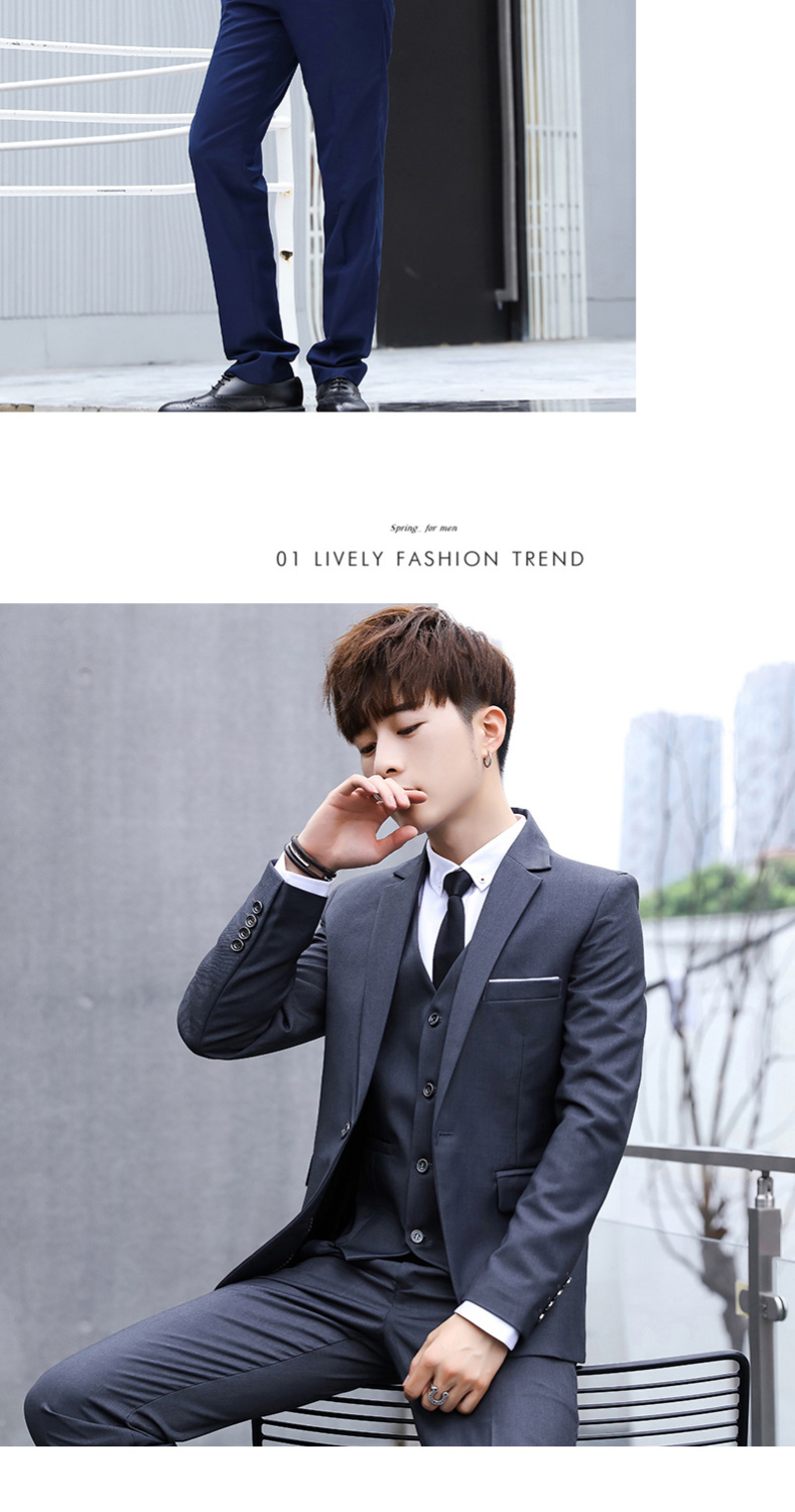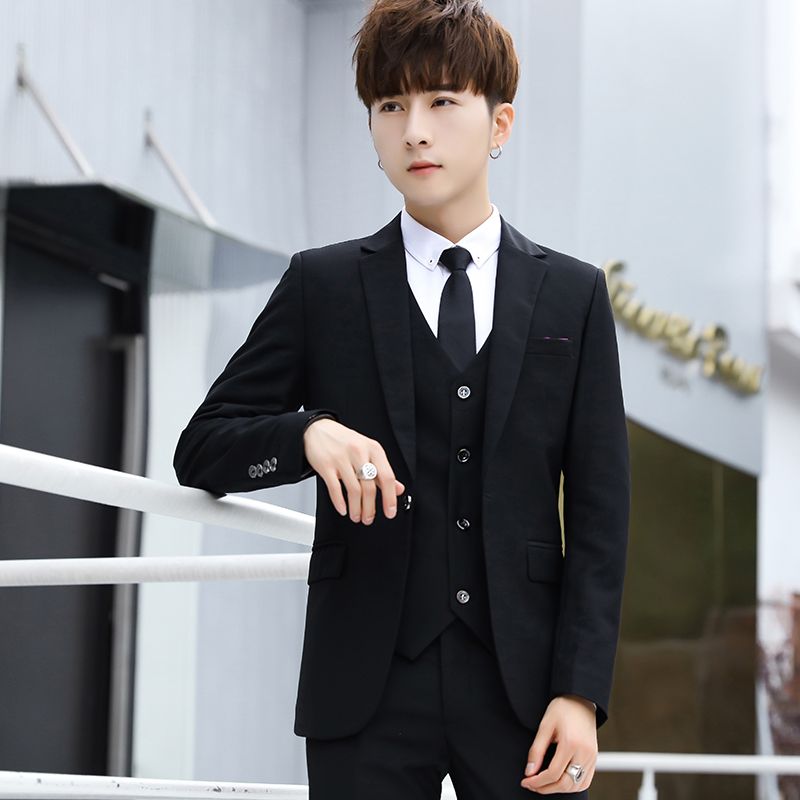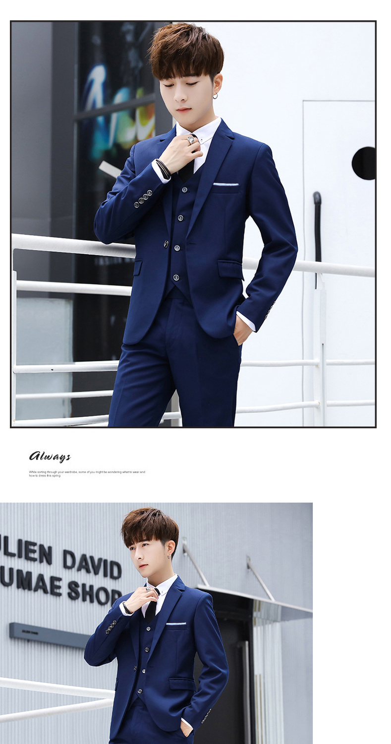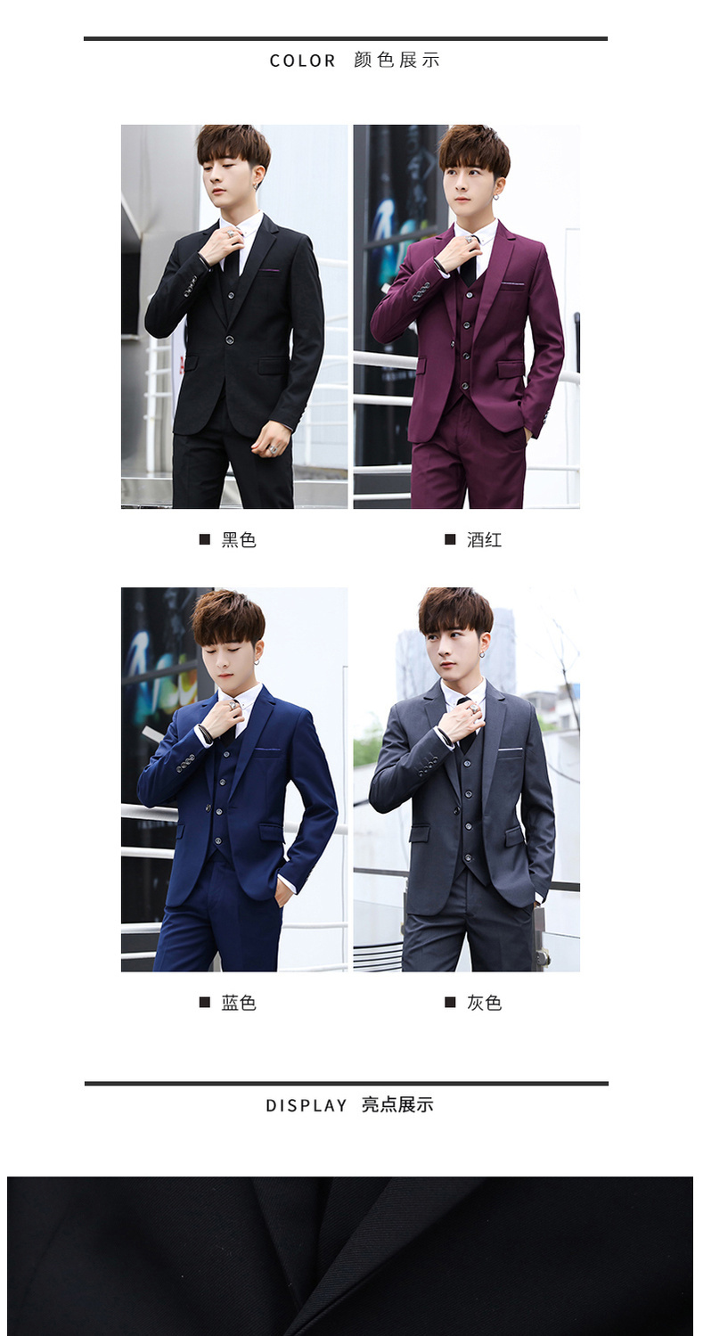 西服套装三件套男士韩版修身职业正装学生休闲小西装伴郎结婚礼服
