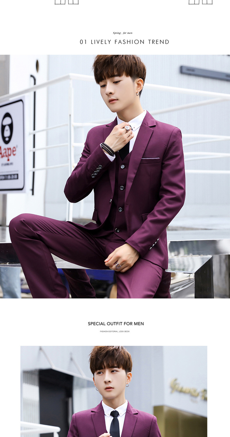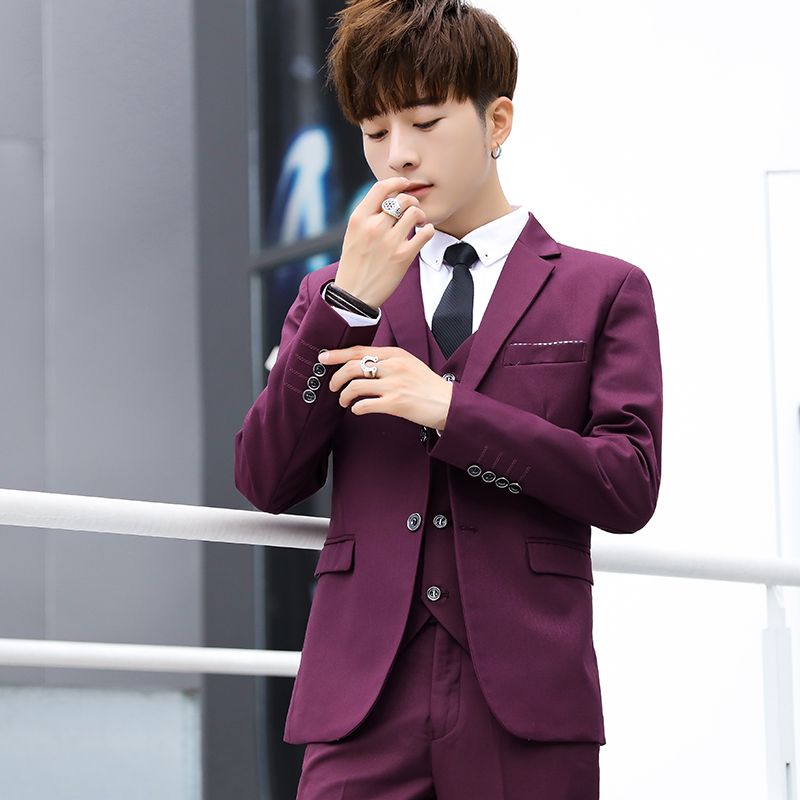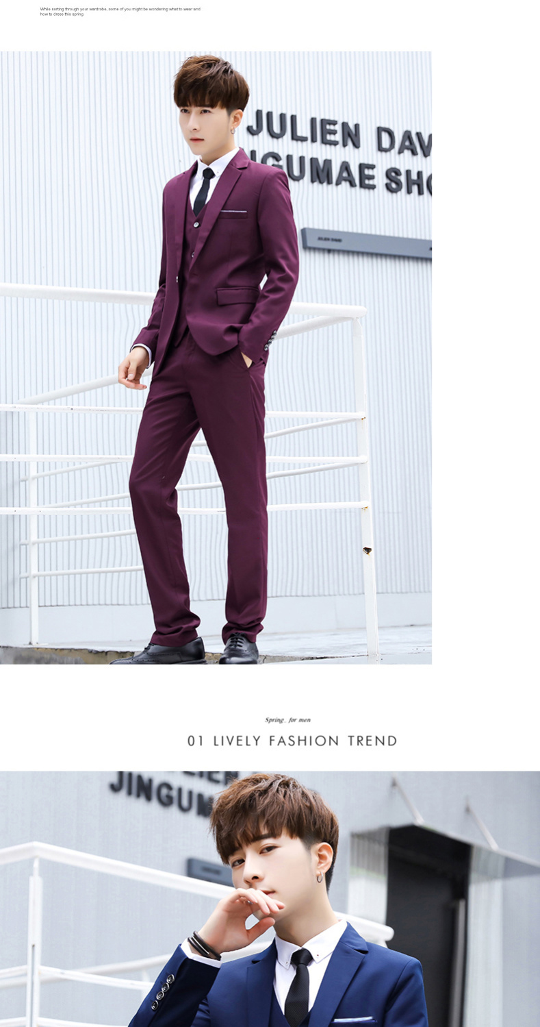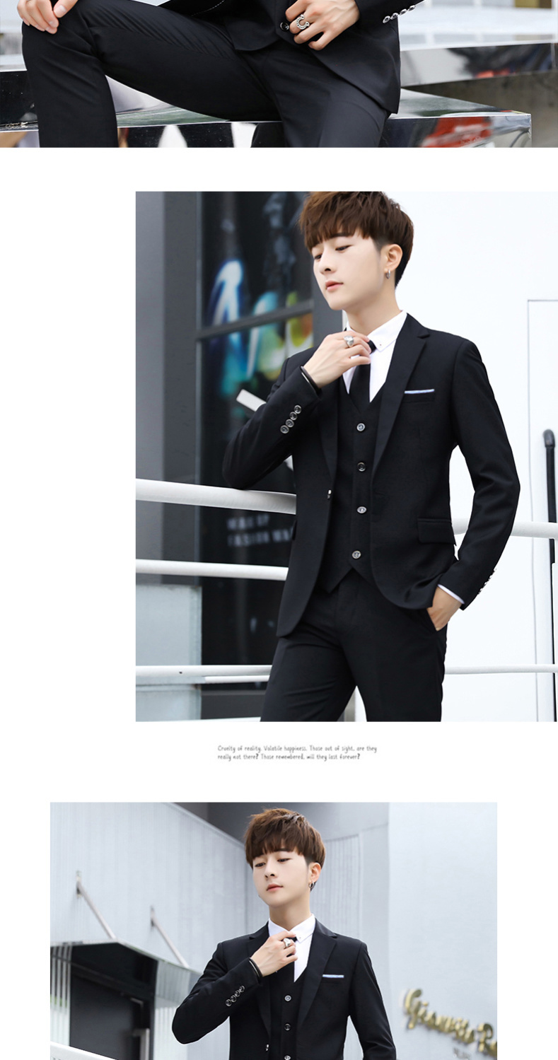 西服套装三件套男士韩版修身职业正装学生休闲小西装伴郎结婚礼服