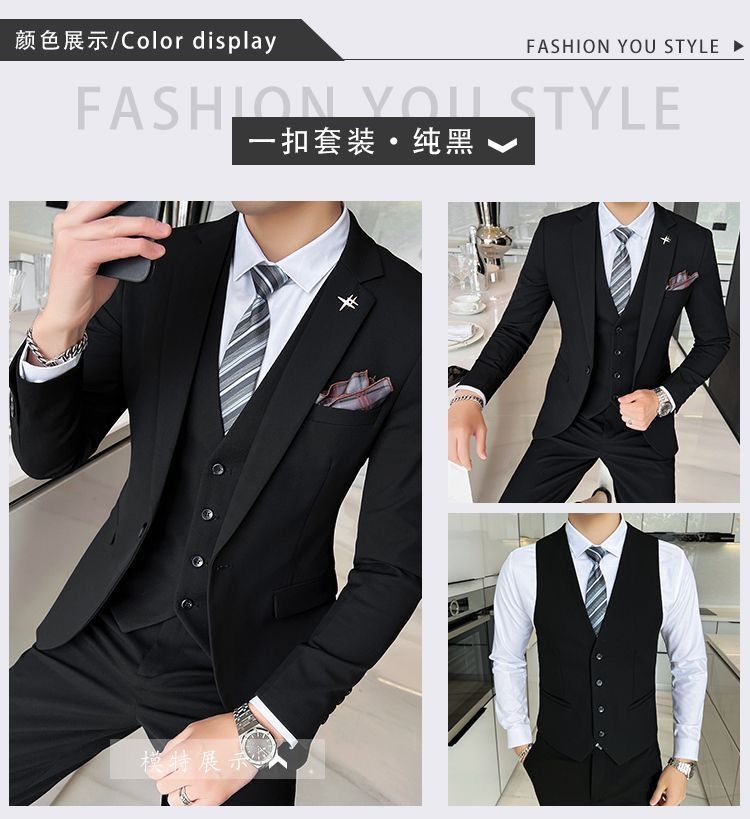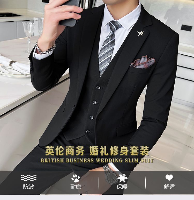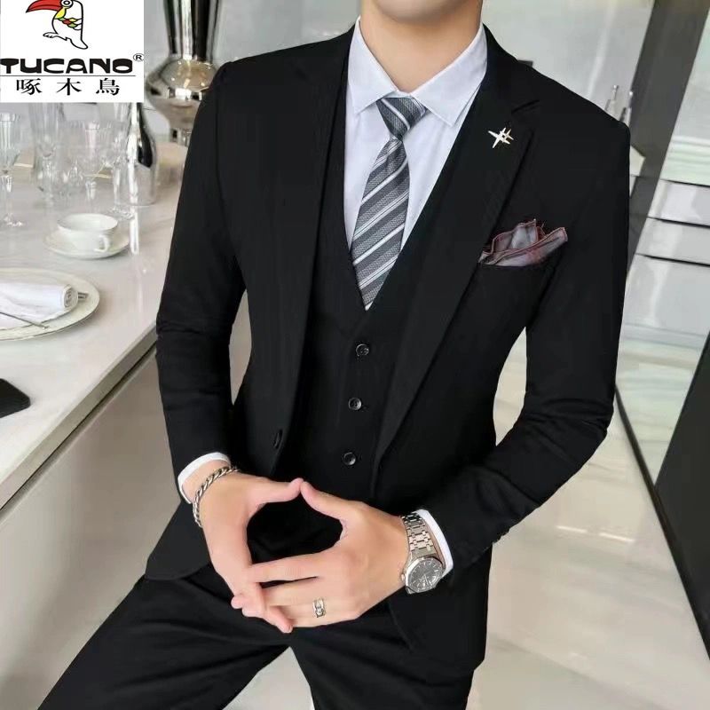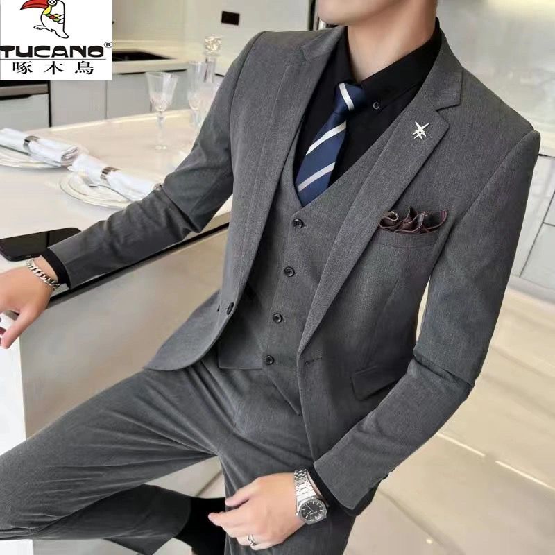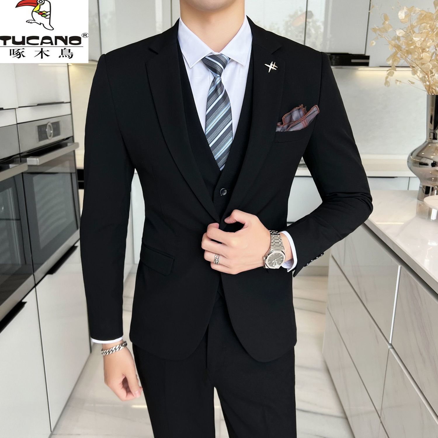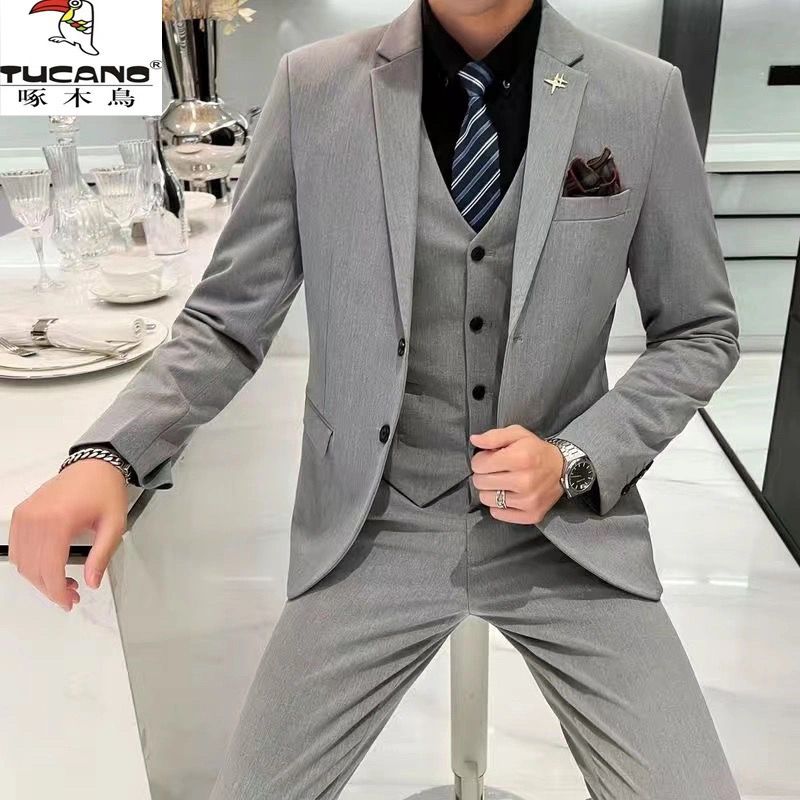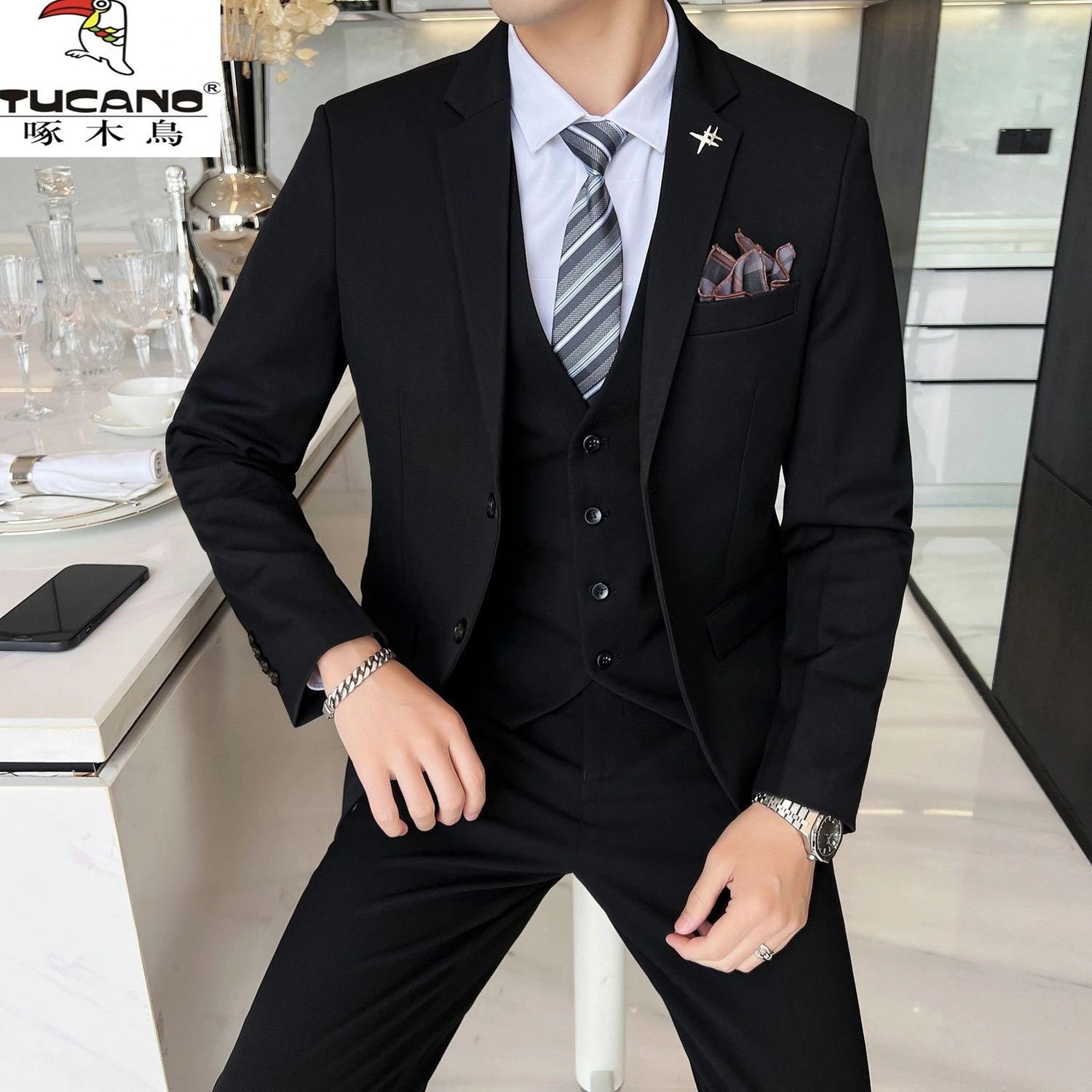 啄木鸟西服套装男2粒扣三件套韩版修身商务正装小西装新郎结婚礼