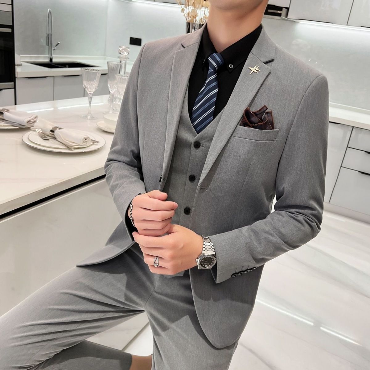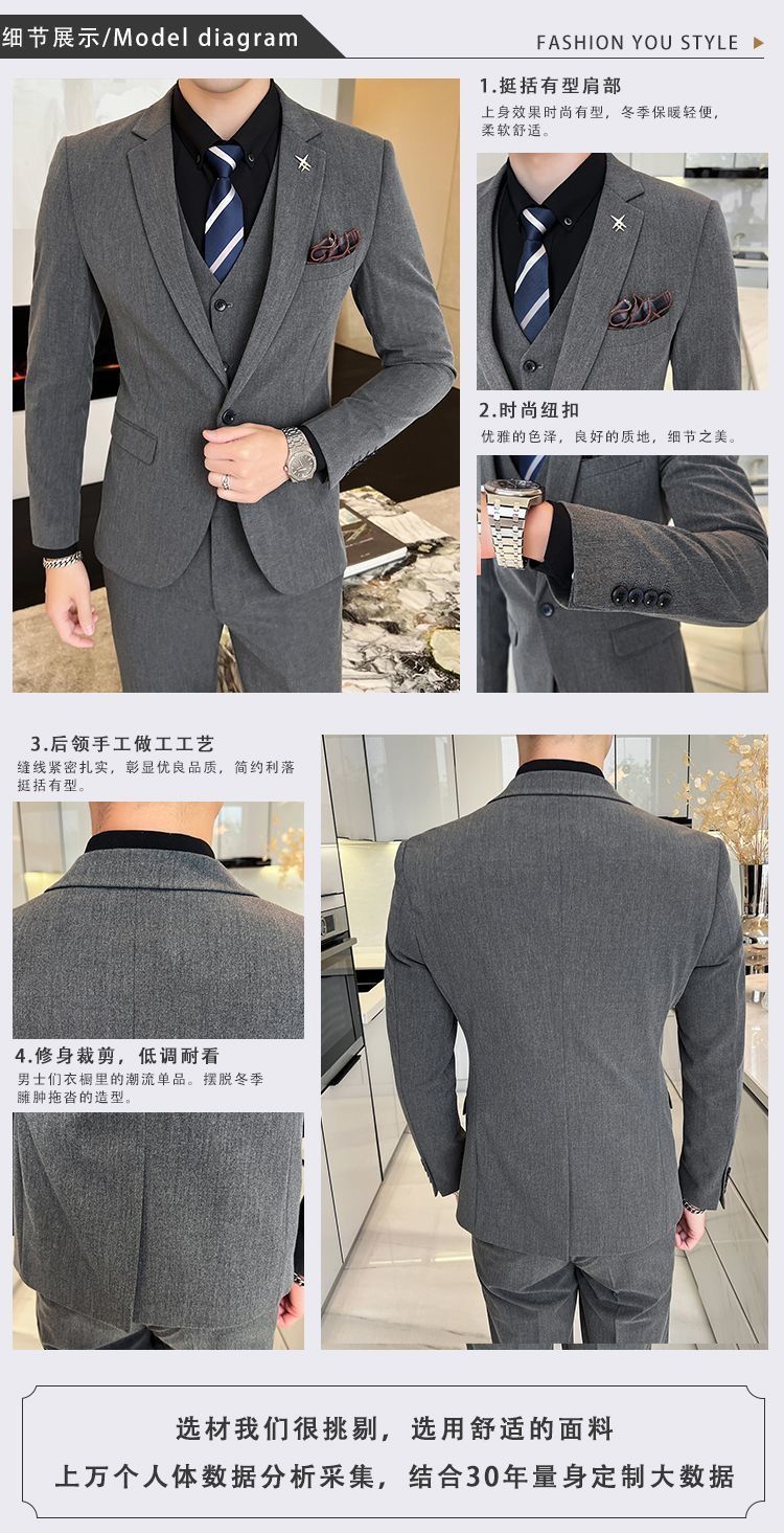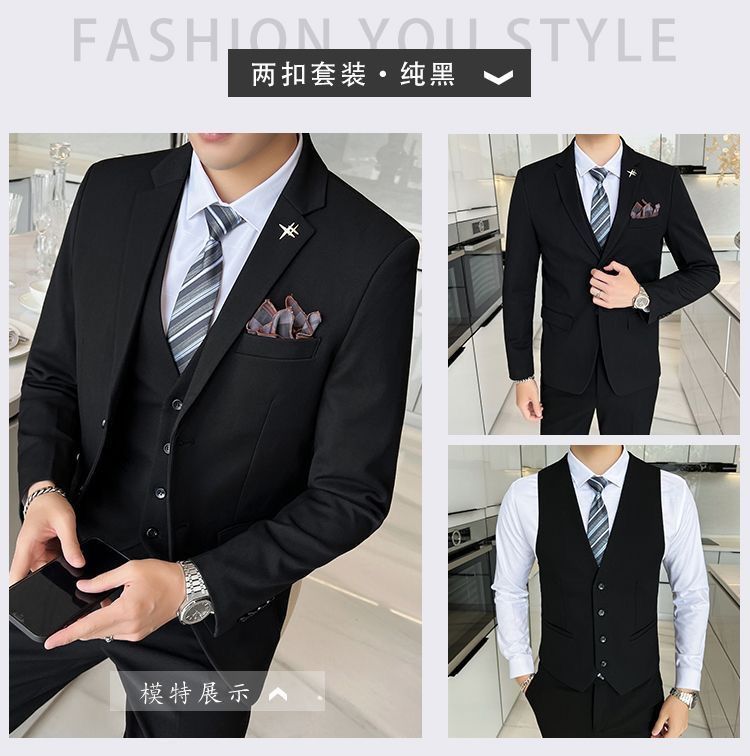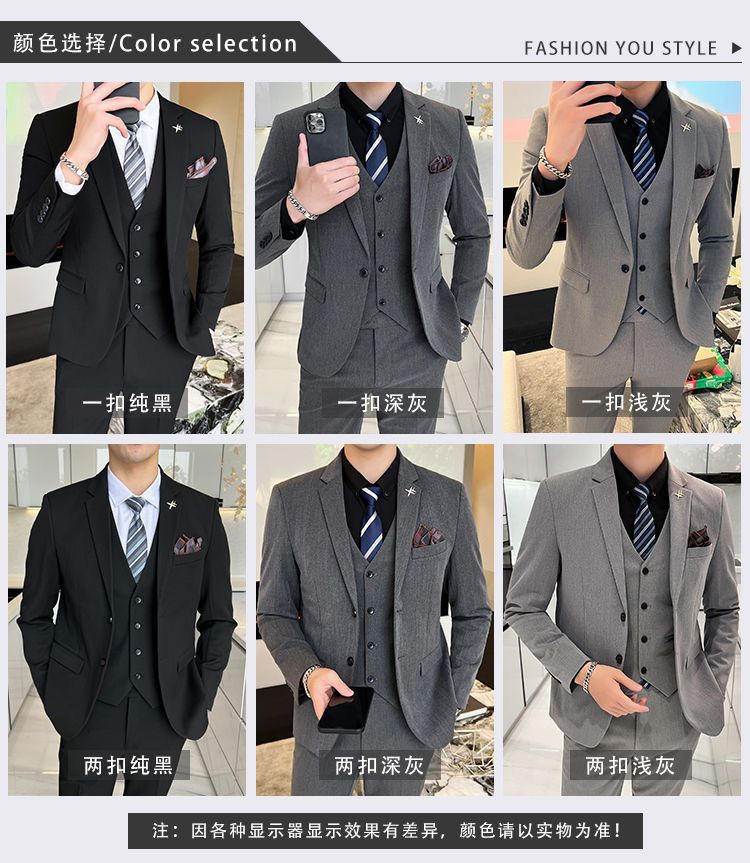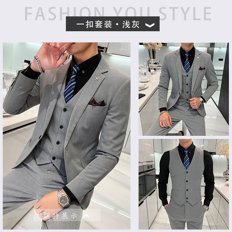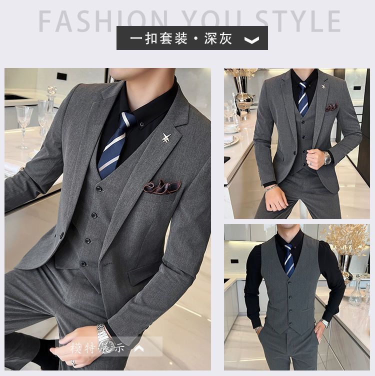 啄木鸟西服套装男2粒扣三件套韩版修身商务正装小西装新郎结婚礼