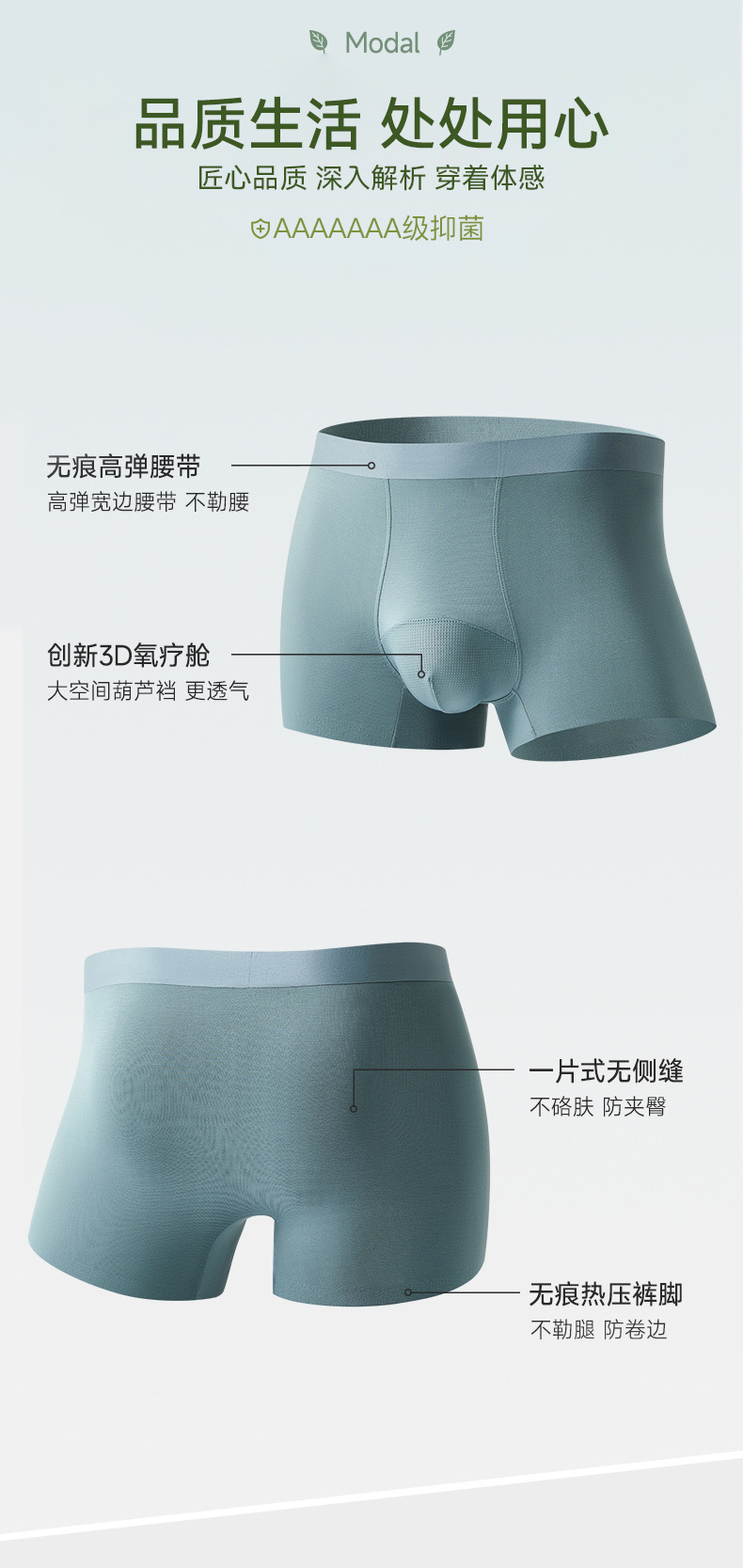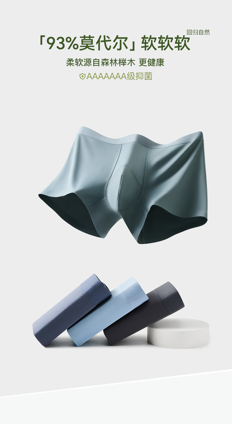 莫代尔男士内裤7A桑蚕丝裆平角内裤大码200斤青少年四角内裤