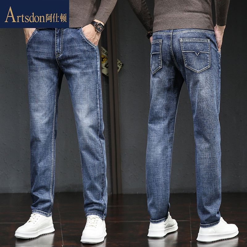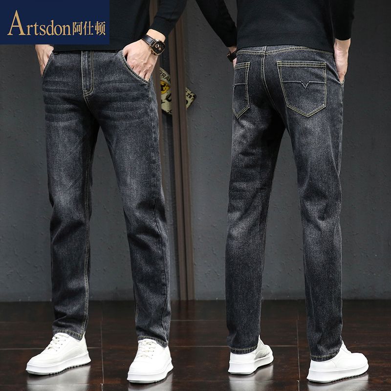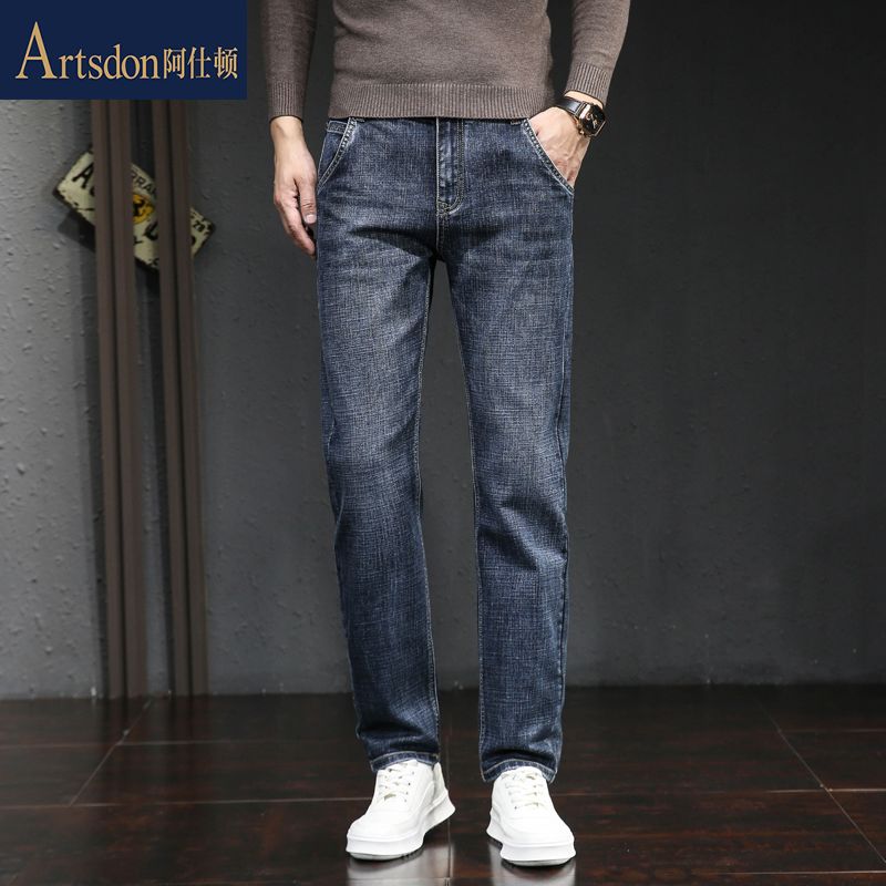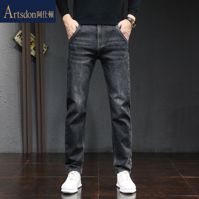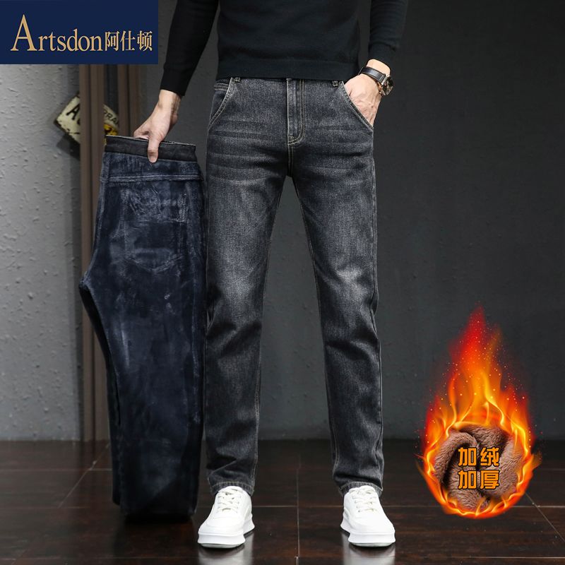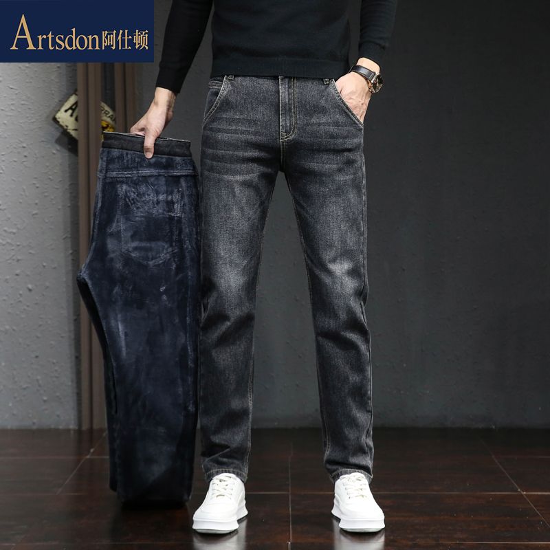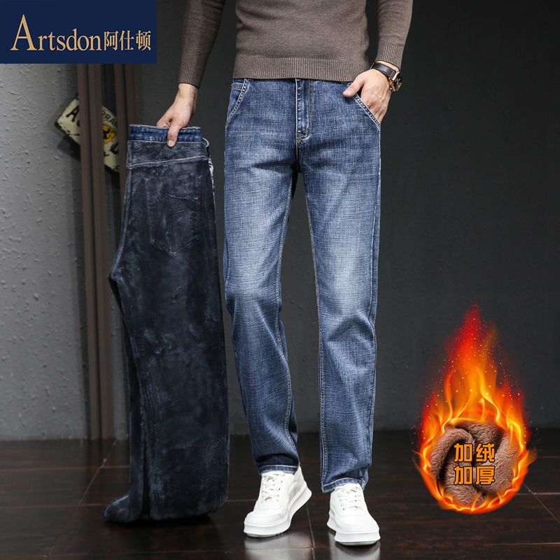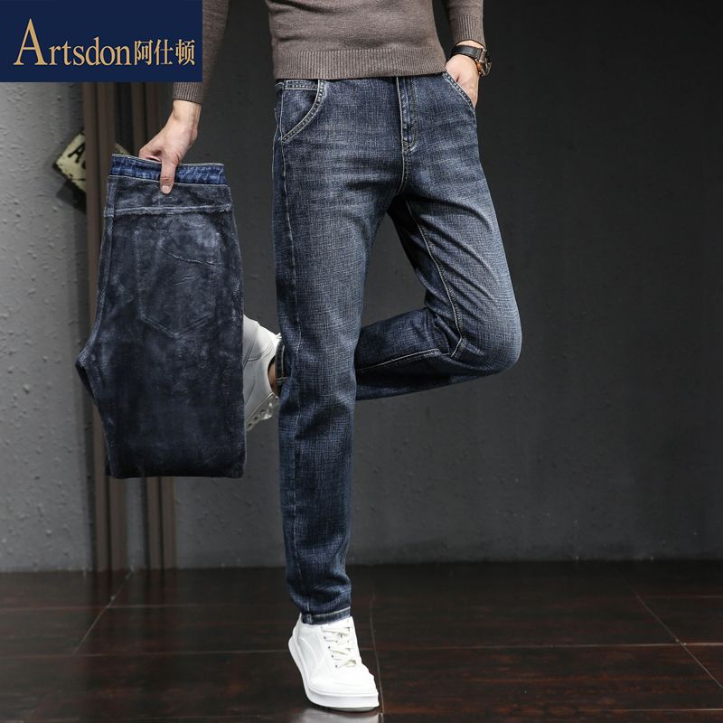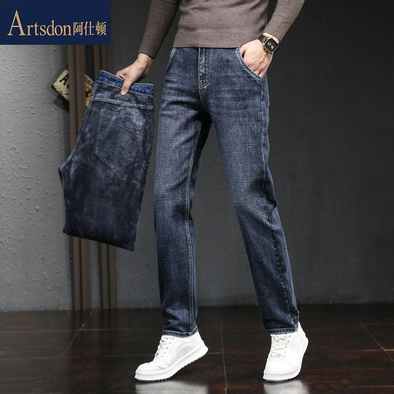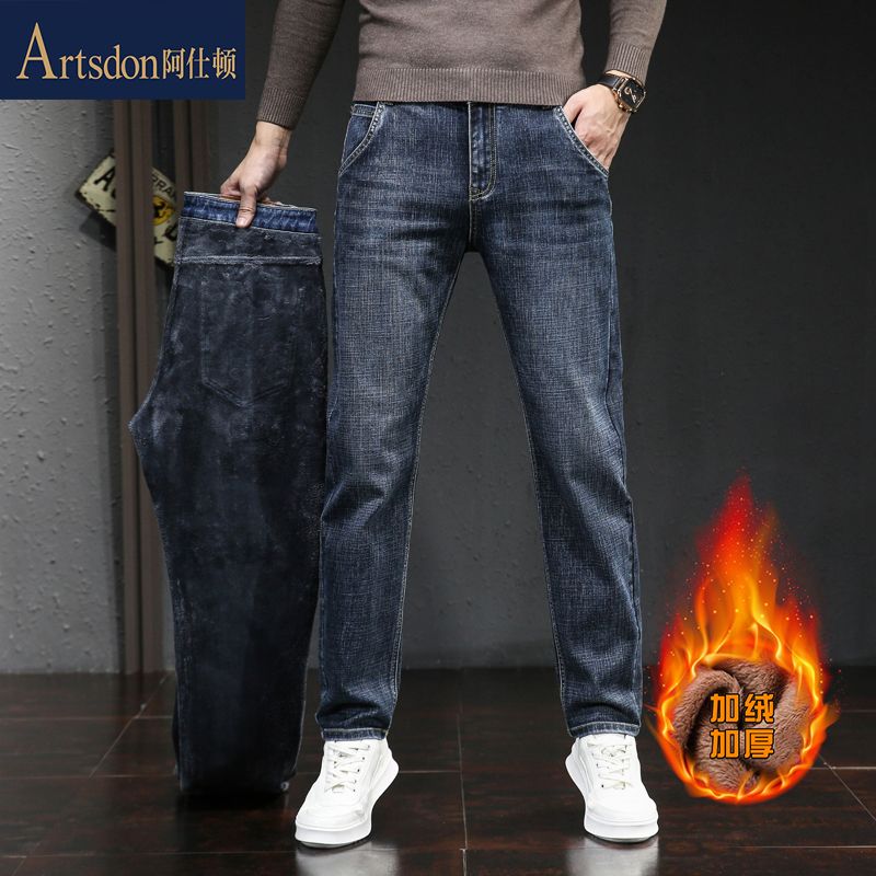 阿仕顿秋冬牛仔裤男士韩版修身直筒宽松加绒加厚裤子弹力休闲长裤
