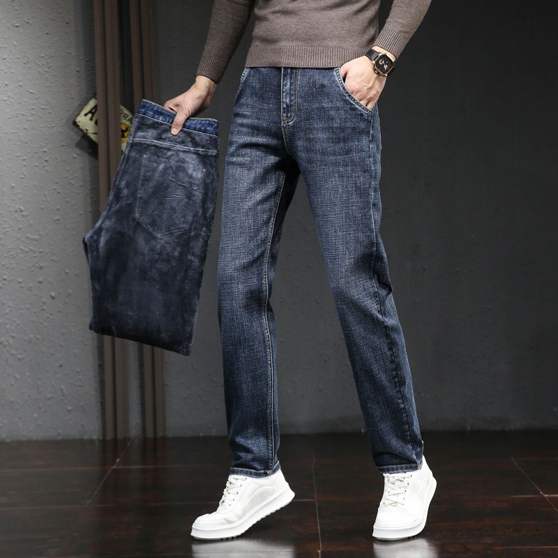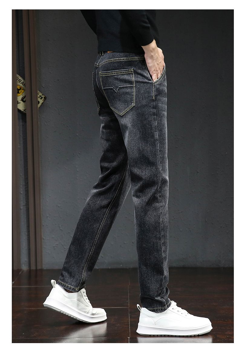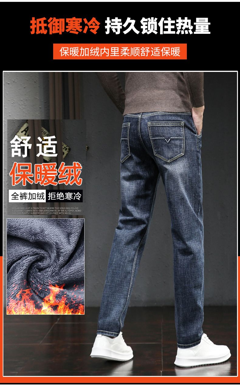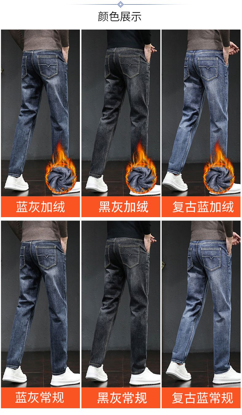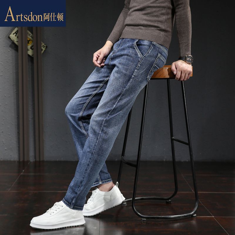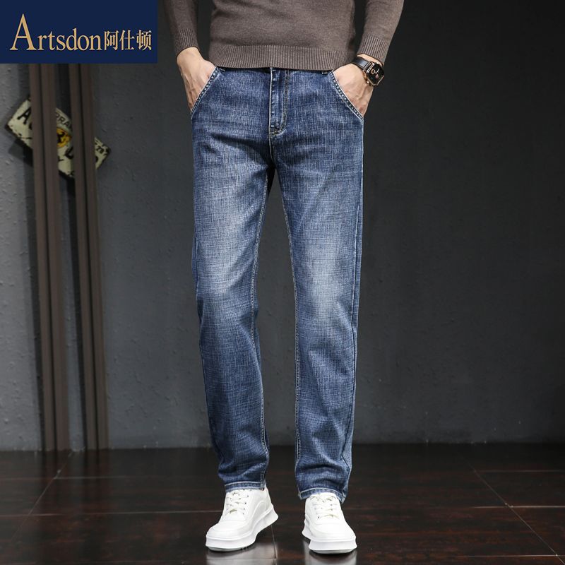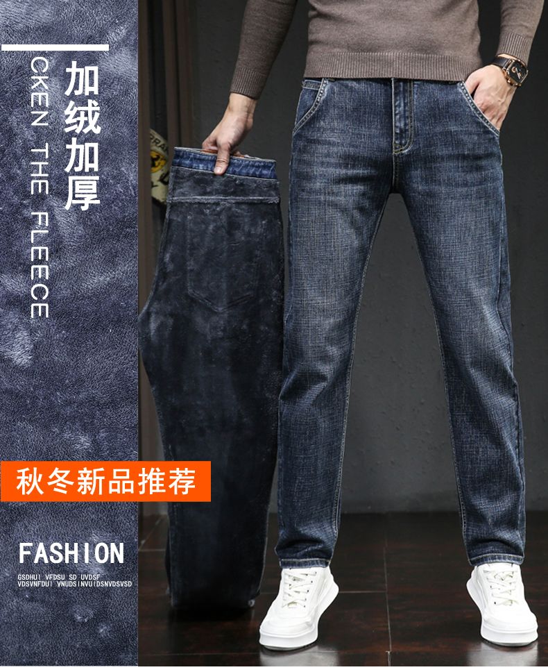 阿仕顿秋冬牛仔裤男士韩版修身直筒宽松加绒加厚裤子弹力休闲长裤