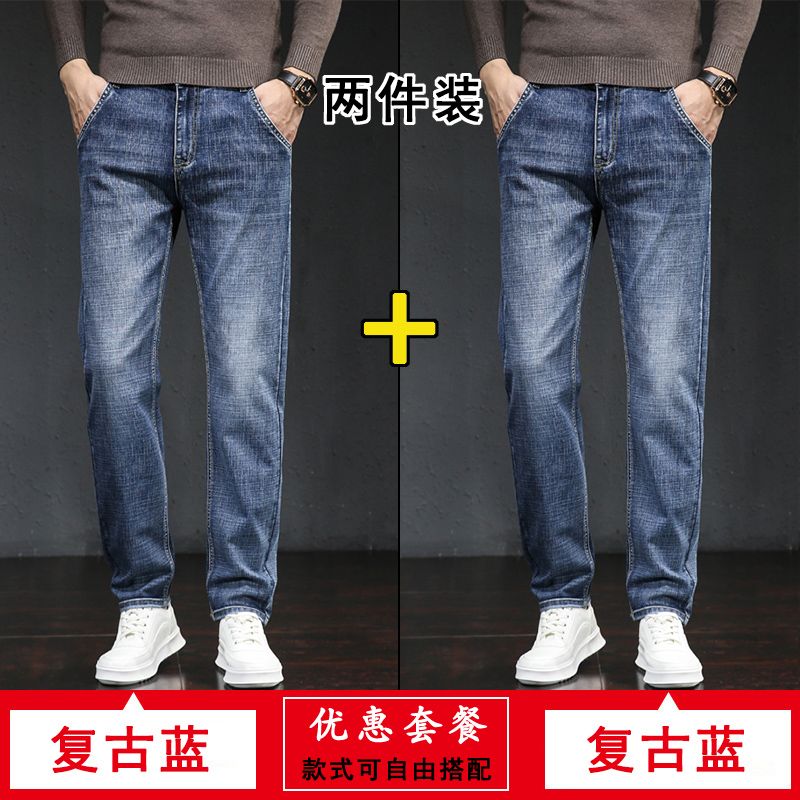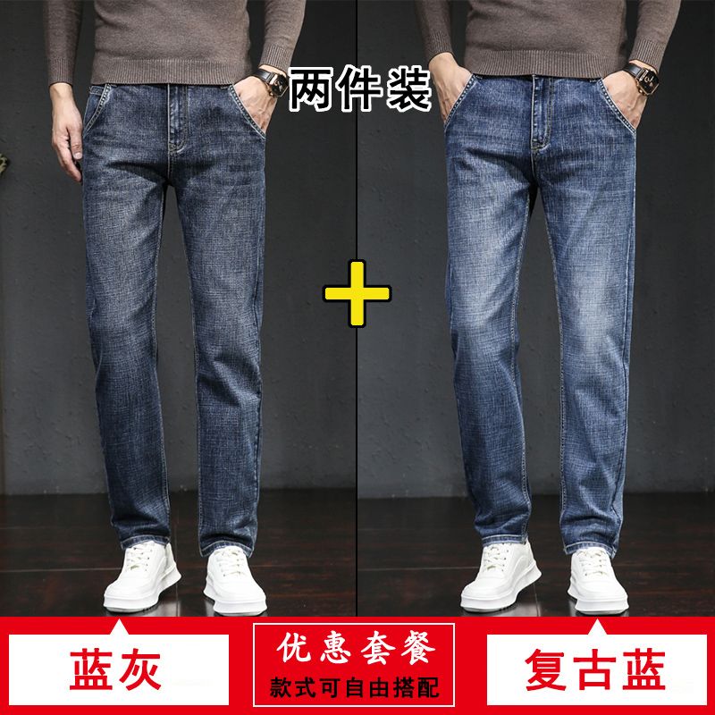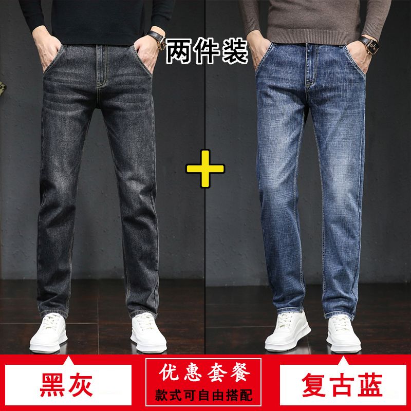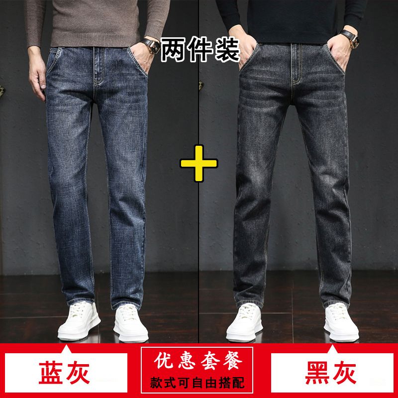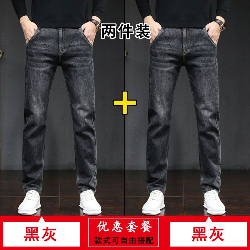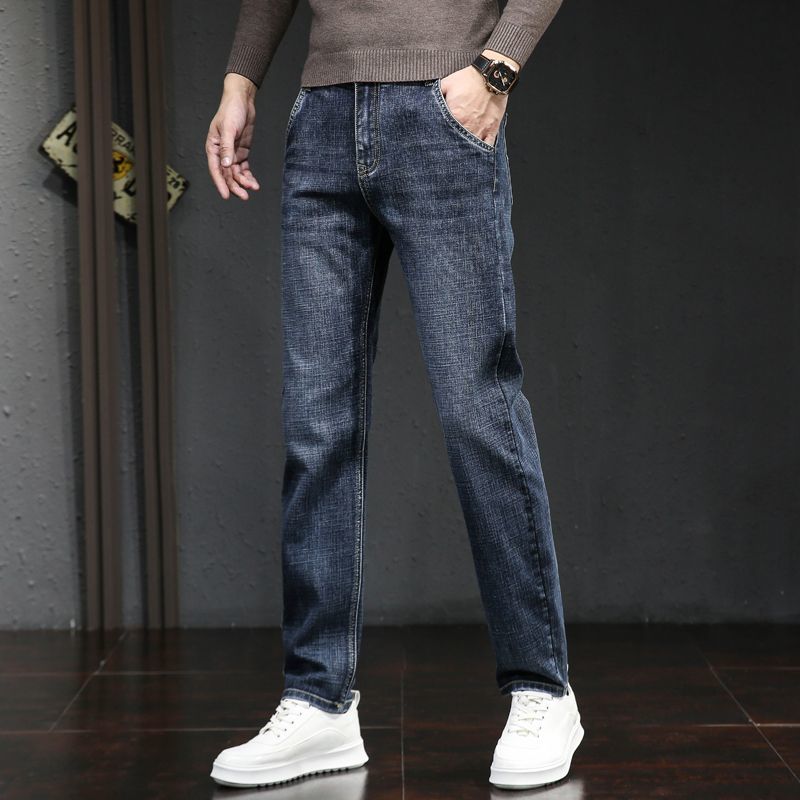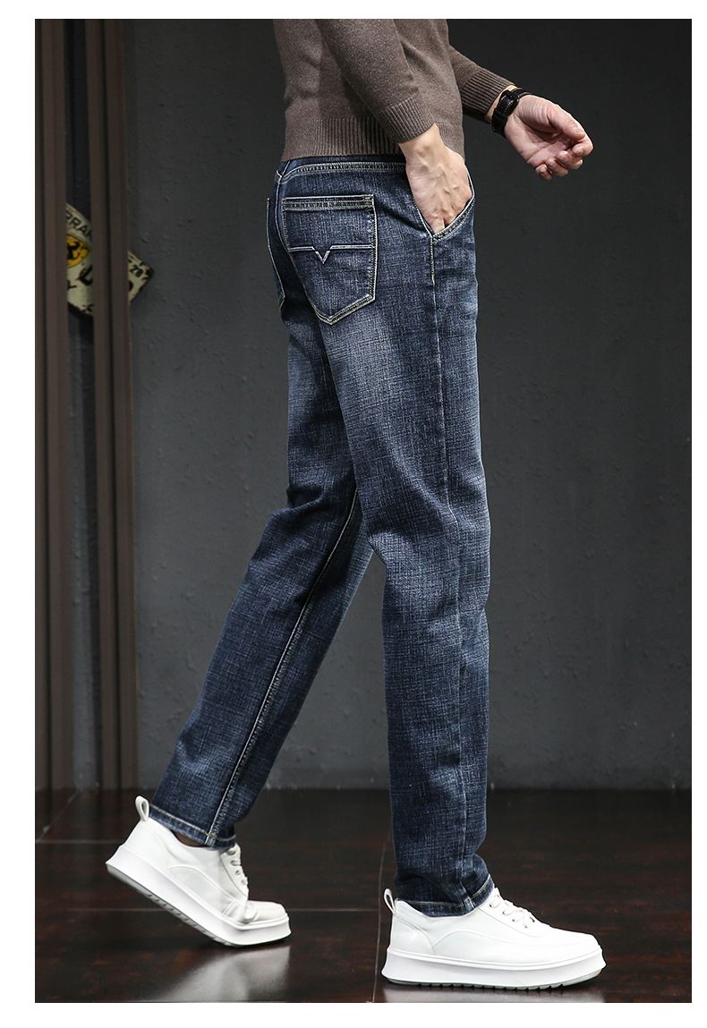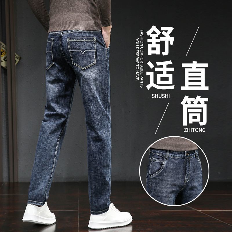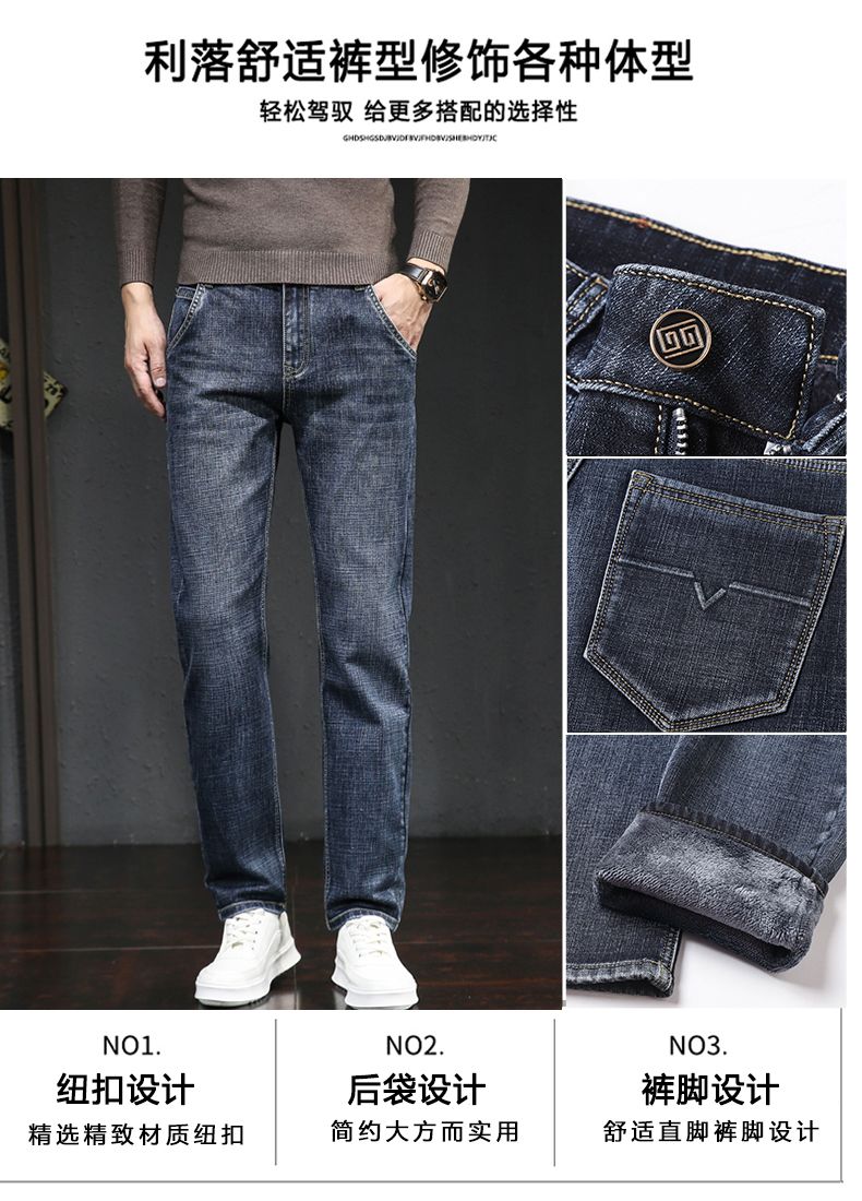阿仕顿秋冬牛仔裤男士韩版修身直筒宽松加绒加厚裤子弹力休闲长裤