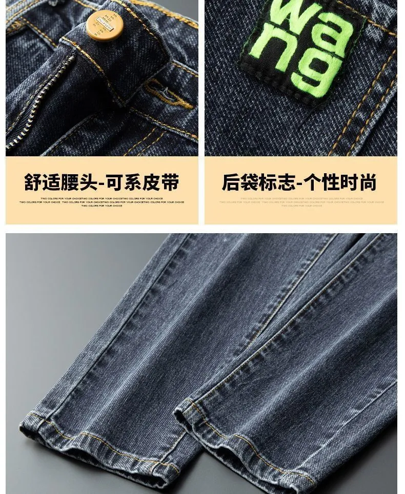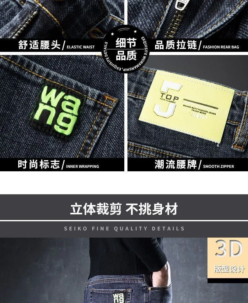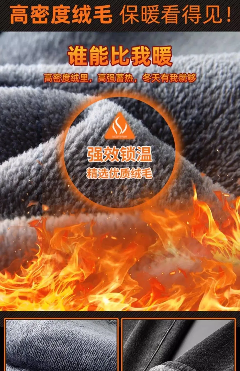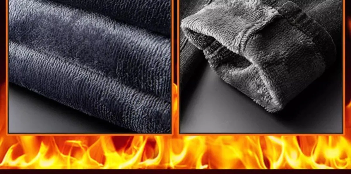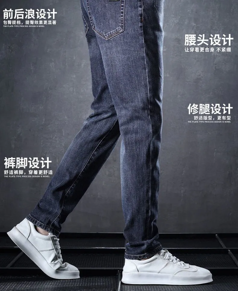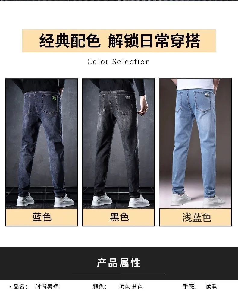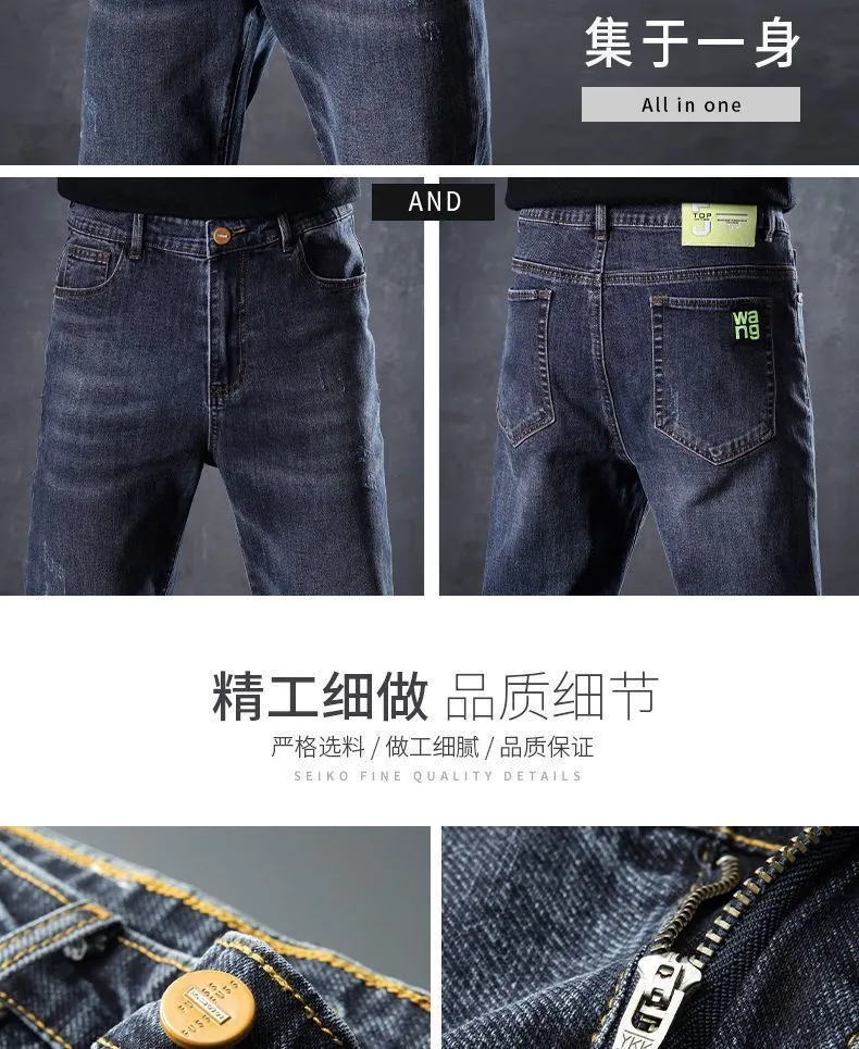 班黛纹加绒加厚男士新款牛仔裤宽松裤子修身长裤弹力休闲直筒复古
