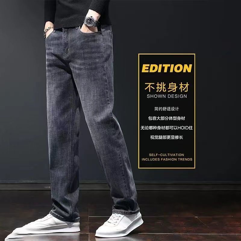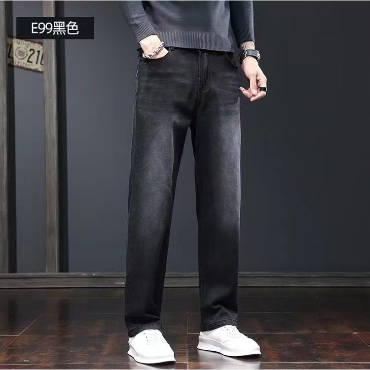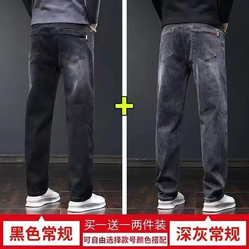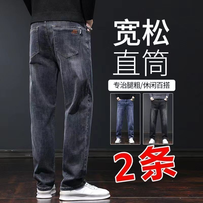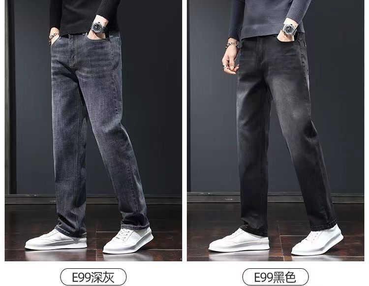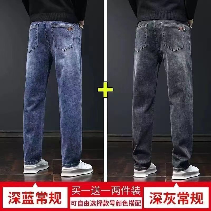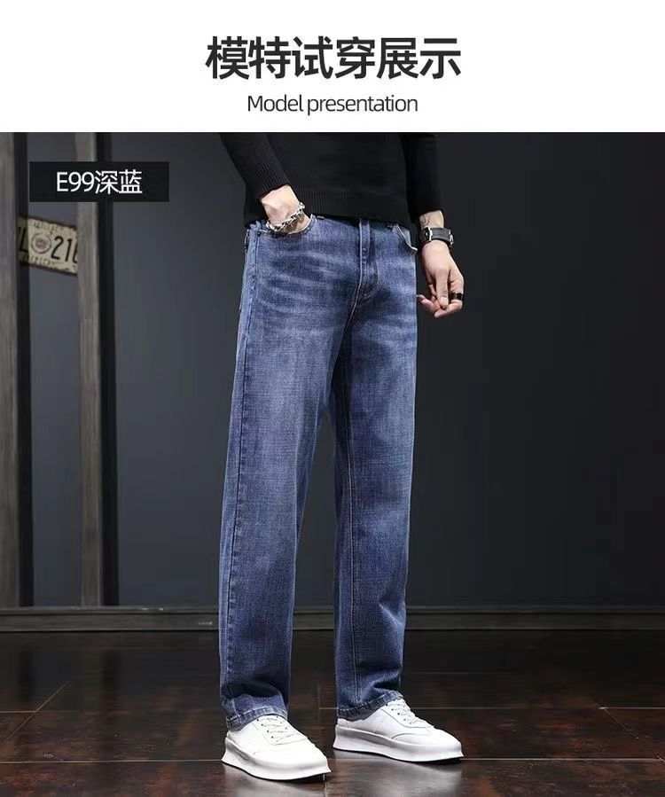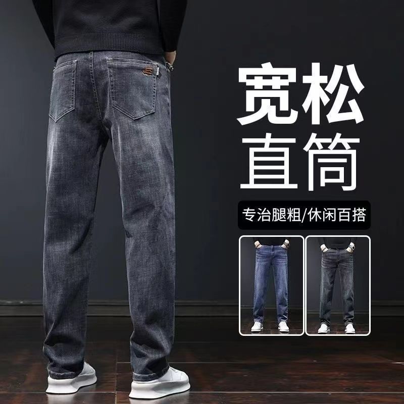 秋冬季新款2024男士长裤耐磨牛仔裤宽松直筒弹力休闲商务厚款裤子