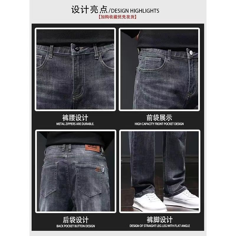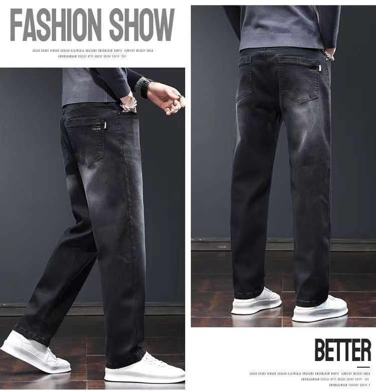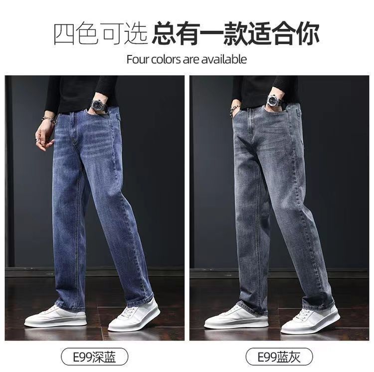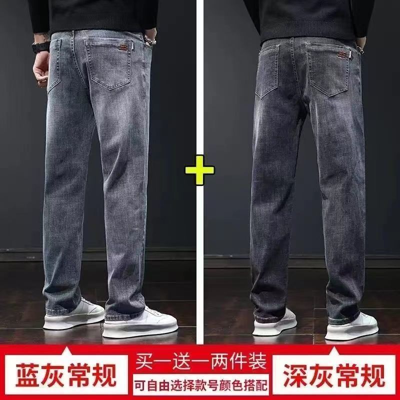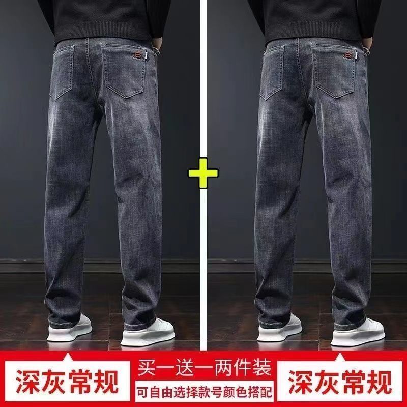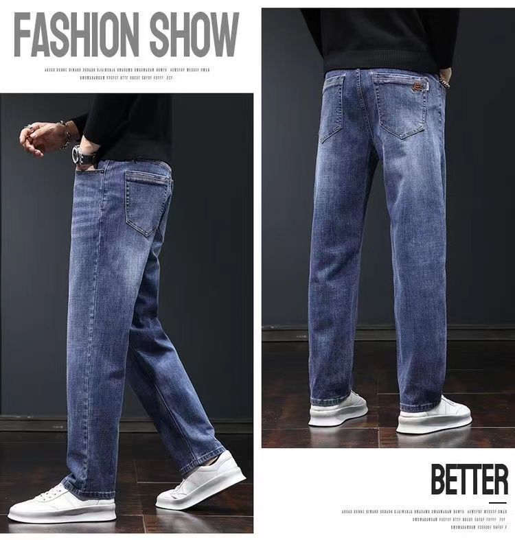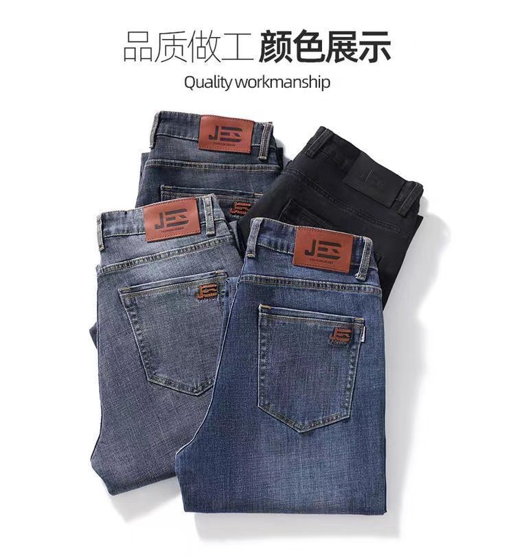 秋冬季新款2024男士长裤耐磨牛仔裤宽松直筒弹力休闲商务厚款裤子