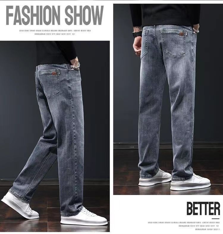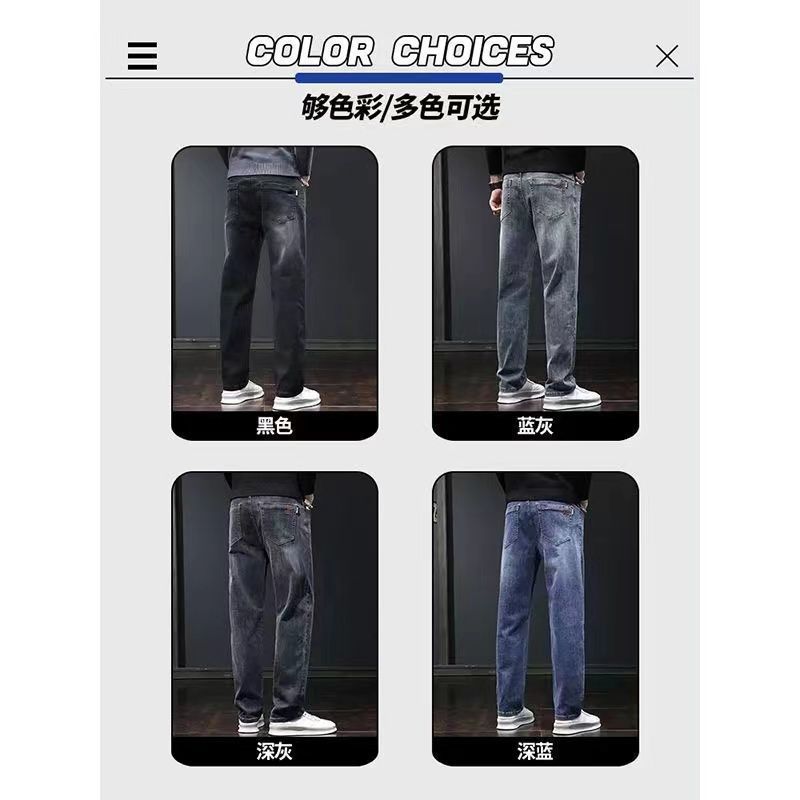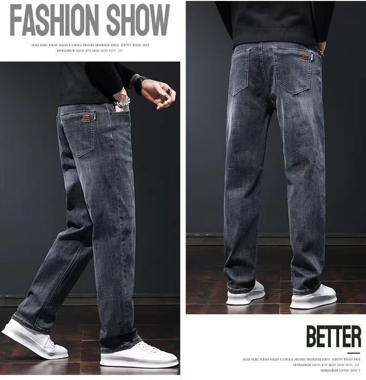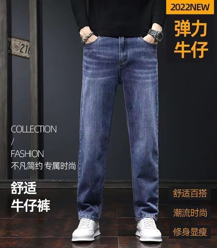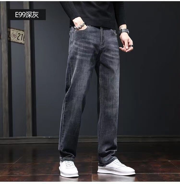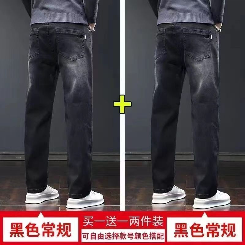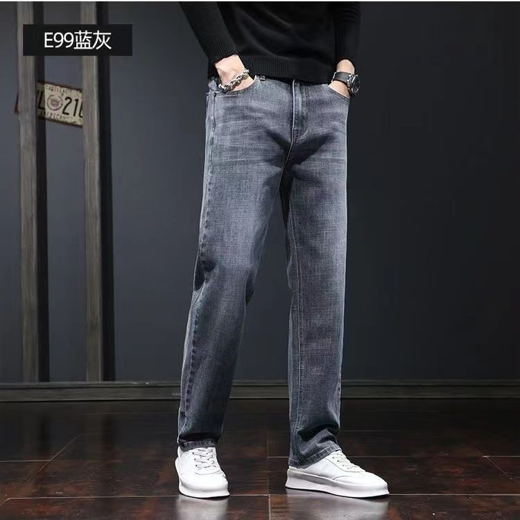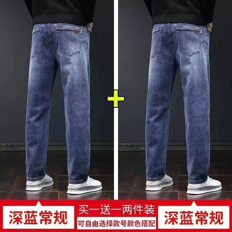 秋冬季新款2024男士长裤耐磨牛仔裤宽松直筒弹力休闲商务厚款裤子
