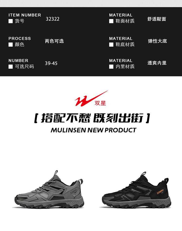 双星男鞋登山鞋户外徒步透气舒适鞋运动鞋防臭耐磨轻便硬底爬山鞋